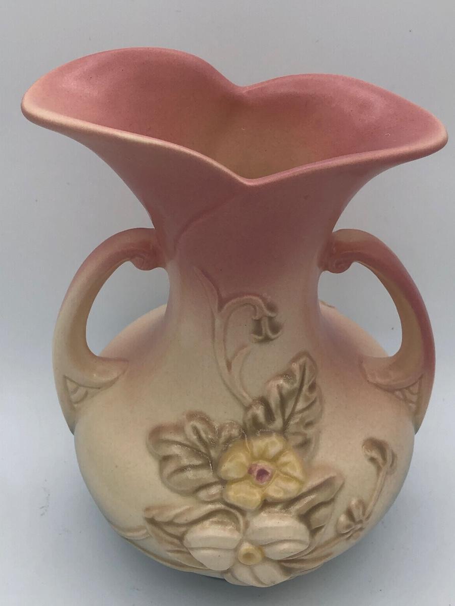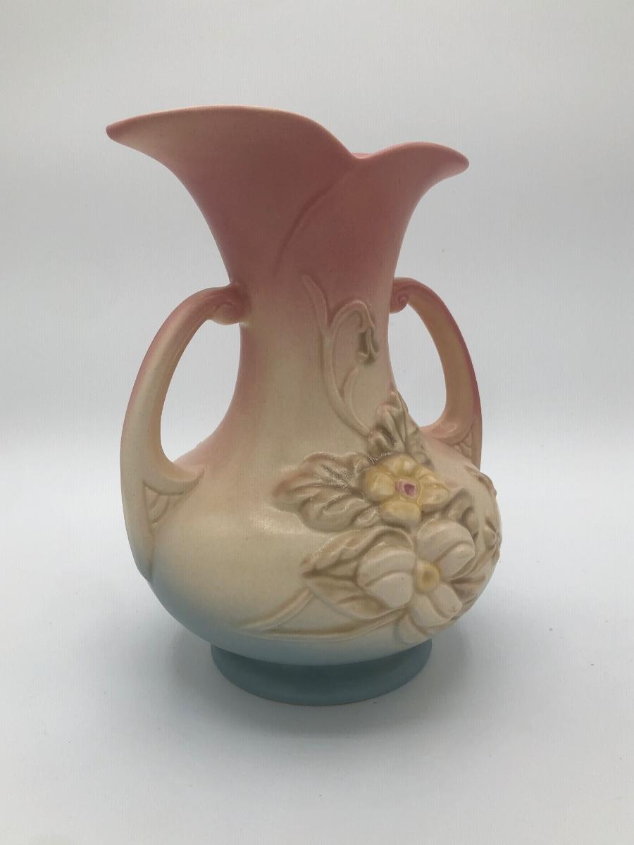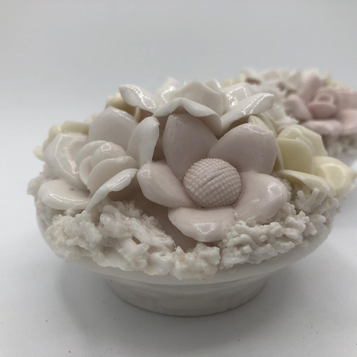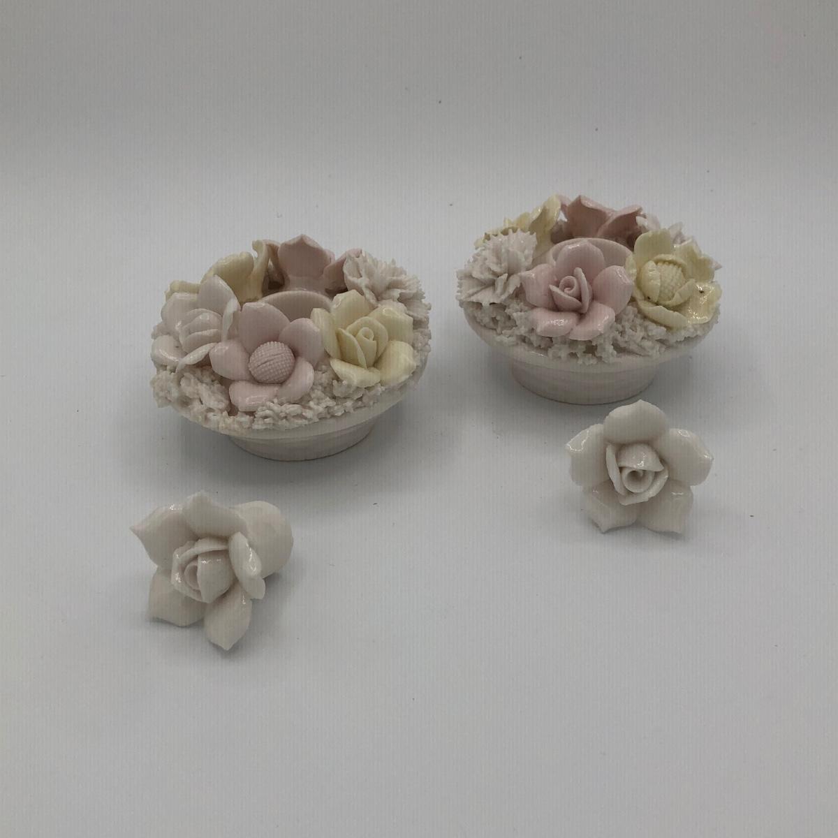 LOT 210K: Hull Art Pottery Pink Wildflower Vase W8-7 1/2, Napoleon Italy Porcelain Flower, Two's Company Porcelain Cherry Blossom Tea Cup / Saucer & Ardalt Lenwile China Flower Baskets