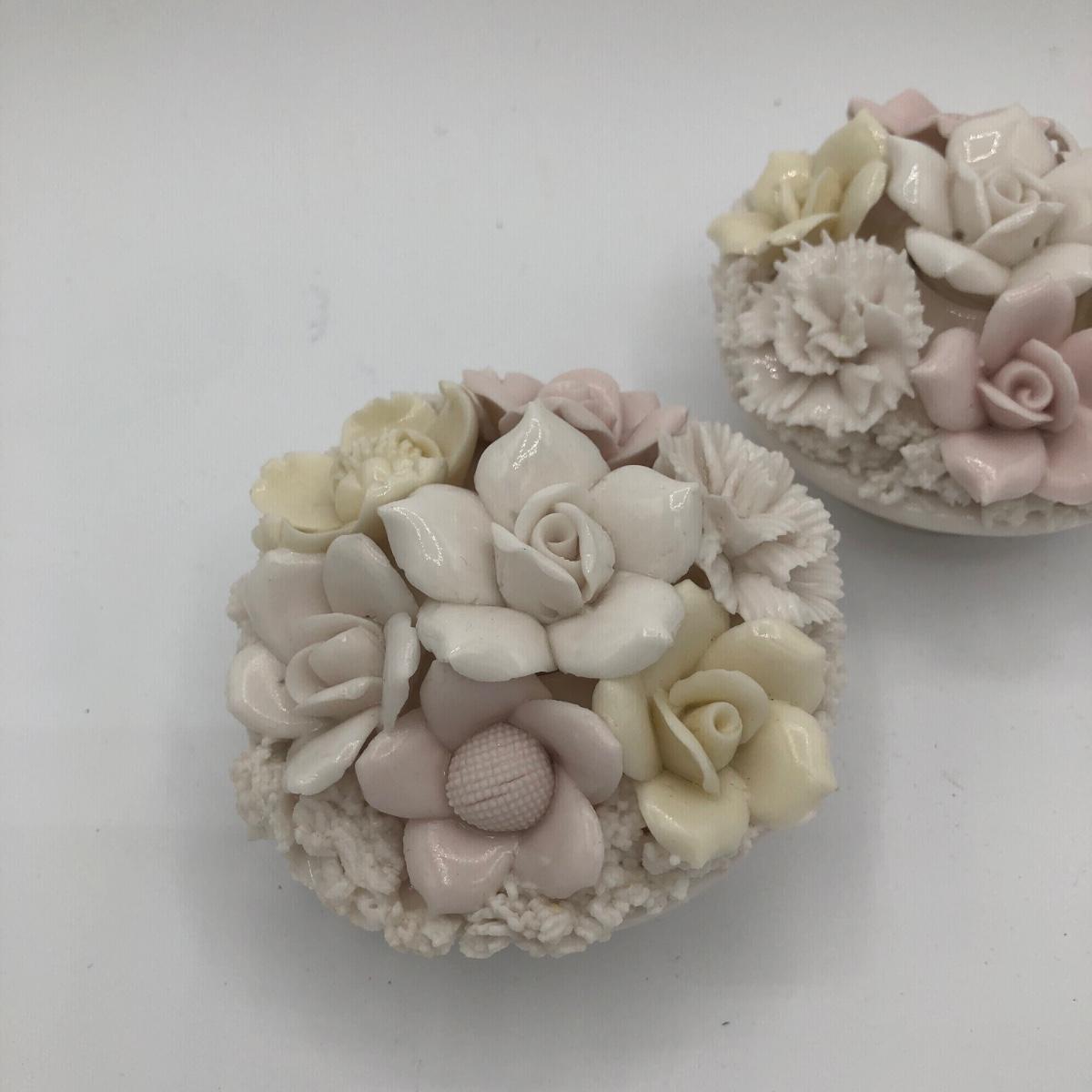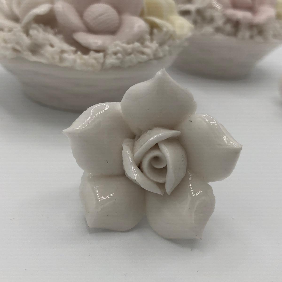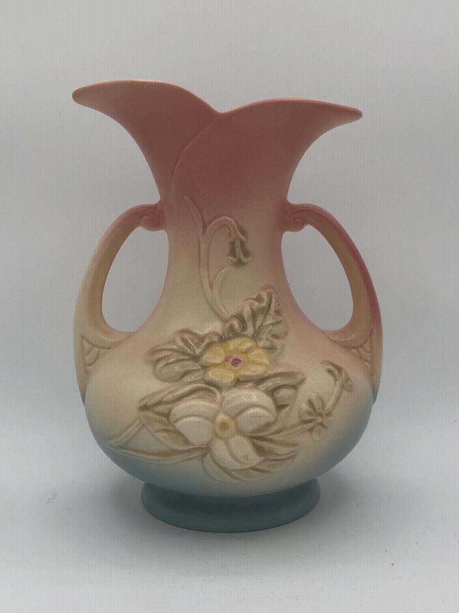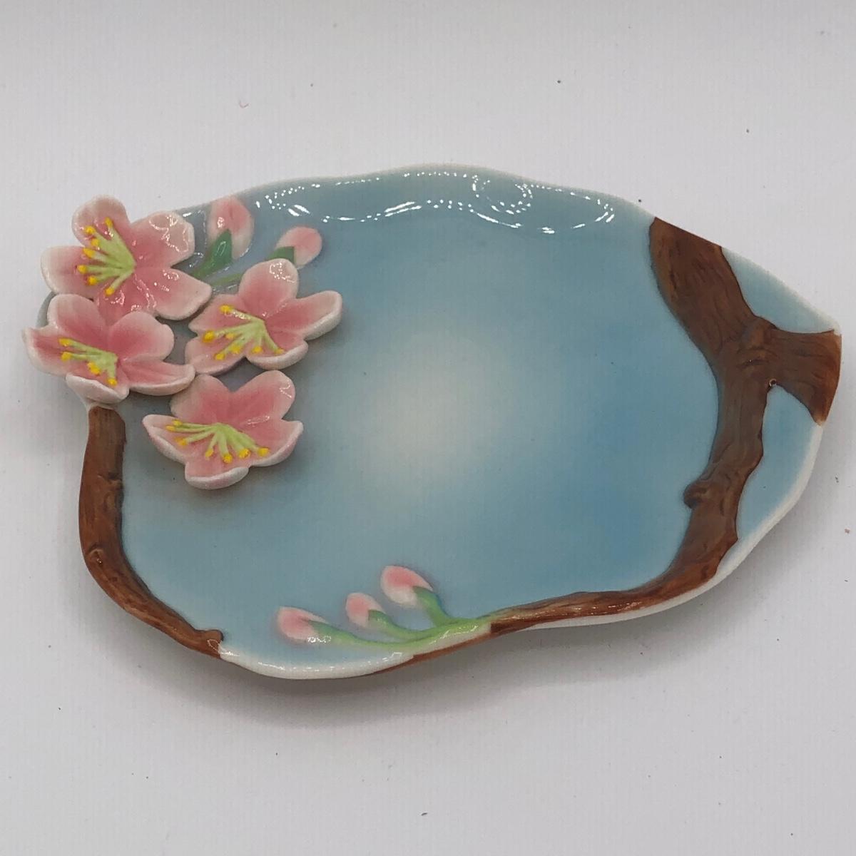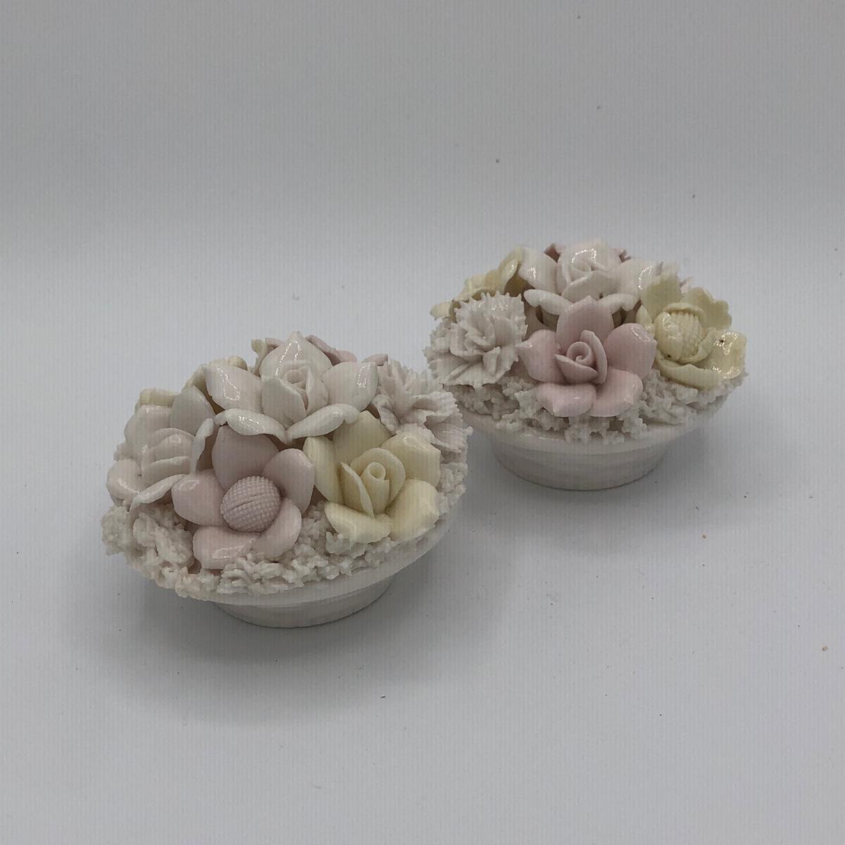LOT 210K: Hull Art Pottery Pink Wildflower Vase W8-7 1/2, Napoleon Italy Porcelain Flower, Two's Company Porcelain Cherry Blossom Tea Cup / Saucer & Ardalt Lenwile China Flower Baskets