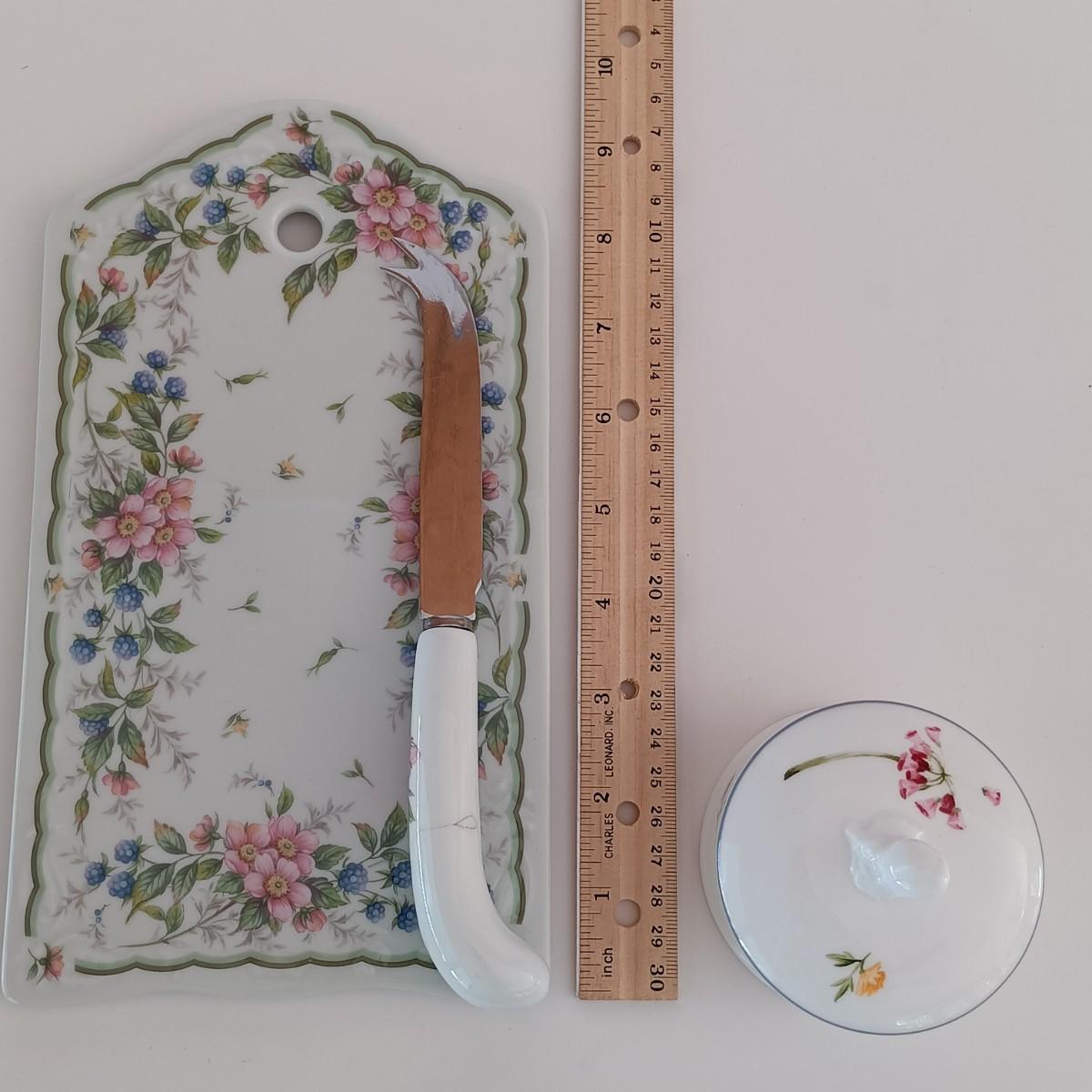 LOT 250S: Wedgewood Ophelia Trinket Box w/ Andrea by Sadek Cheeseboard & Demdaco Plate