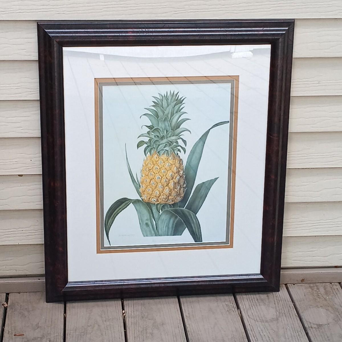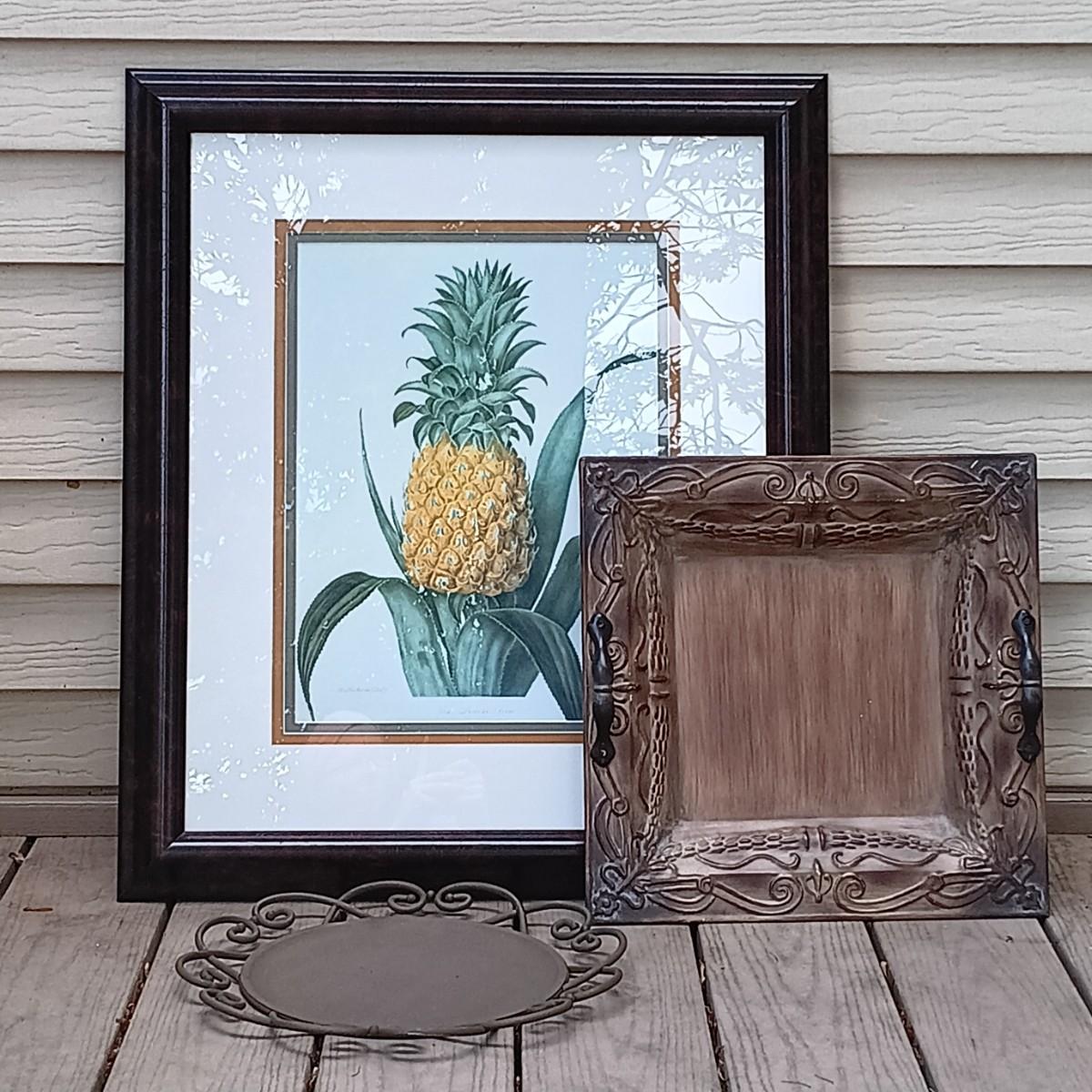 LOT 255S: Framed Pineapple Art with Pair of Decorative Metal Trays