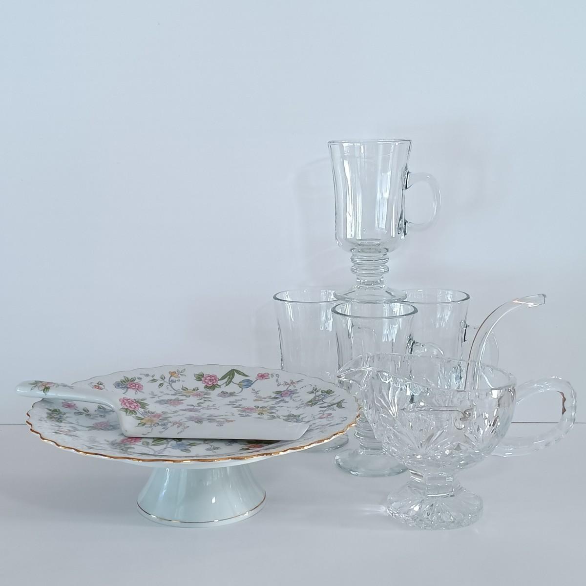 LOT 256S: Andrea by Sadek Porcelain Cake Plate and Knife with a Collection of Glassware