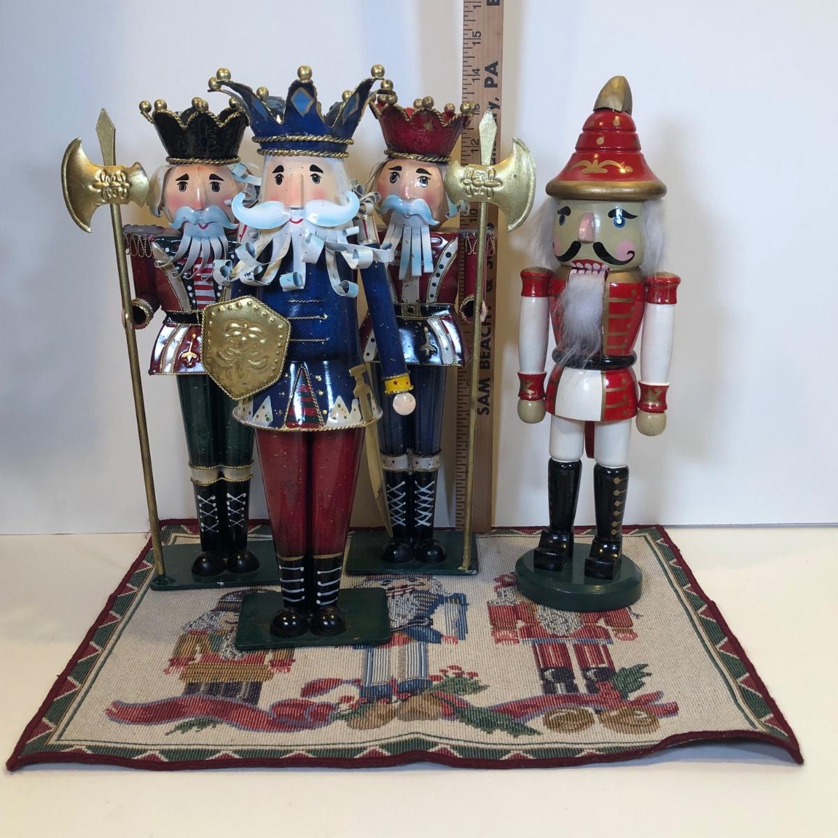 LOT 269K: Vintage Metal Christmas Soldiers w/ Wooden Nutcracker