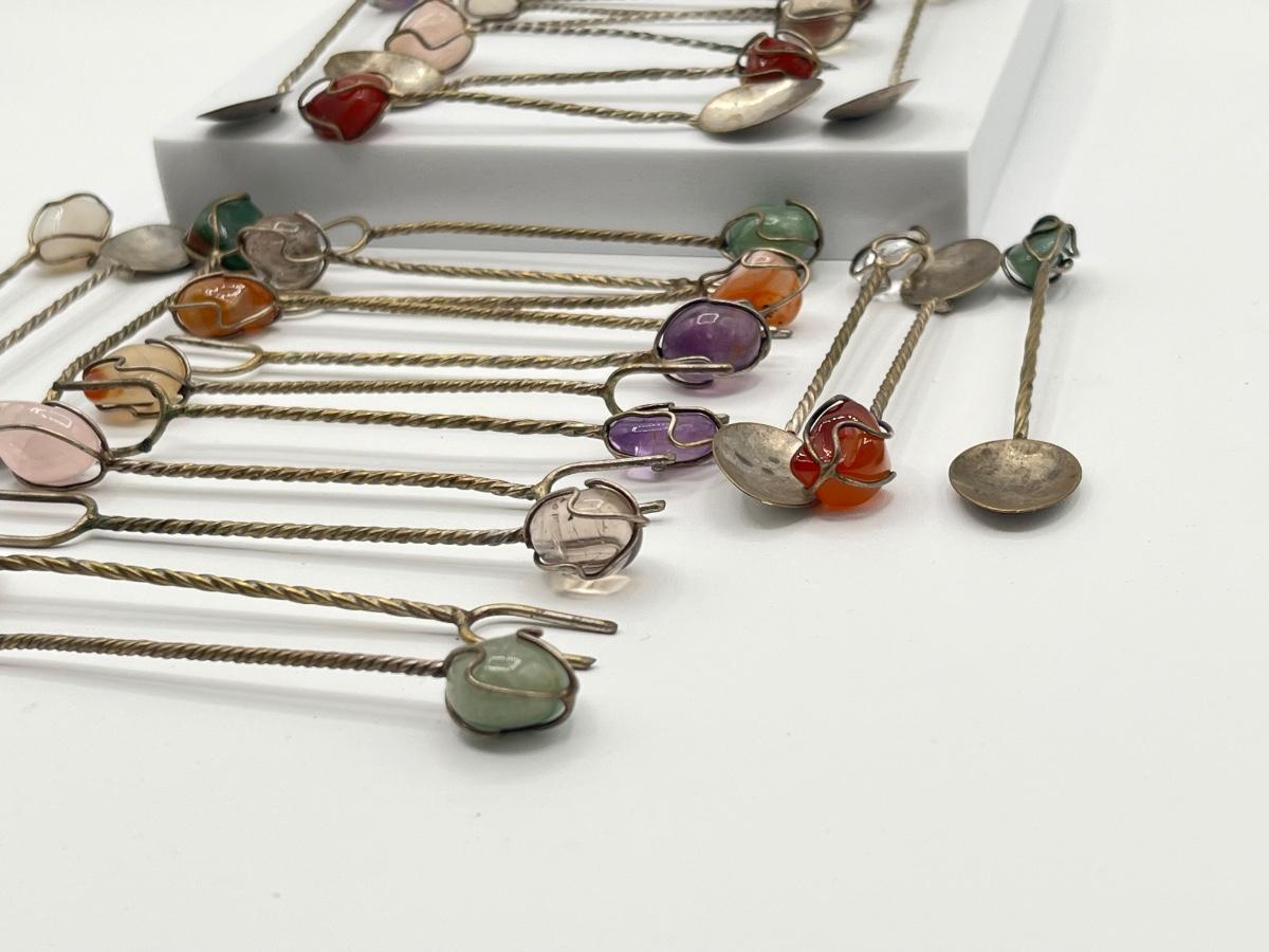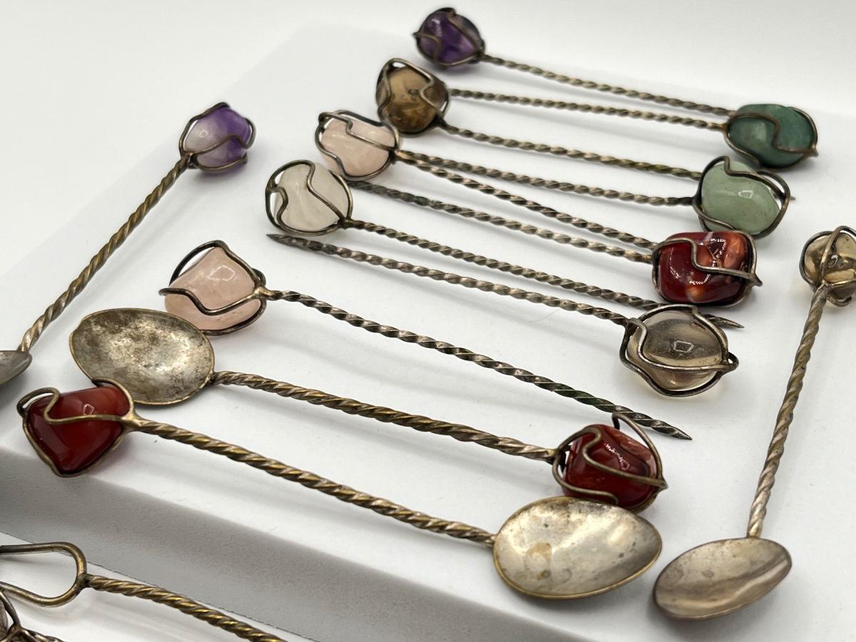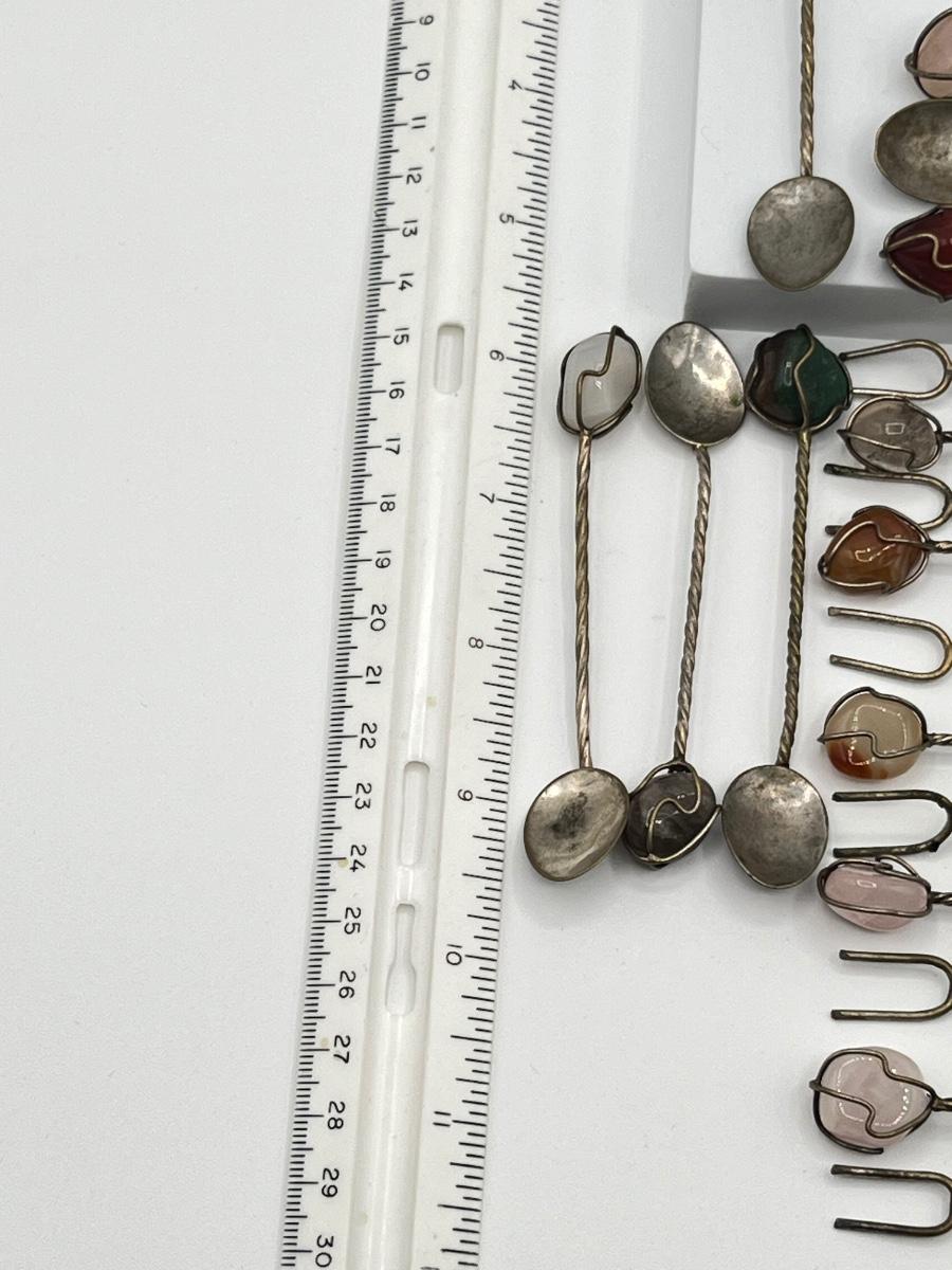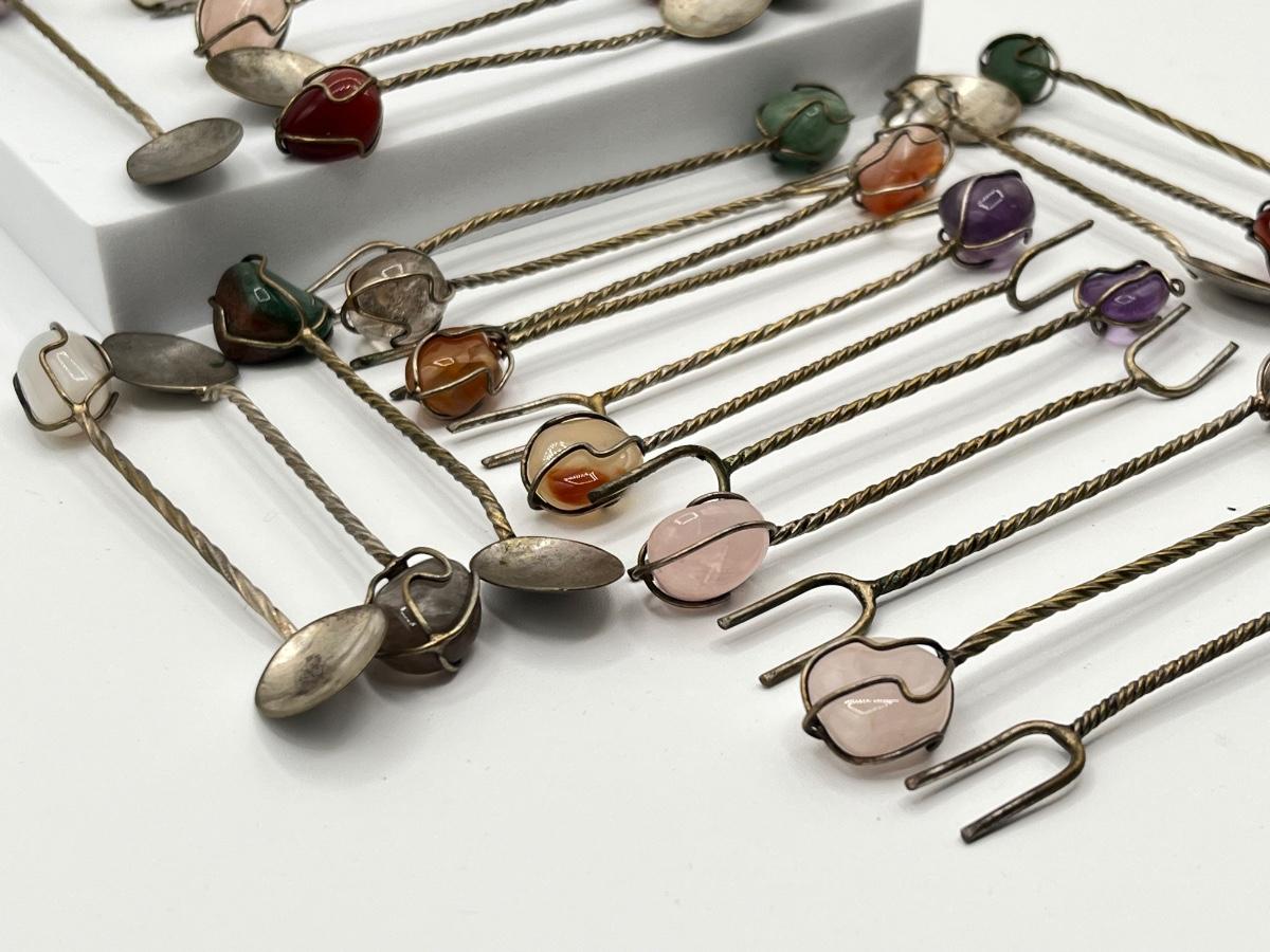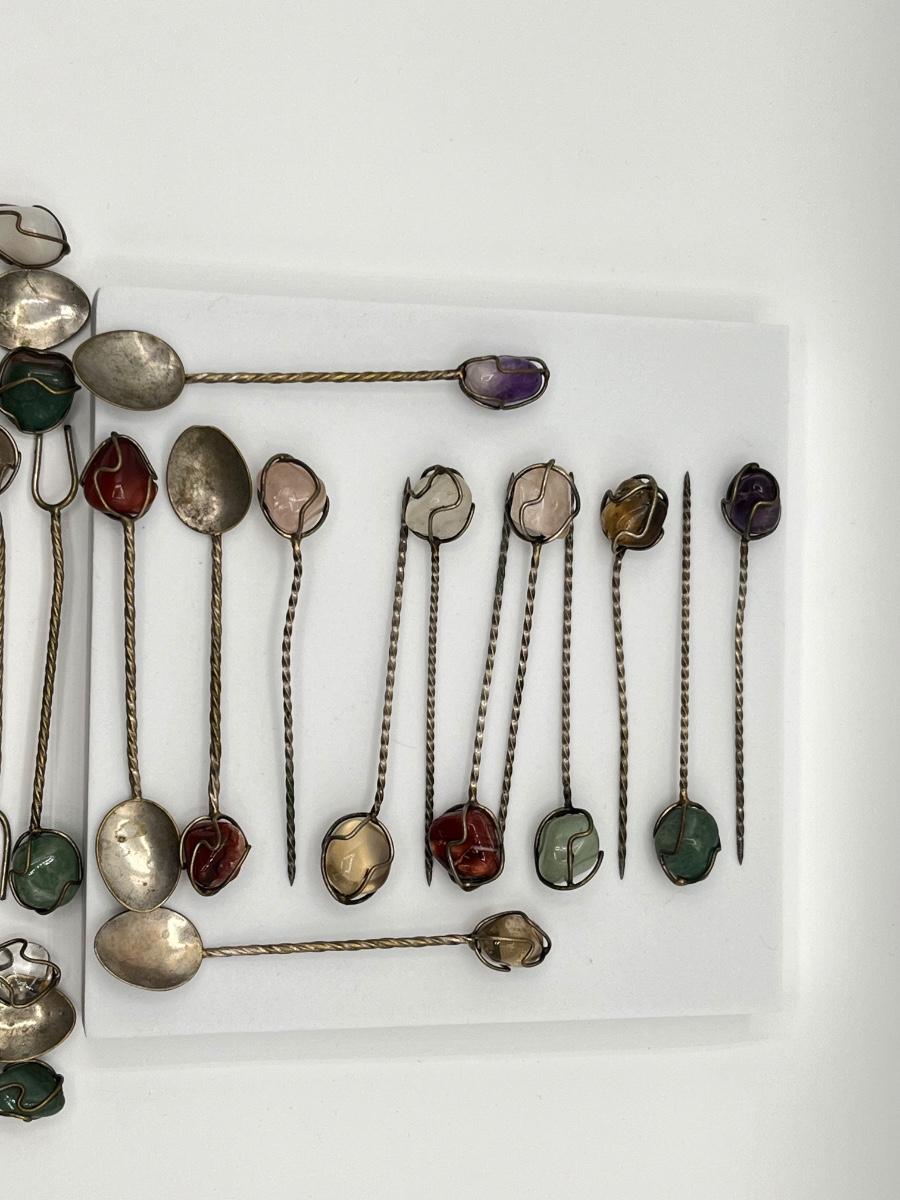 LOT 284J: Vintage Cocktail/Appetizer Picks, Forks, Spoons with Semi-Precious Stones