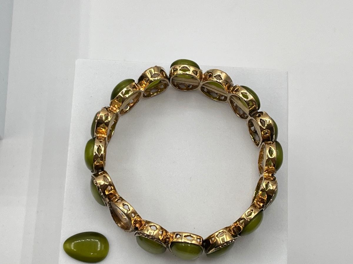One stone is loose/separate from bracelet. Please see all pictures as they are the best representation of the items. The pictures show condition, measurements if taken, and what is included in the lot. Due to the large amount that we photograph and the time frame, we are not always able to take measurements. All items unless noted, are pre-owned and have been used. If you purchased furniture, you must bring help. We do not allow one person to carry large furniture out on their own. Bring help, tools and a truck for the safety of our client’s homes, and your personal safety. Any damages that result to the property including walls, and floors due to moving of the furniture will be charged to the buyer. Company policy. Thank you.