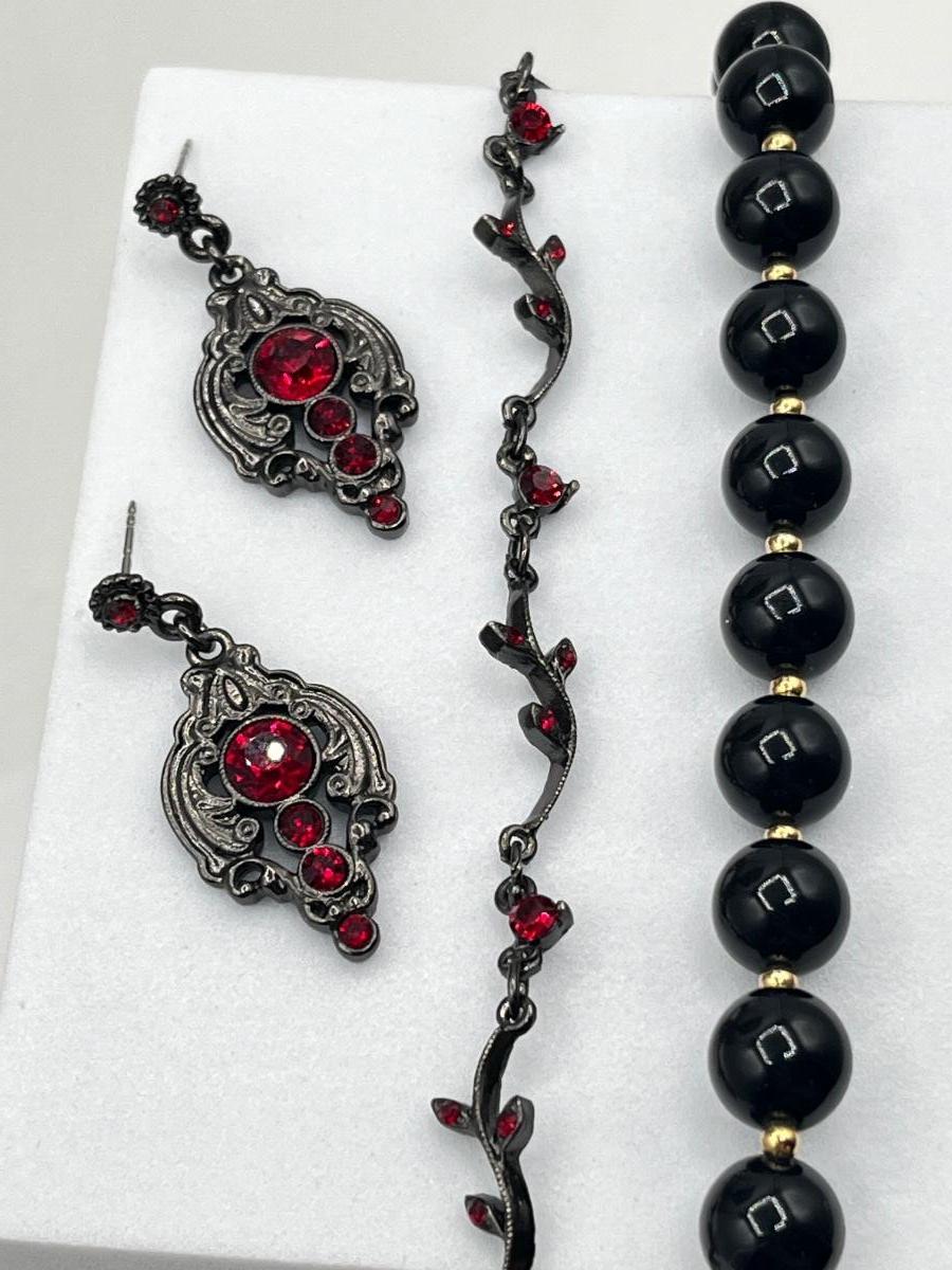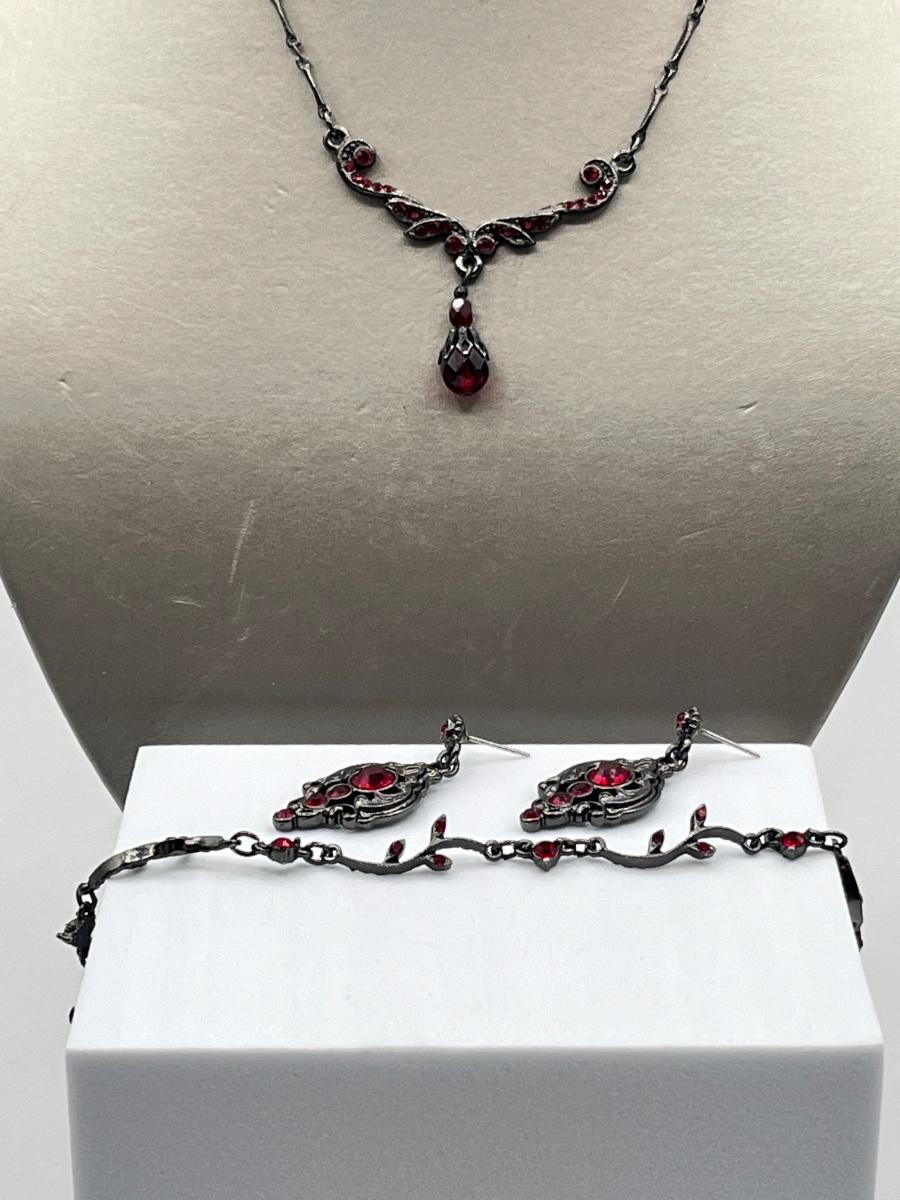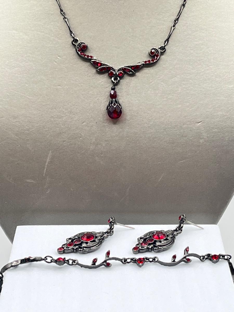 LOT 299J: Costume Jewely Collection Featuring Awesome Red Gem Necklace, Bracelet and Earring Set