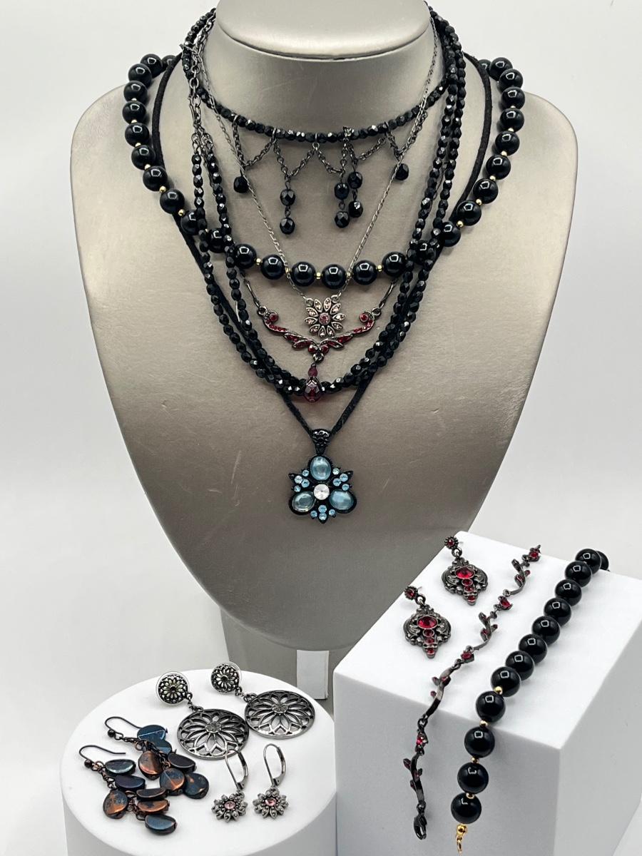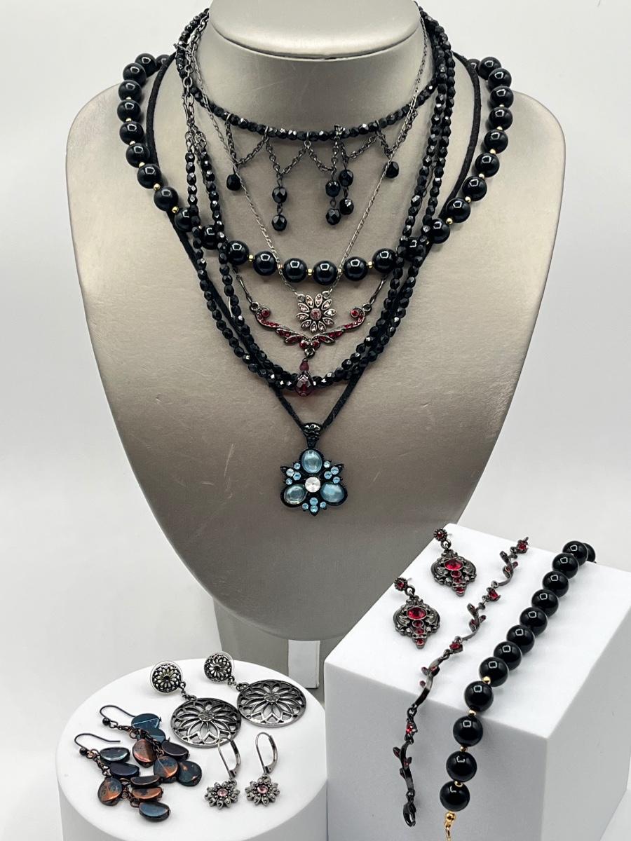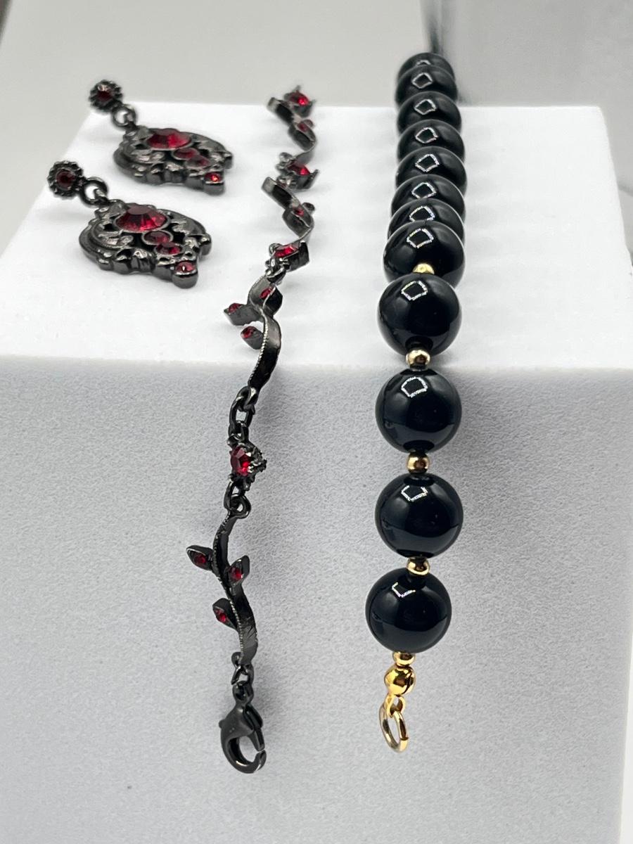 LOT 299J: Costume Jewely Collection Featuring Awesome Red Gem Necklace, Bracelet and Earring Set