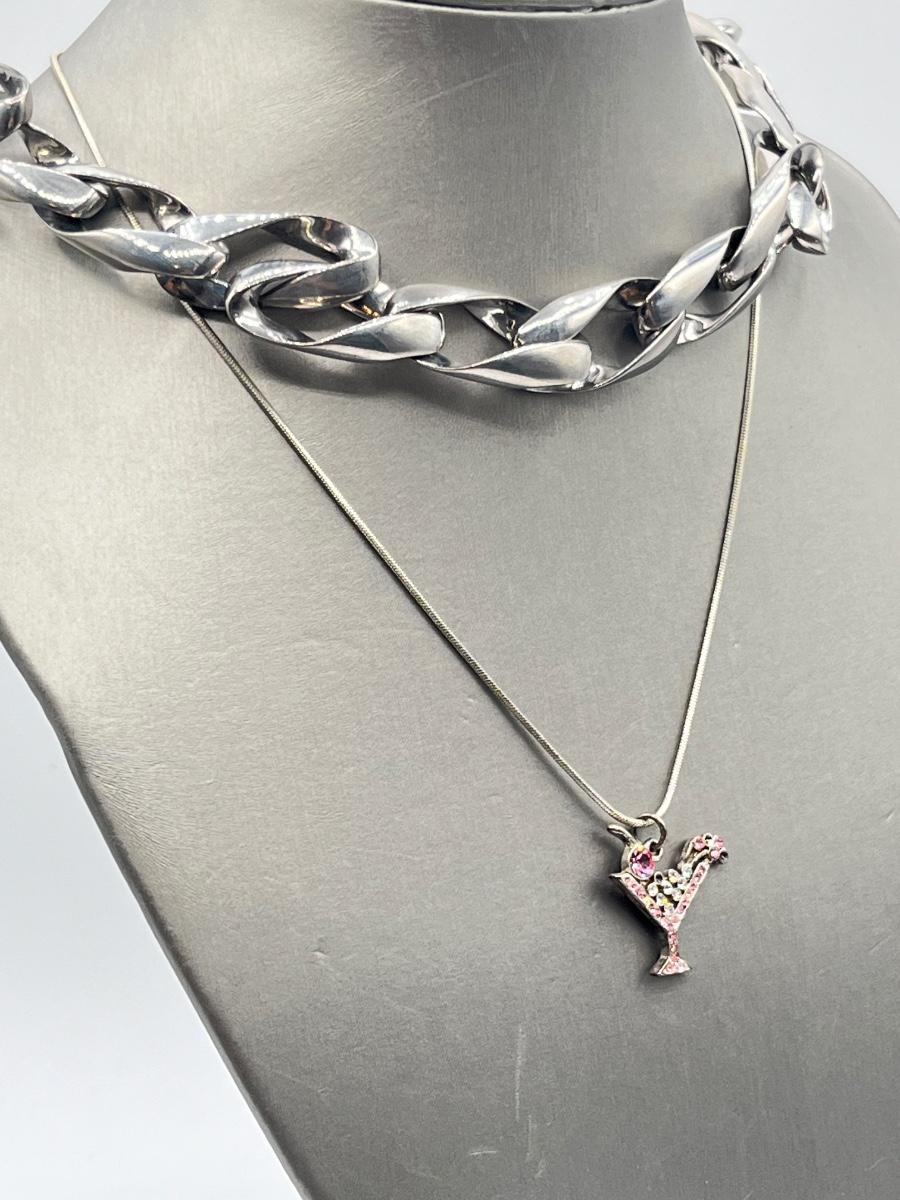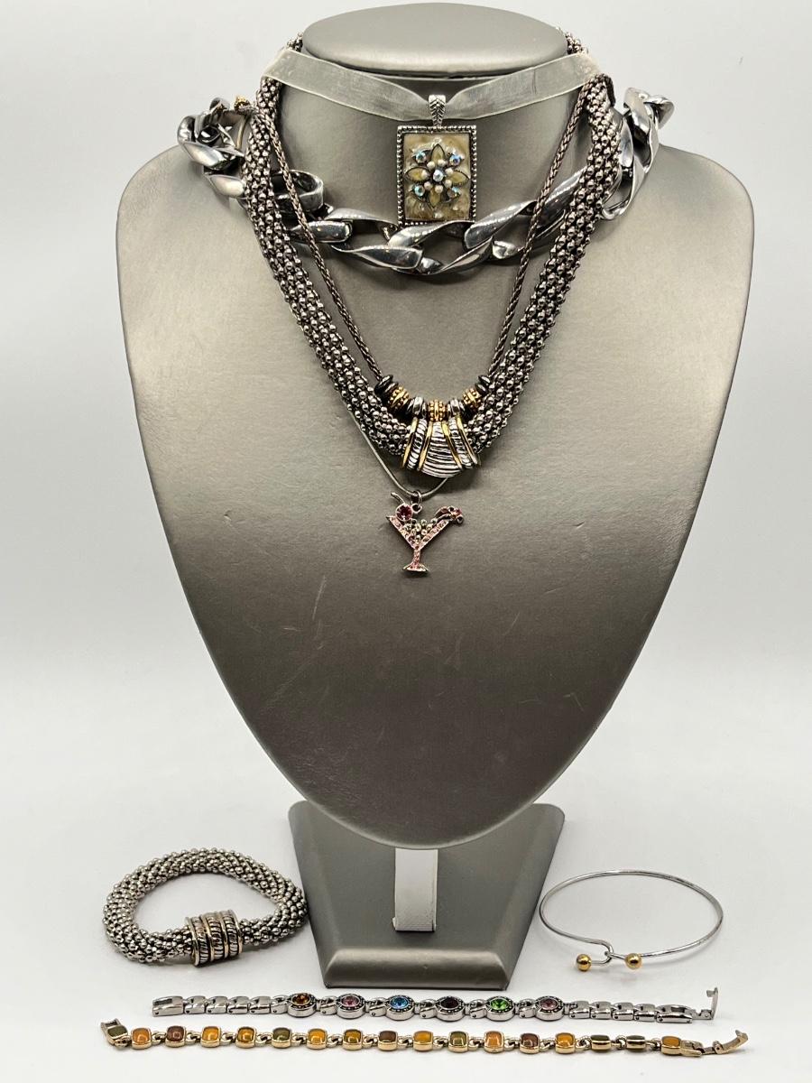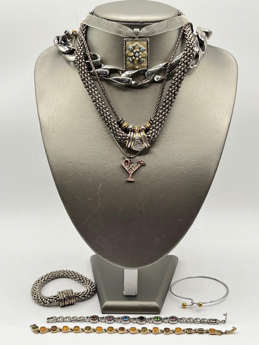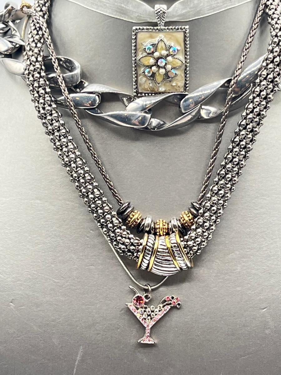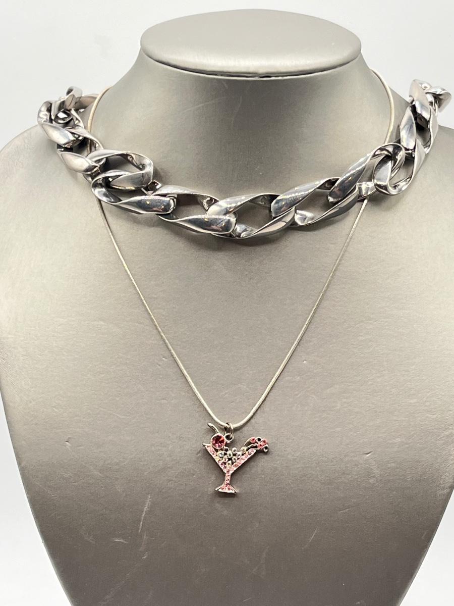 LOT 306J: Goldtone and Silvertone Costume Jewelry Collection Inlcuding Necklace with Unique Pink Martini Glass Pendant