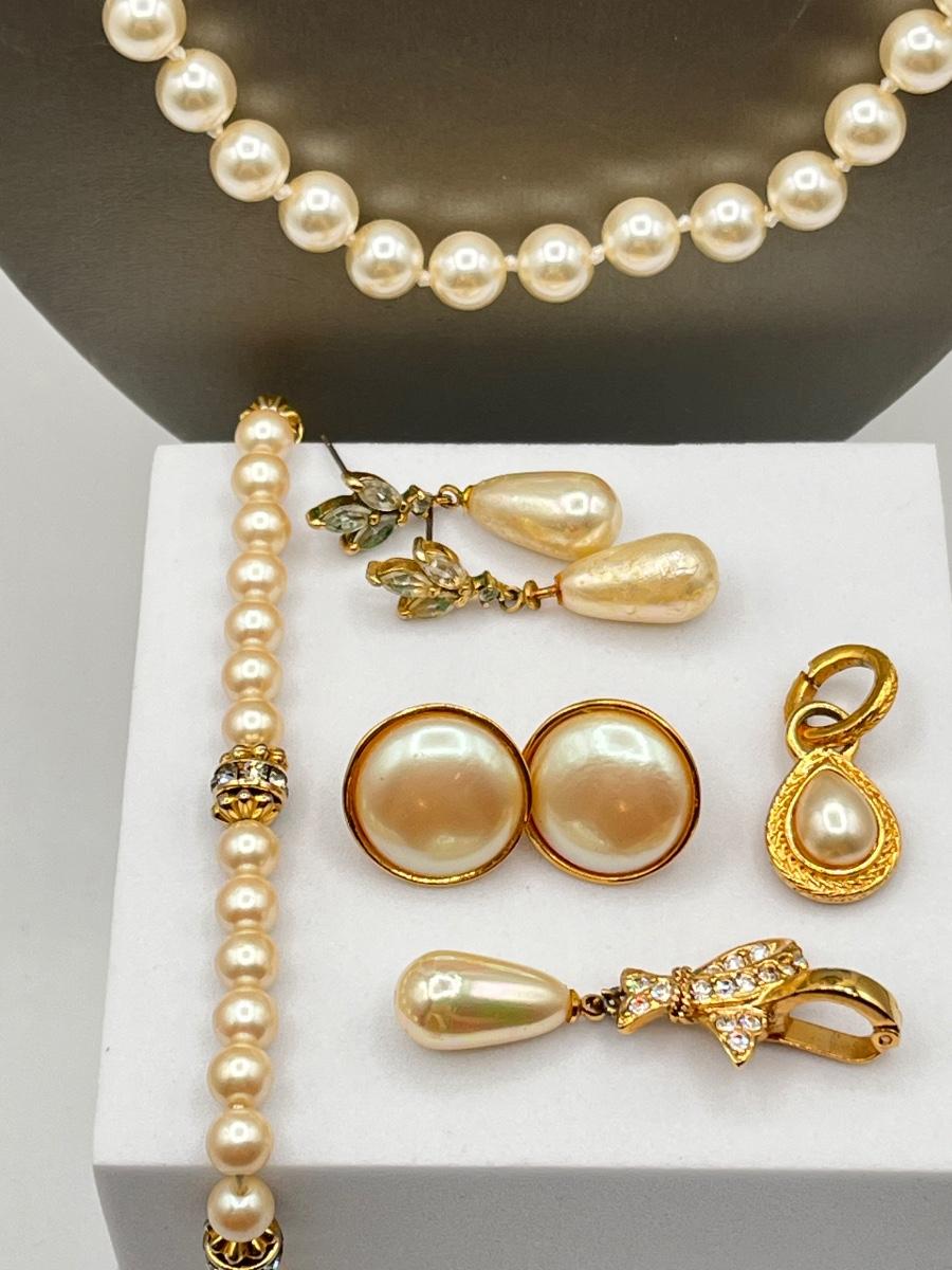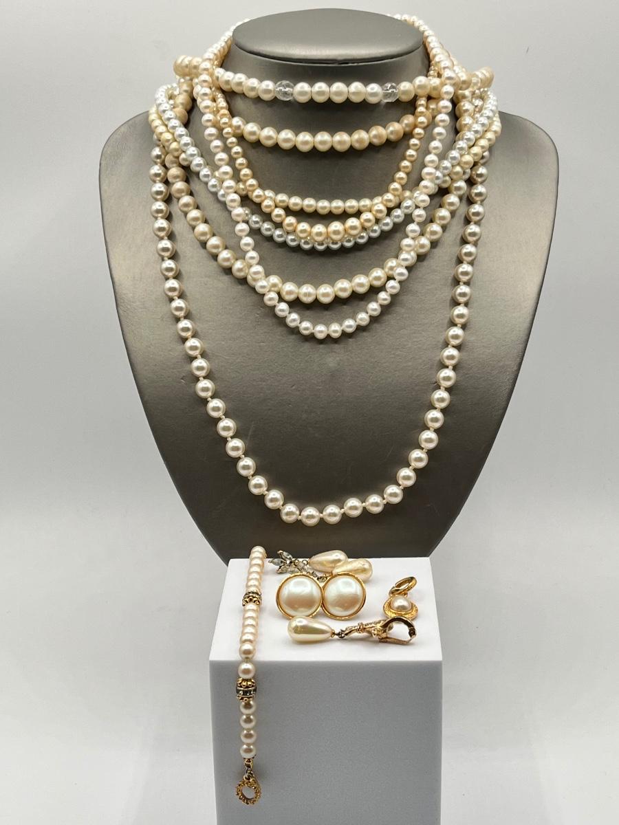 LOT 310J: Faux Pearl Jewelry Collection: Necklaces, Earrings, Bracelet
