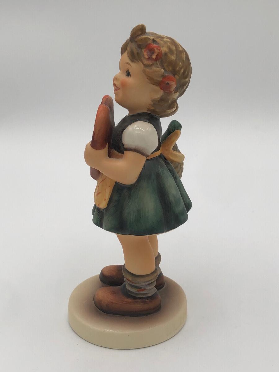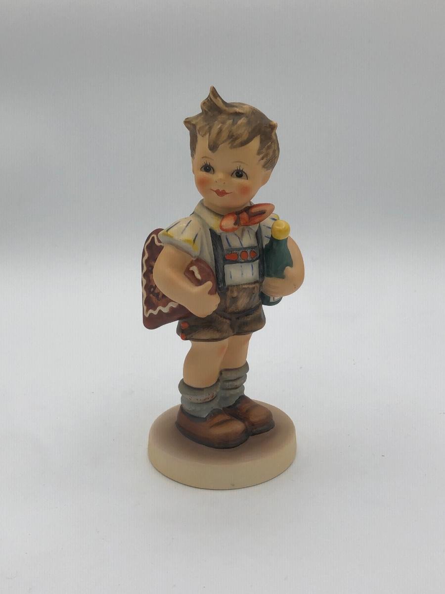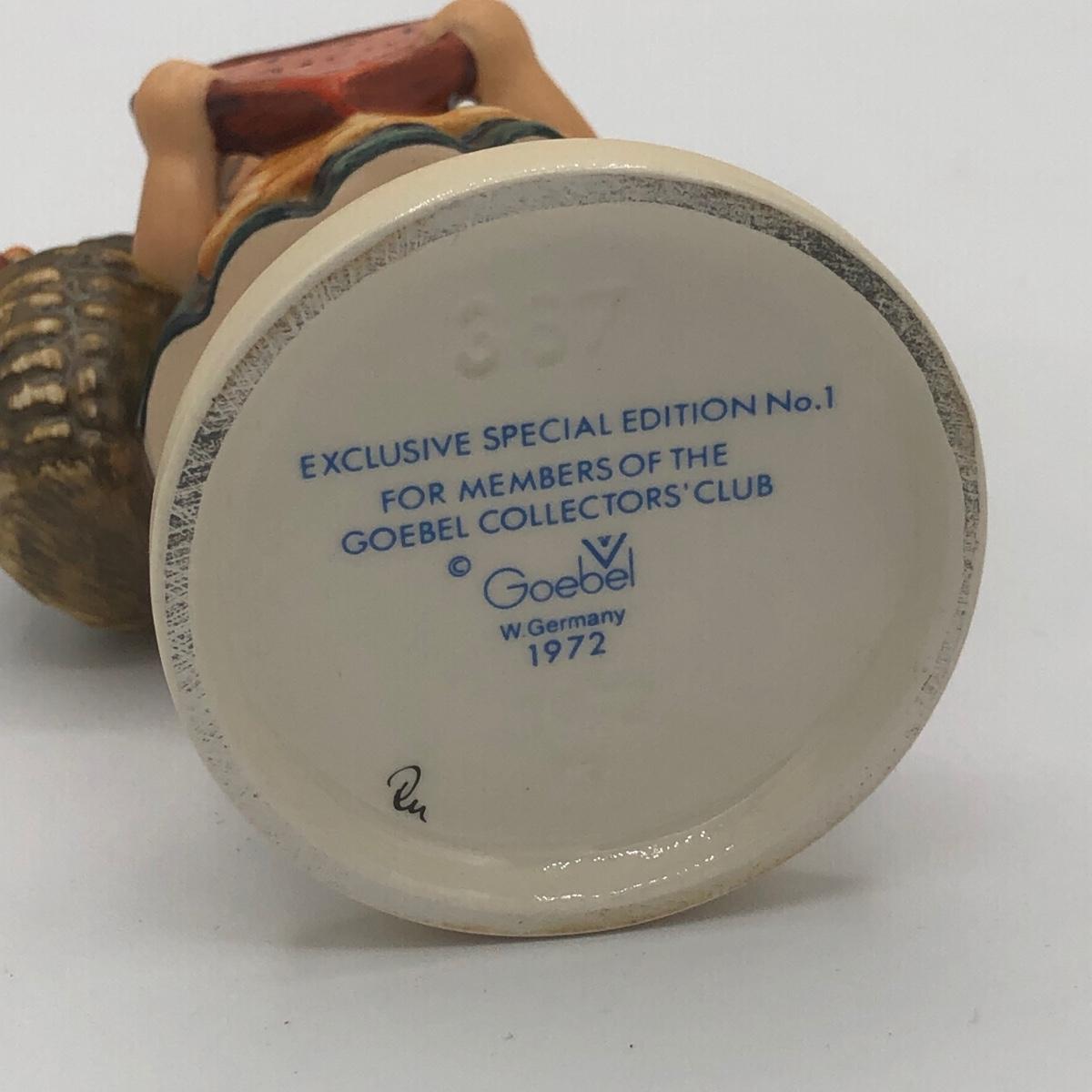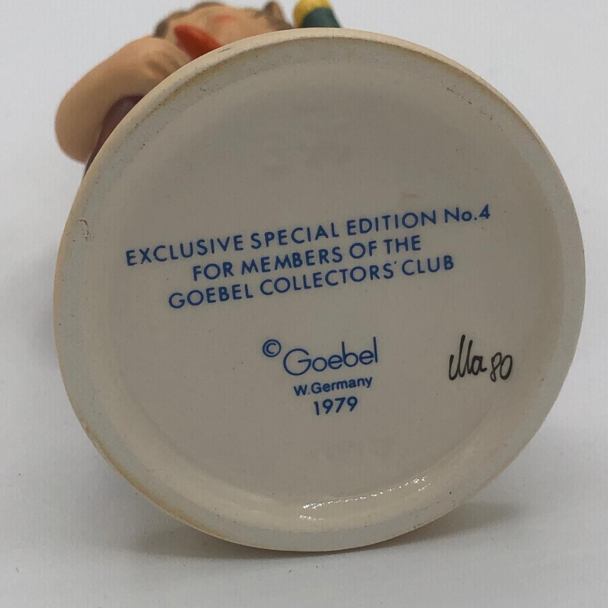 LOT 20D: Vintage 1970s Goebel Collectors Club M.I. Hummel Figurines w/ Wooden Liberty Gifts Display Stand - No 4 "Valentine Joy 399 & No 1 "Valentine Gift" 387