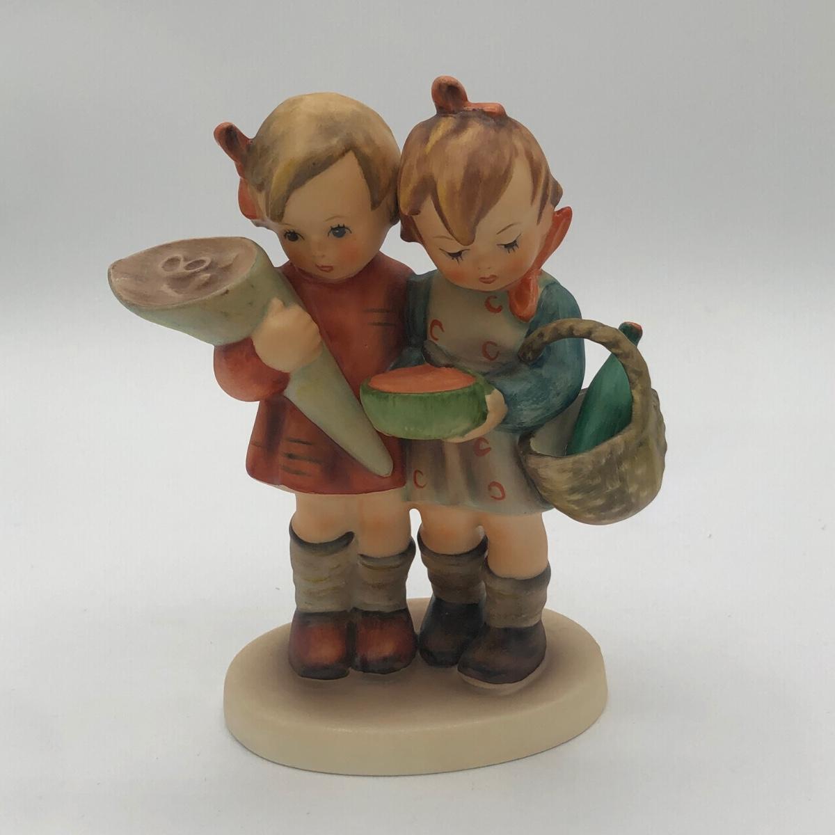 LOT 21D: Vintage Goebel M.I. Hummel Figurines - c1980s 5inch "Going to Grandma's" 52/0 & 1970s 4inch "We Congratulate" 220