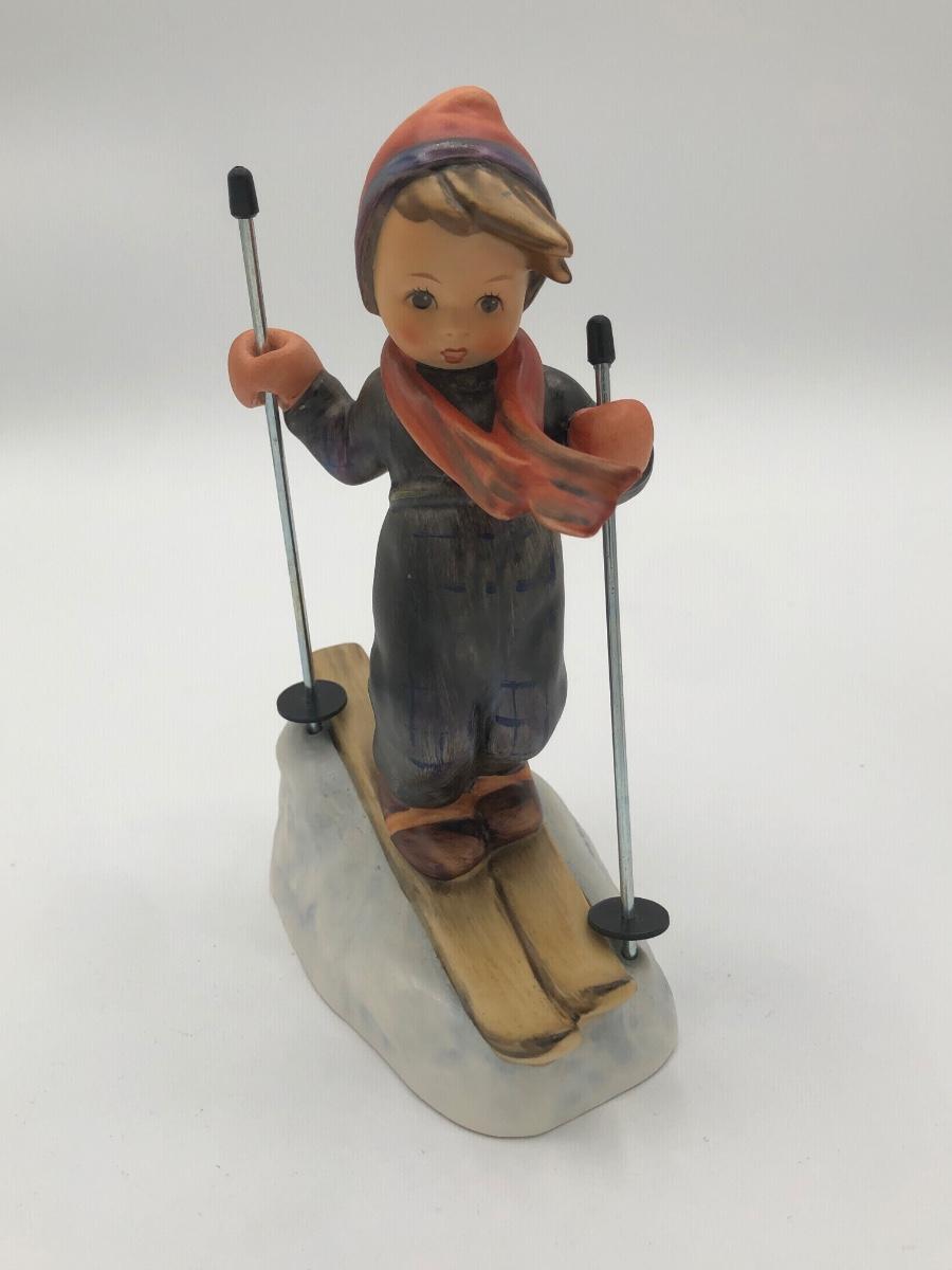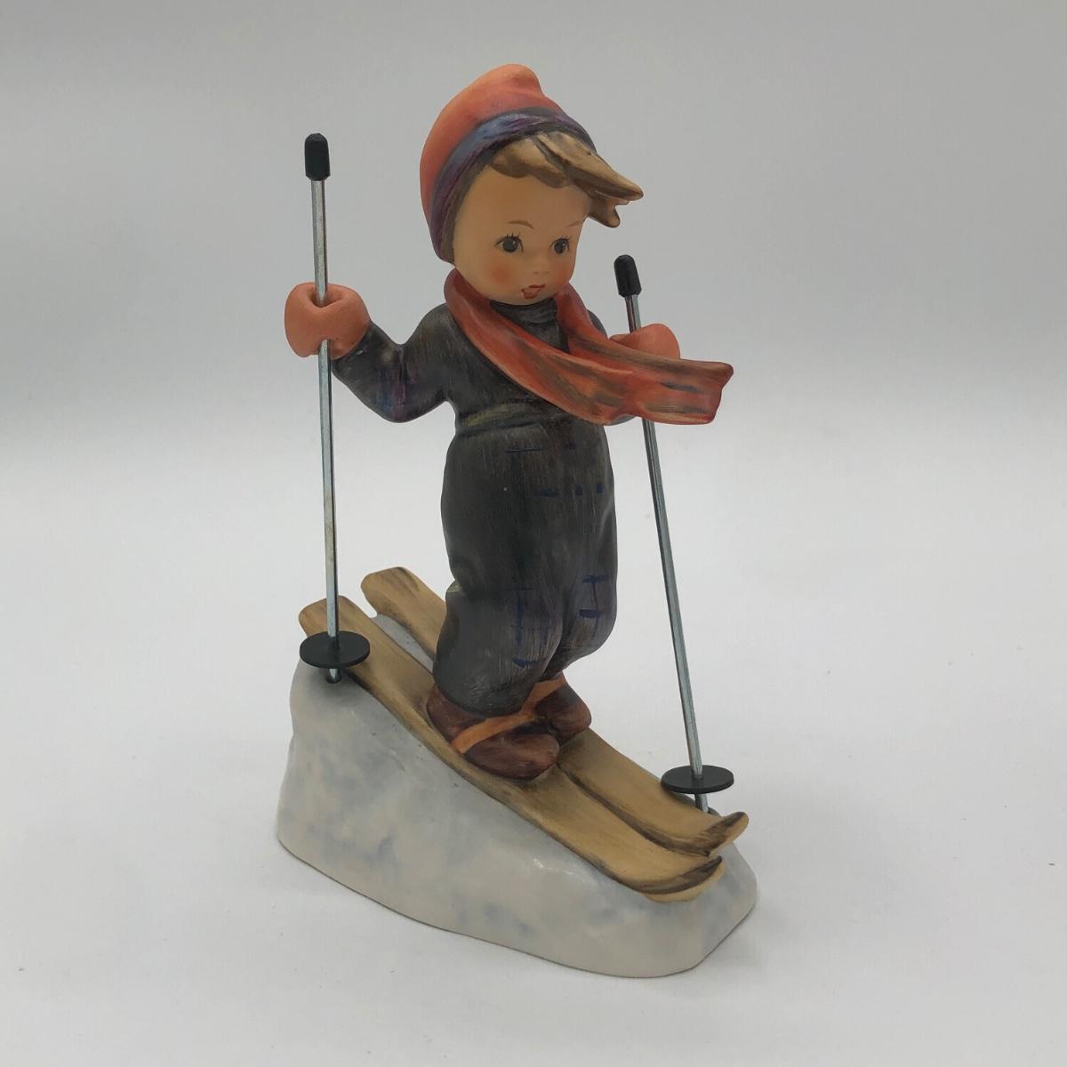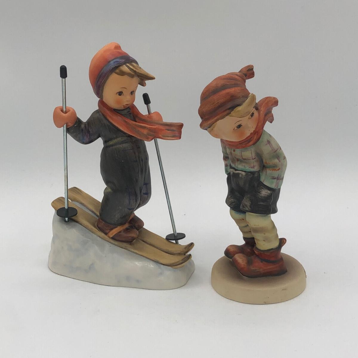 LOT 23D: Vintage Goebel M.I. Hummel Figurines - 1972 5.5inch "Skier" 59 w/ Metal Poles & c1960s 5inch "March Winds" 43