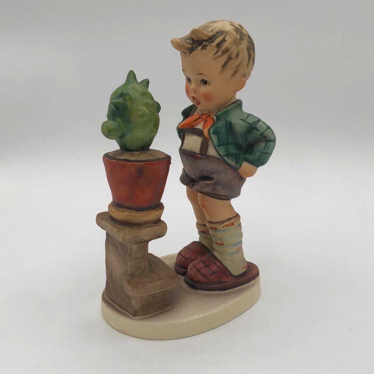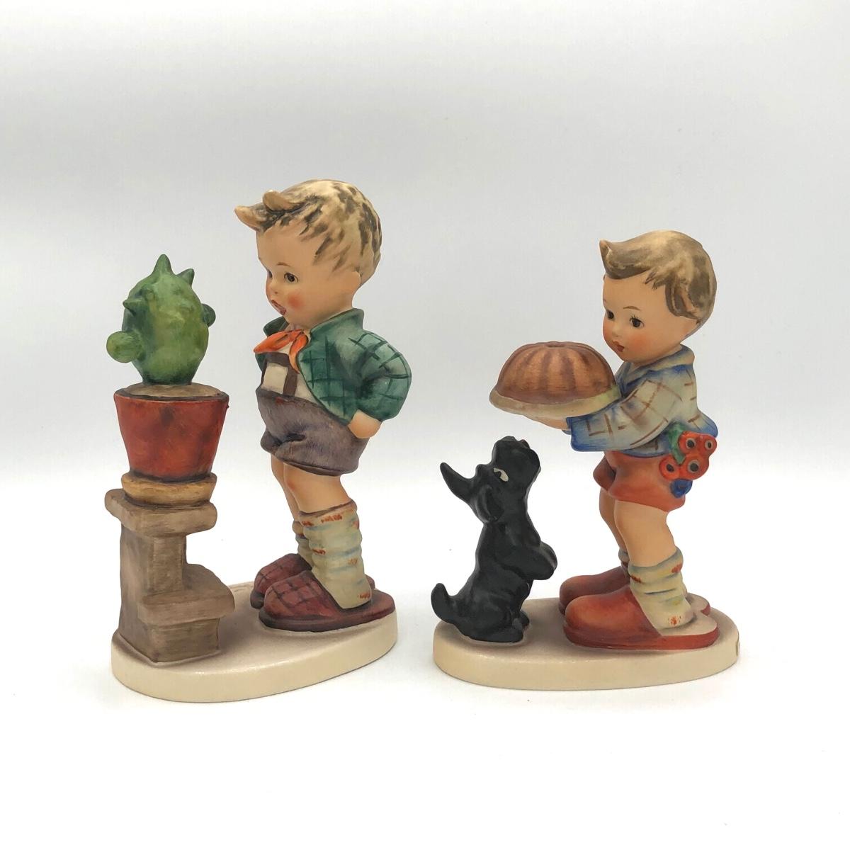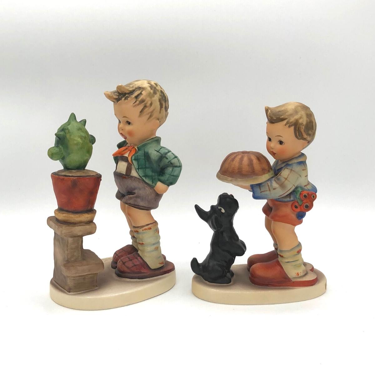 LOT 27D: Vintage Goebel M.I. Hummel Figurines - 1972 6inch "Confidentially" 314 Boy w/ Cactus & c1980s 5.5inch "Begging His Share" 9