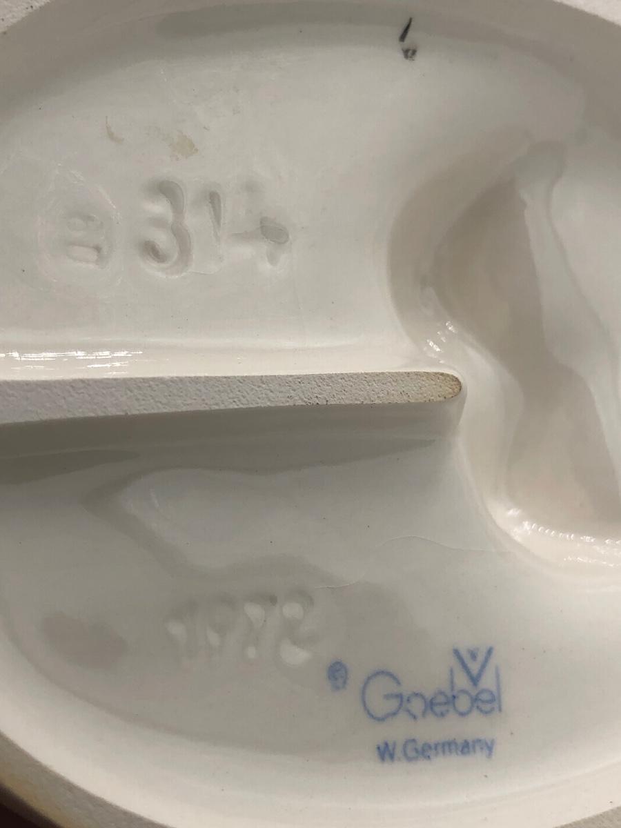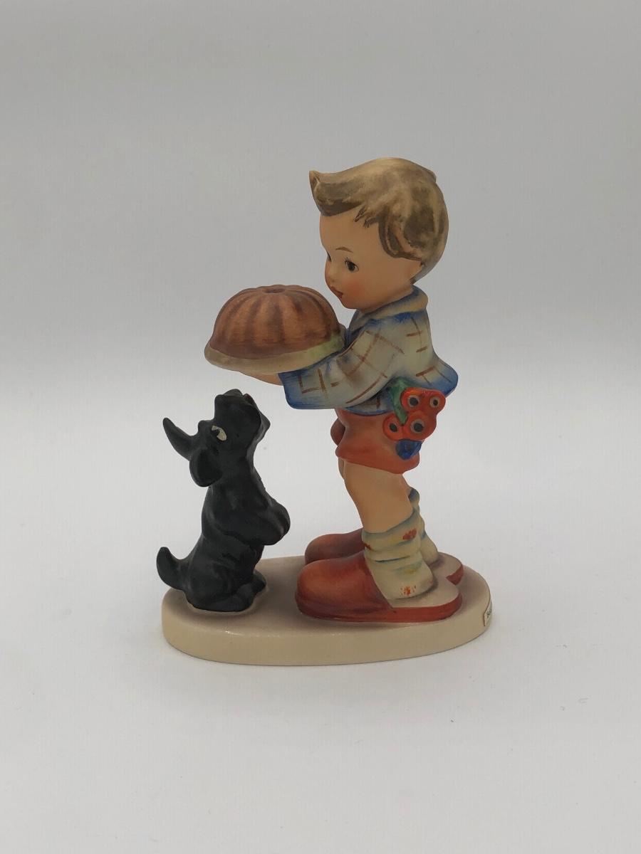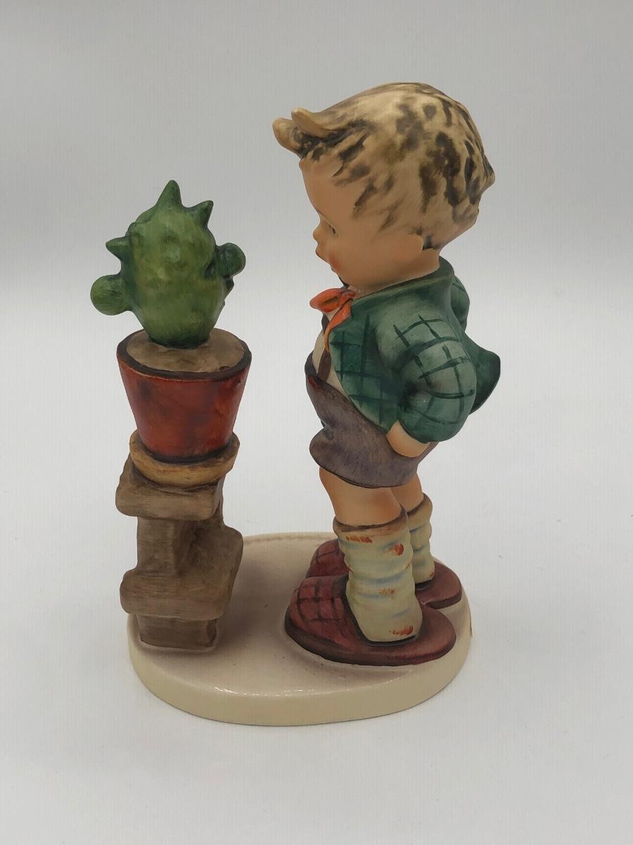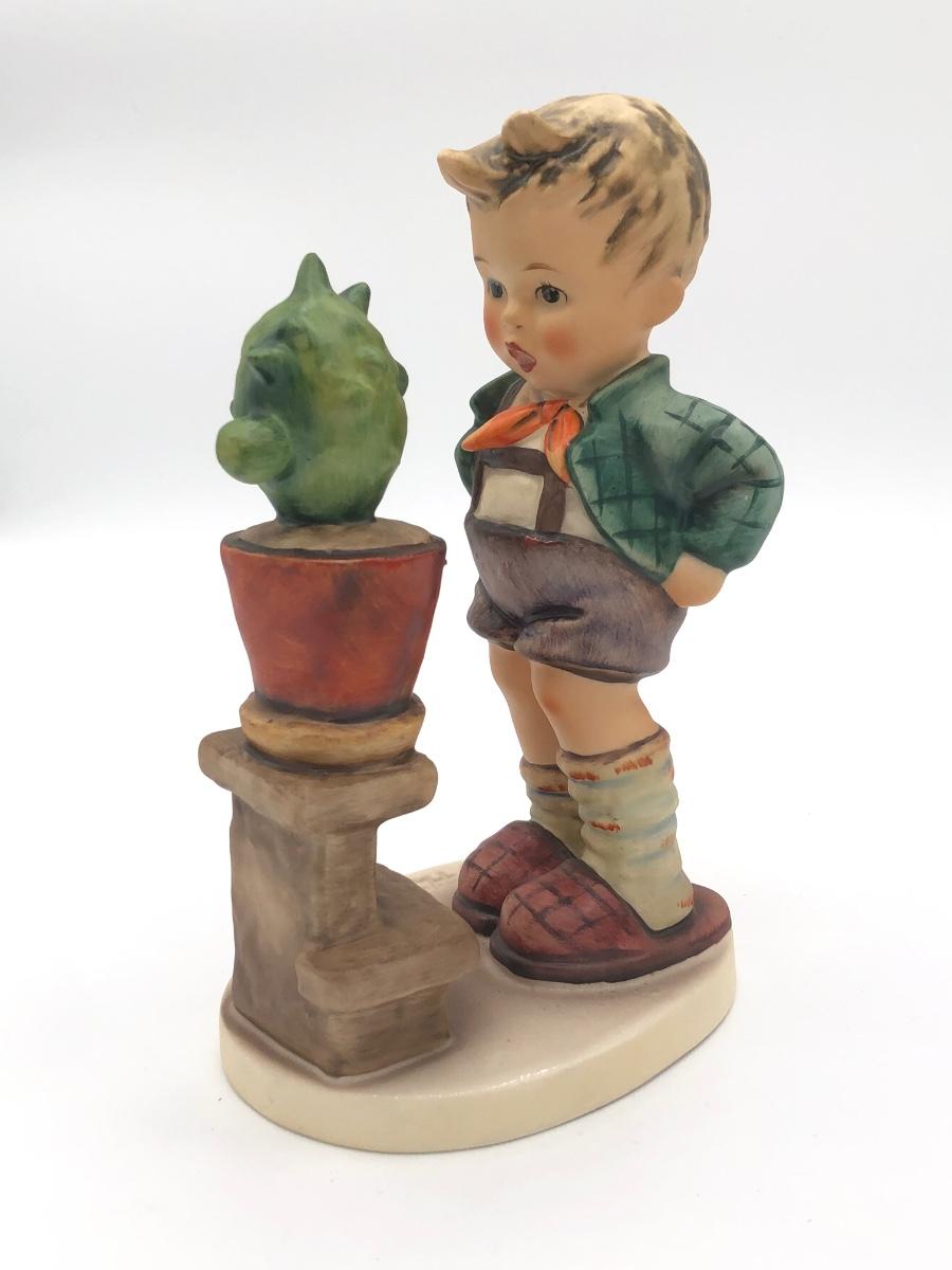 LOT 27D: Vintage Goebel M.I. Hummel Figurines - 1972 6inch "Confidentially" 314 Boy w/ Cactus & c1980s 5.5inch "Begging His Share" 9