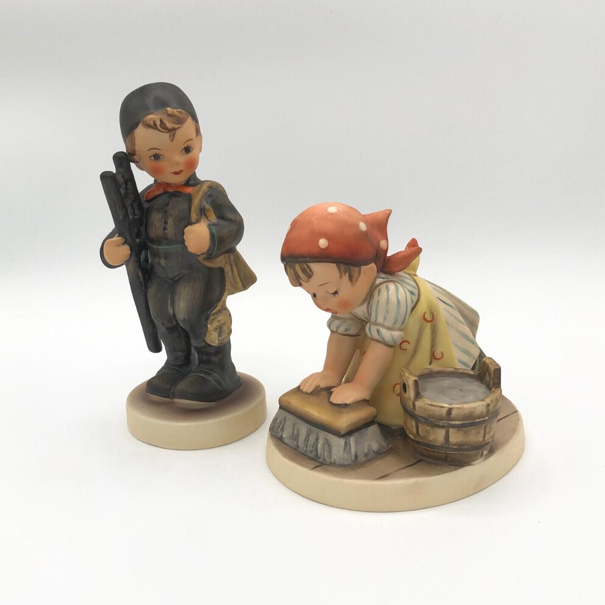 LOT 30D: Vintage Goebel M.I. Hummel Figurines - 1970s 5.75inch "Chimney Sweep" 12/I & Signed 1982 4.25inch "Big Housecleaning" 363