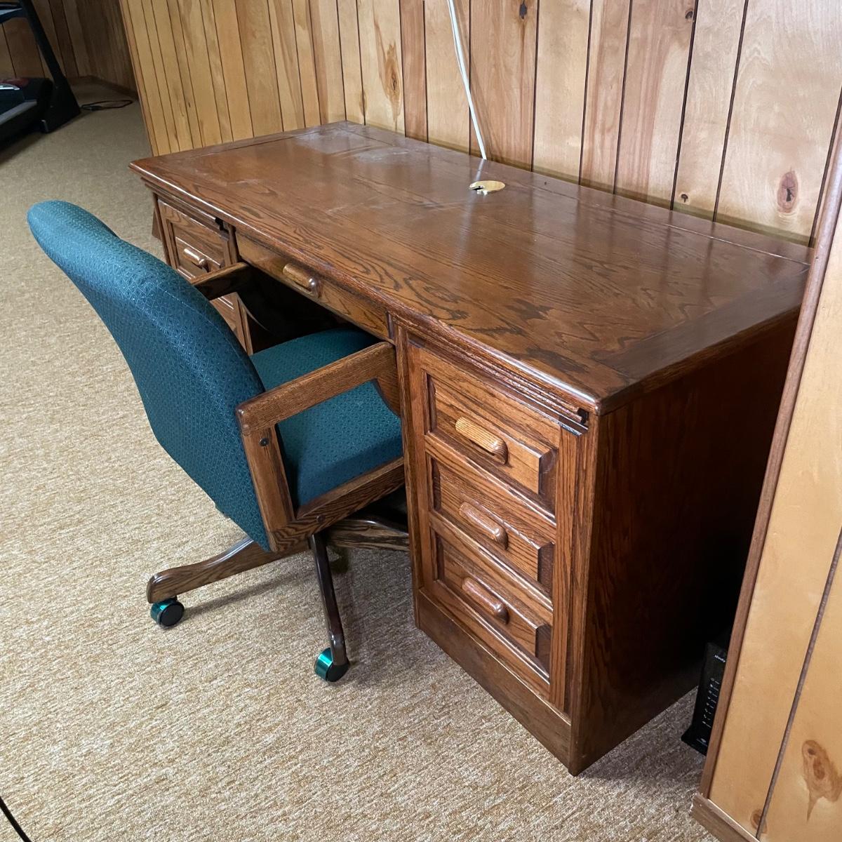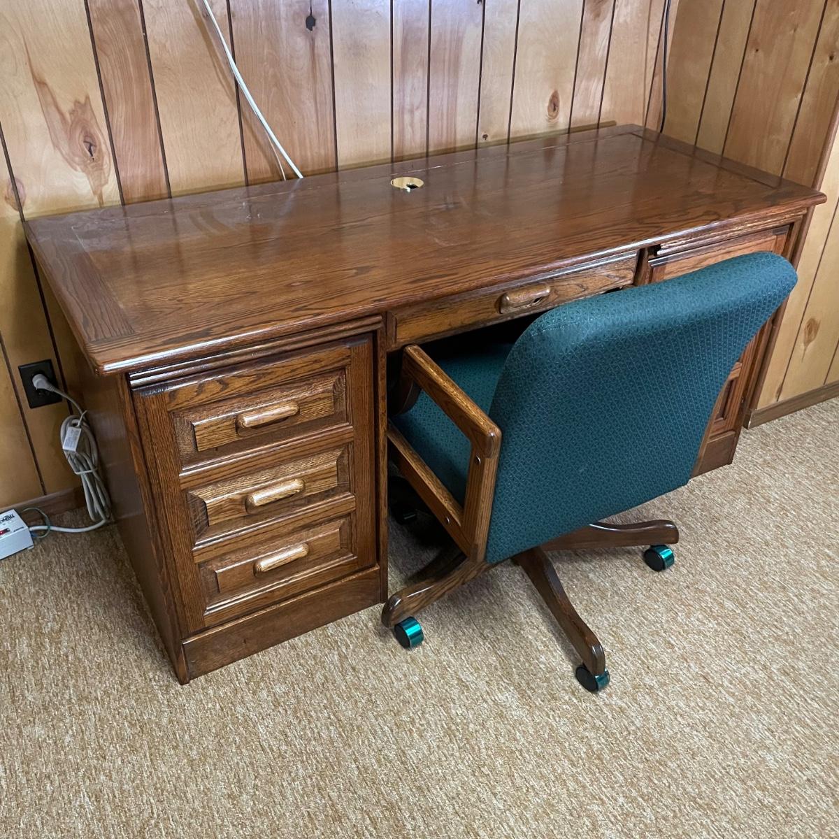 LOT 45B: Oak Computer Desk w/ Matching Swivel Chair