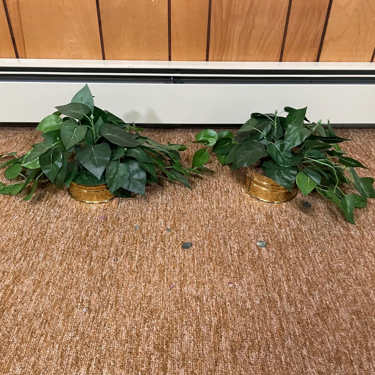 LOT 51B: Collection Of Faux Plants w/ Brass & Other Planters