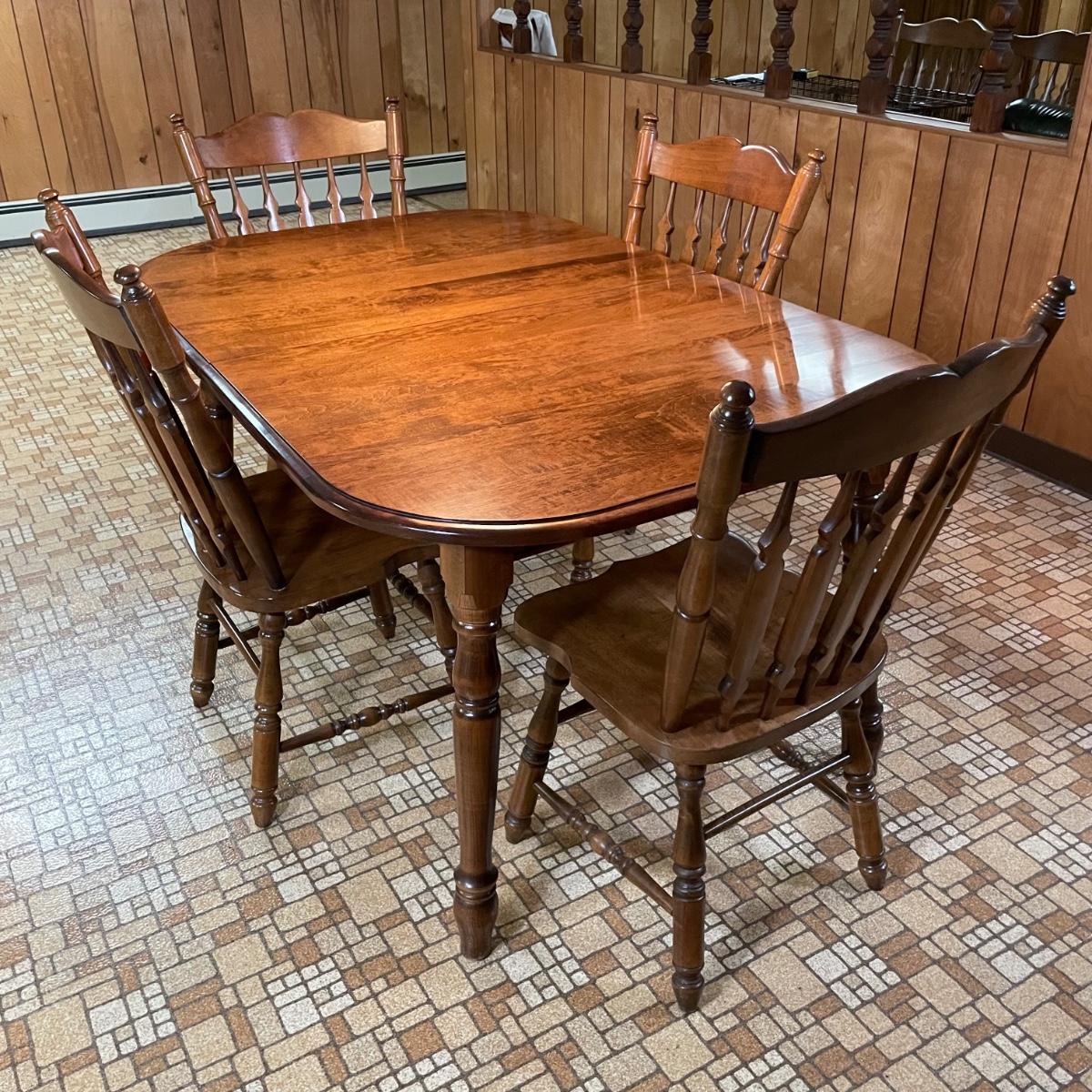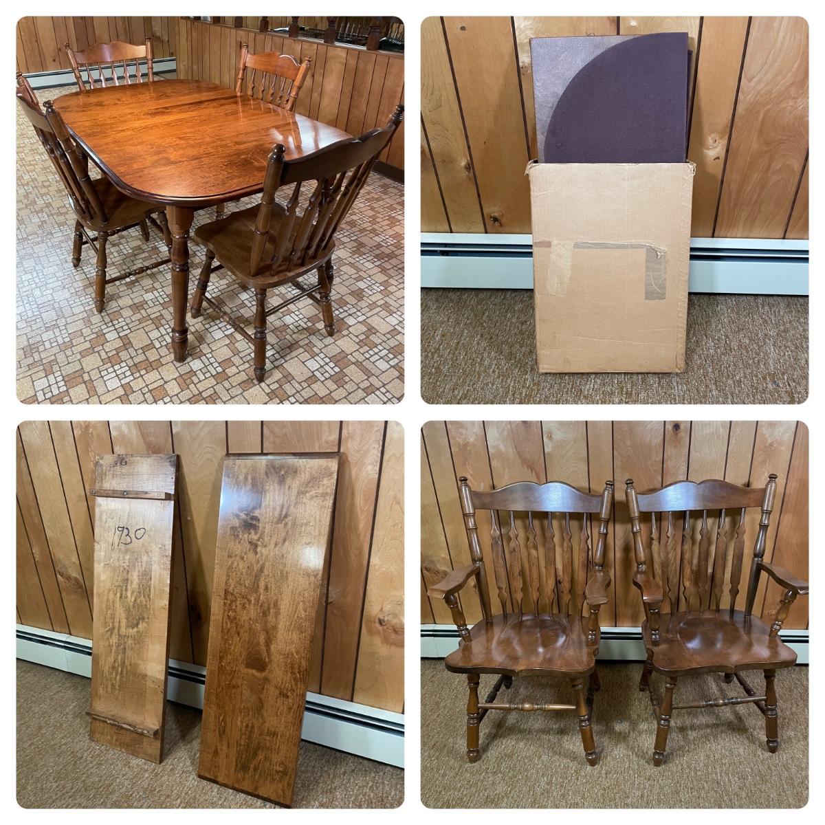 LOT 54B: Beautiful High Gloss Dinning Room Table w/ Pads, Matching Chairs & Leaves