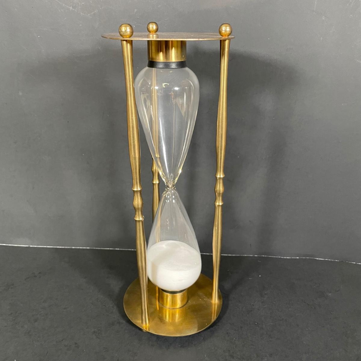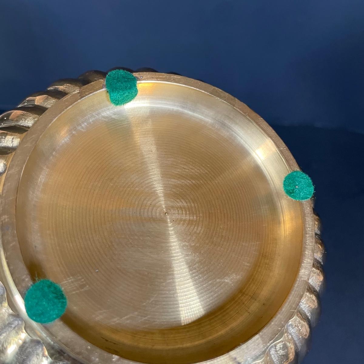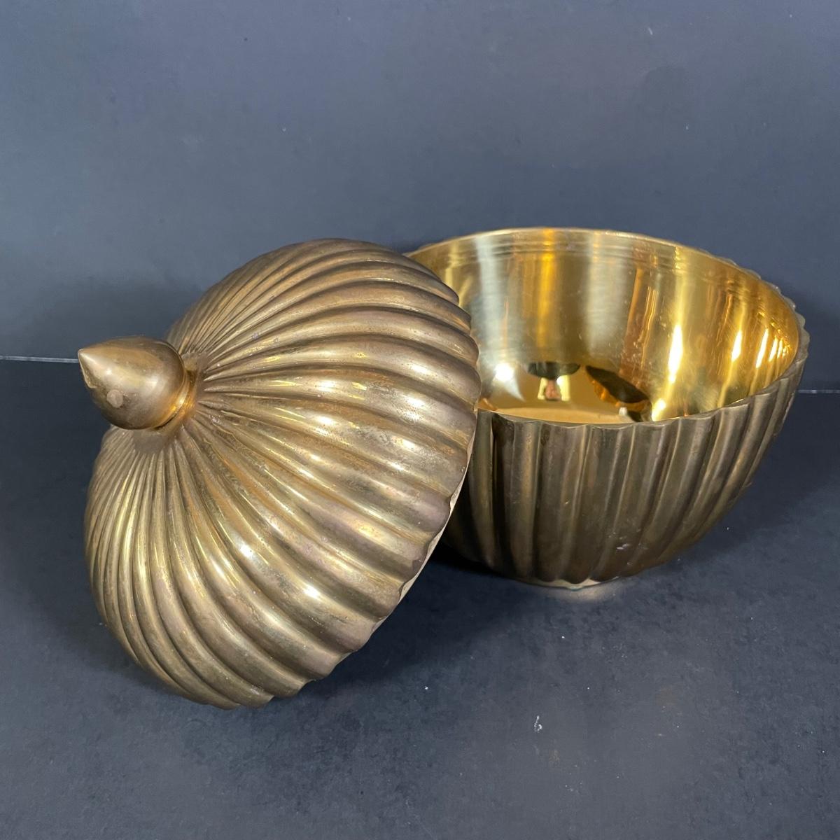 LOT 69B: Vintage Brass Home Decor Collection - Mid-Century Solid Brass Fluted Lidded Cachepot, Hour Glass & Lantern