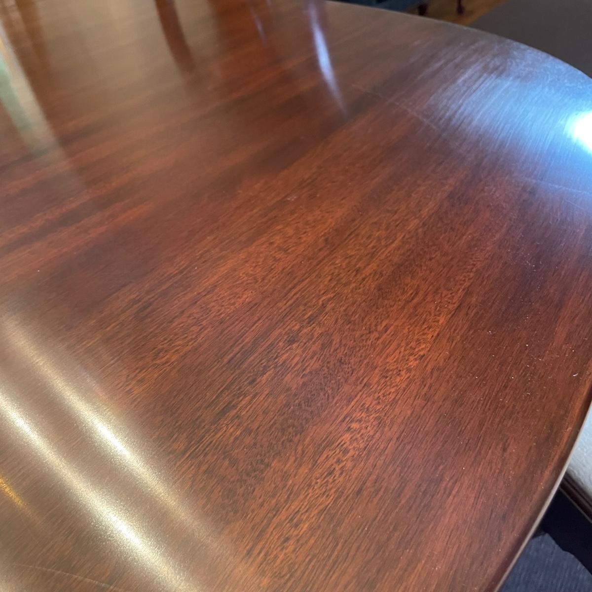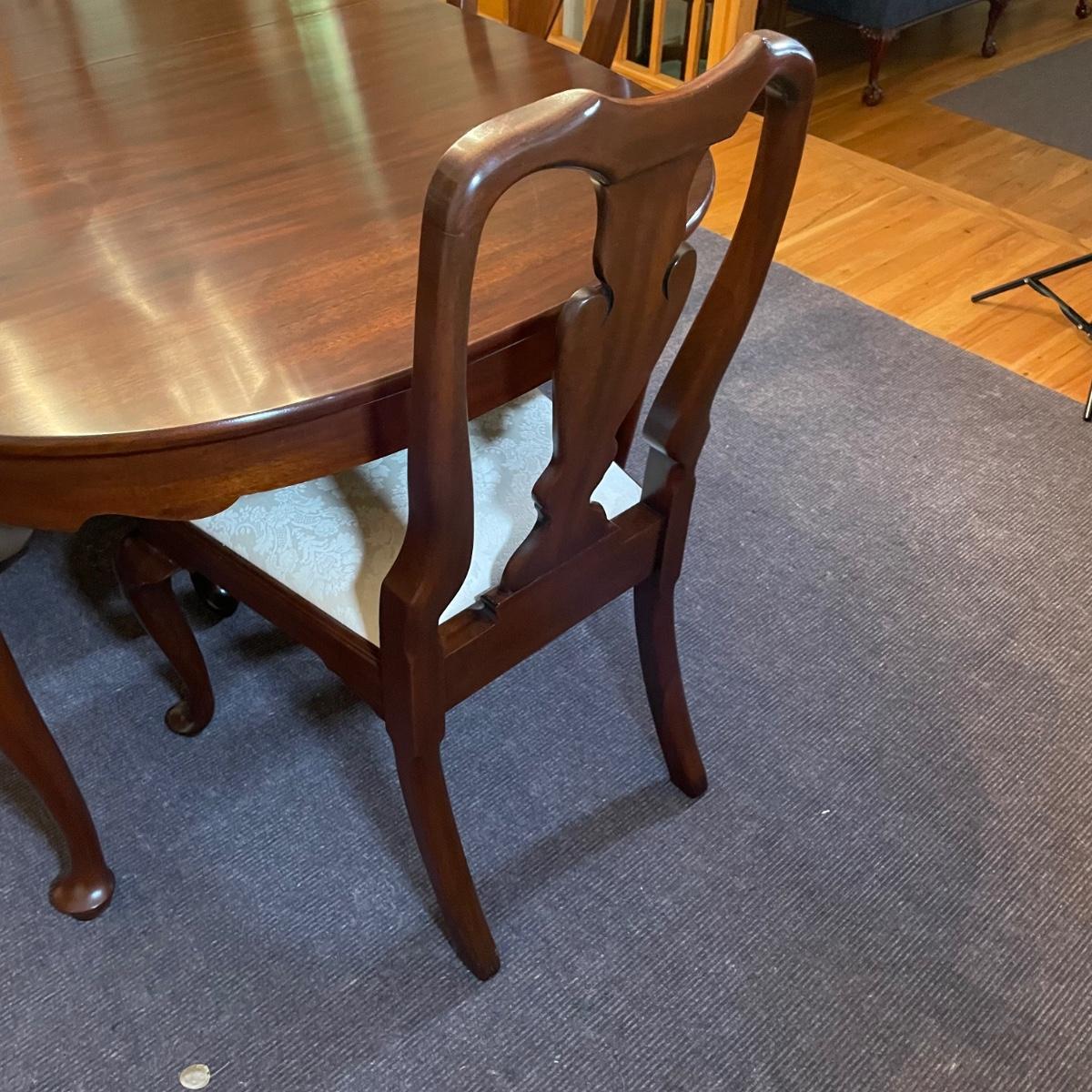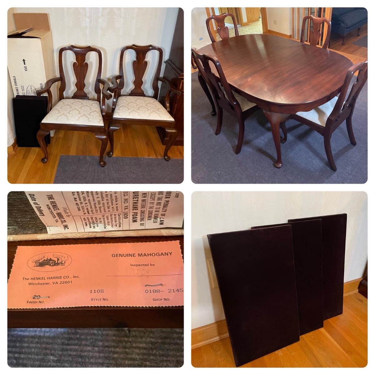 LOT 77D: Henkel & Harris Mahogany Dining Room Table w/ Pads, Extra Leaves & Chairs