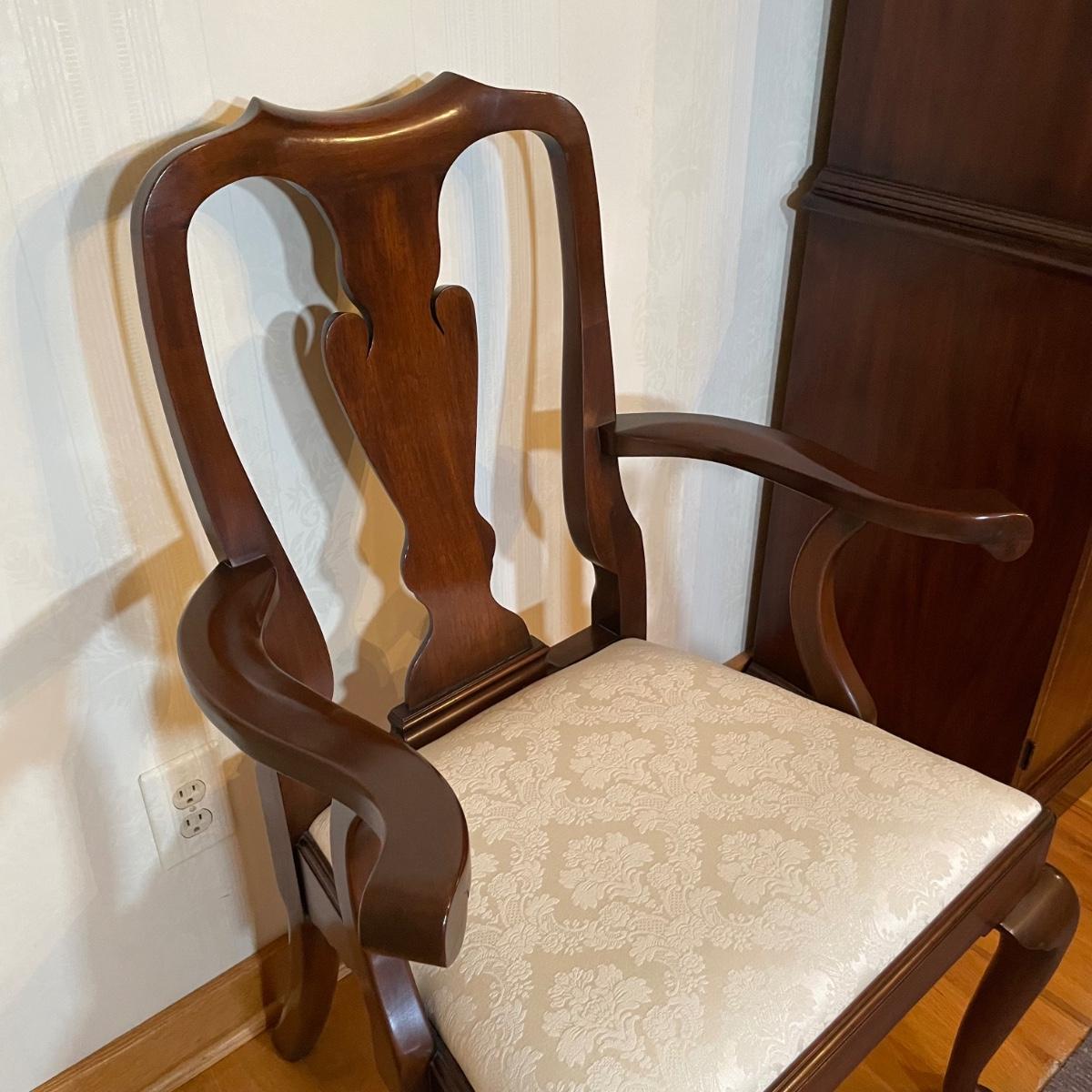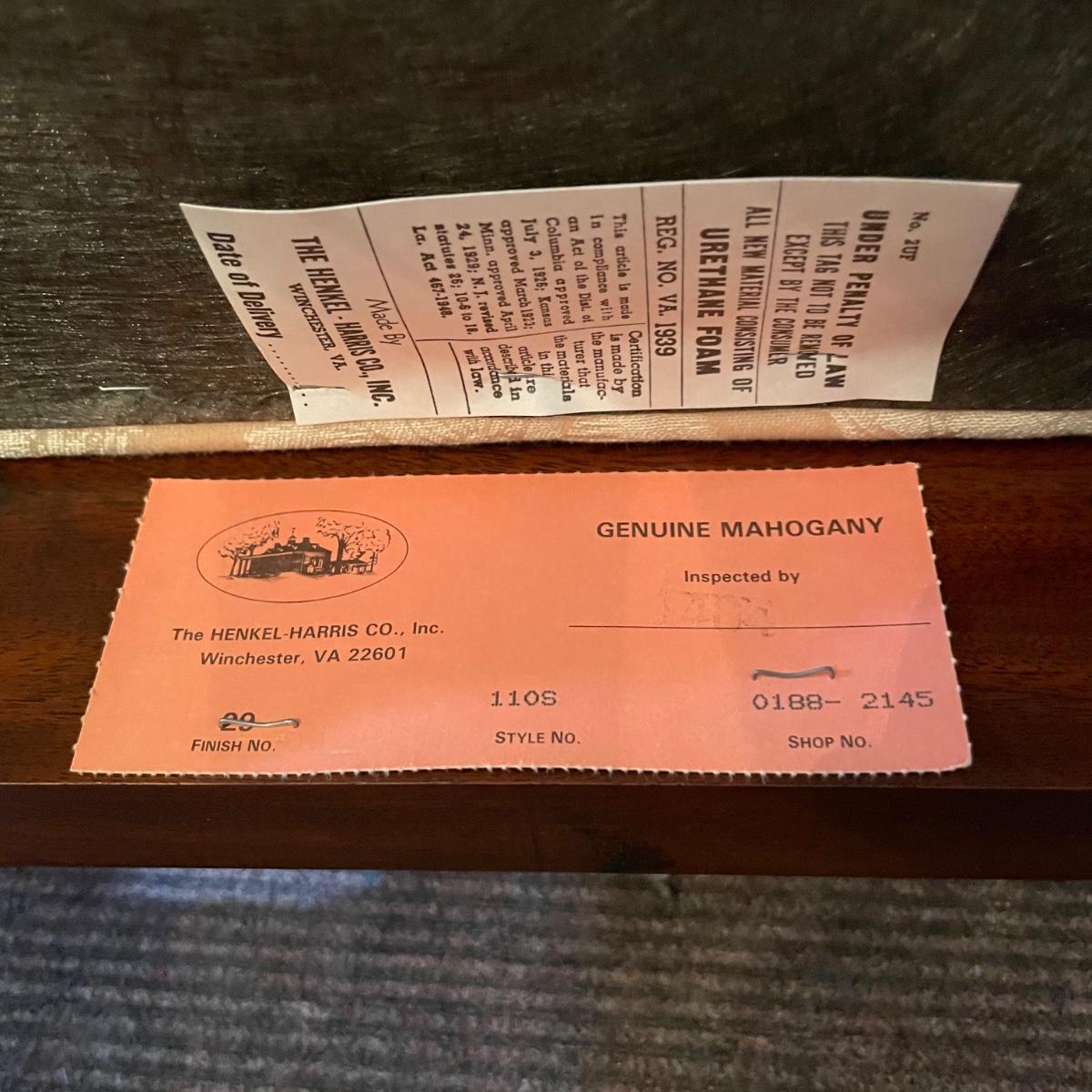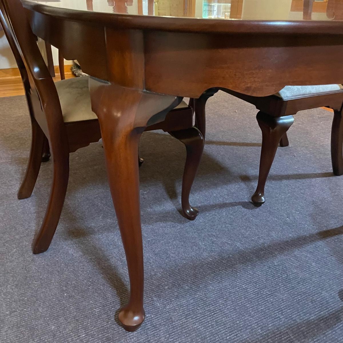 LOT 77D: Henkel & Harris Mahogany Dining Room Table w/ Pads, Extra Leaves & Chairs