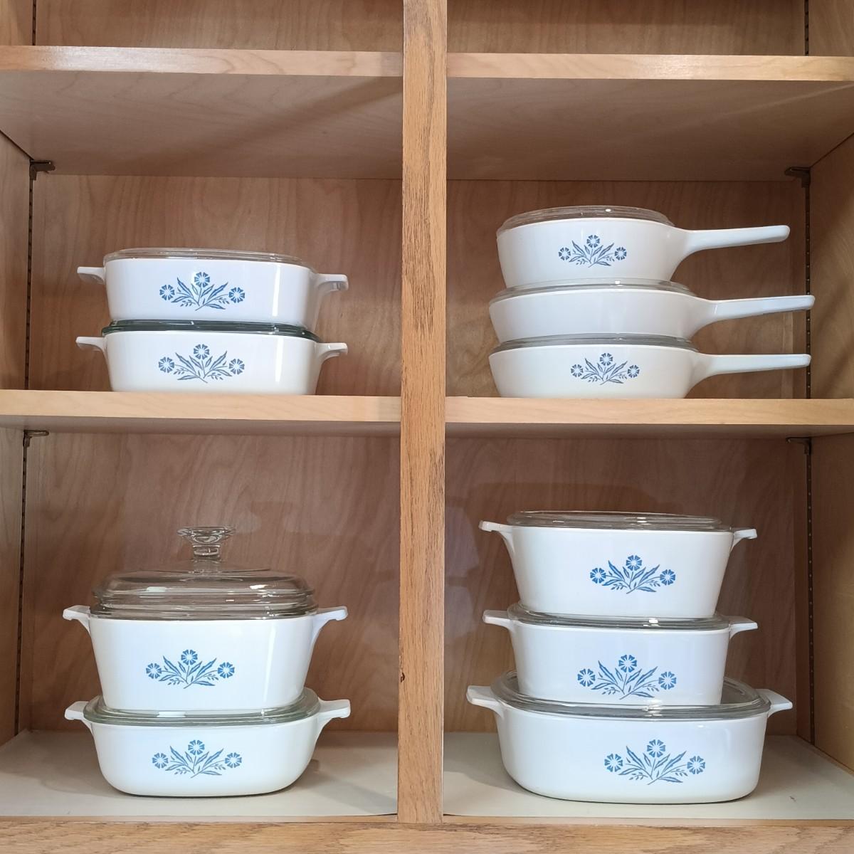 LOT 93K: Set of 10 Corning Ware Blue Cornflower Dishes w/ Glass Lids