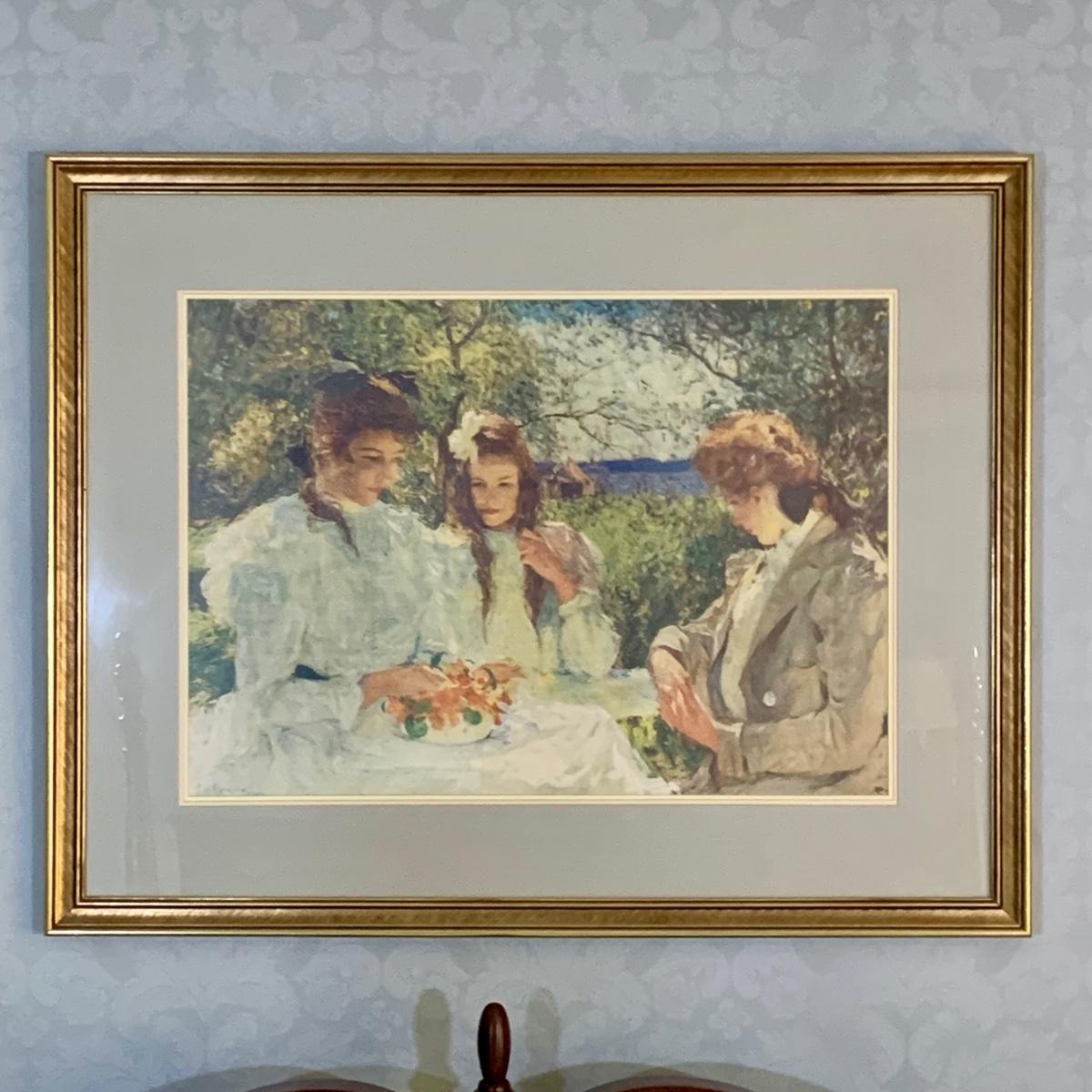 LOT 126 X: "Portrait Of My Daughters" Print by Frank W. Benson & "Woman With A Parasol" or "The Stroll" Print by Claude Monet