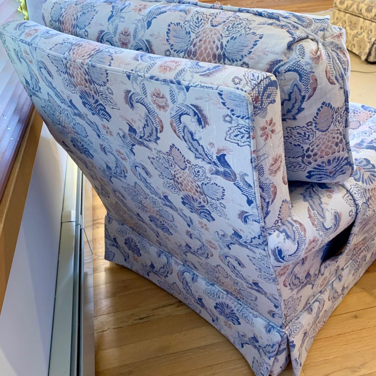 LOT 135 F: "Hickory Chair" Skirted Lounge Chairs w/ Skirted Ottoman