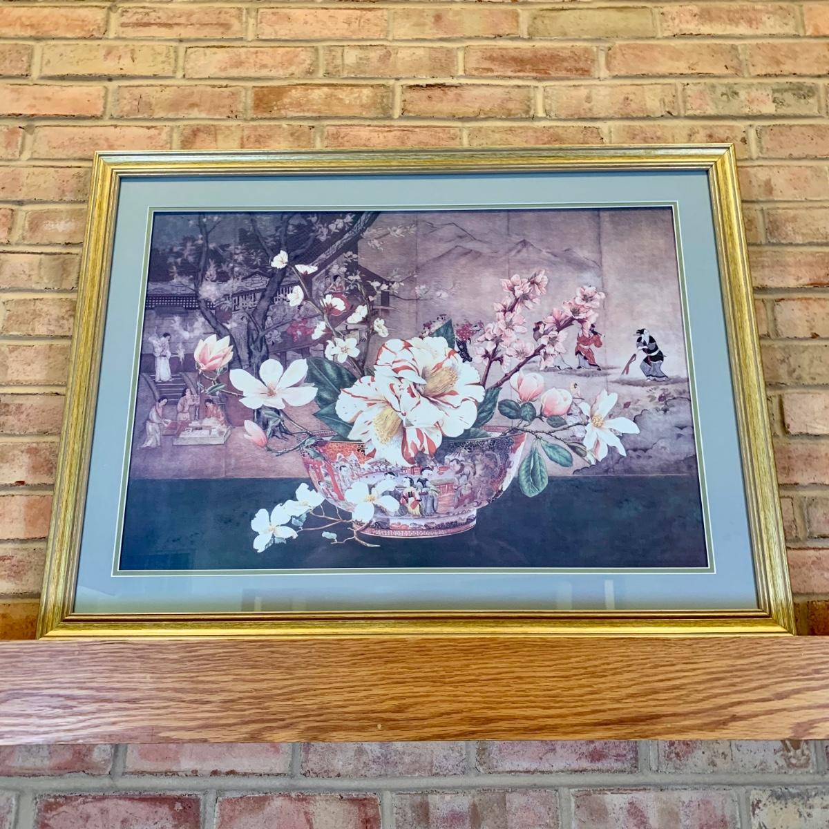 LOT 137 F: Floral Collection: "The Chinese Bowl" Print by Dimitry Alexandroff, Chesterseal Lifesake Rose Music Box, & More