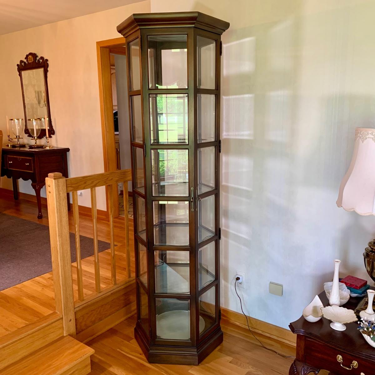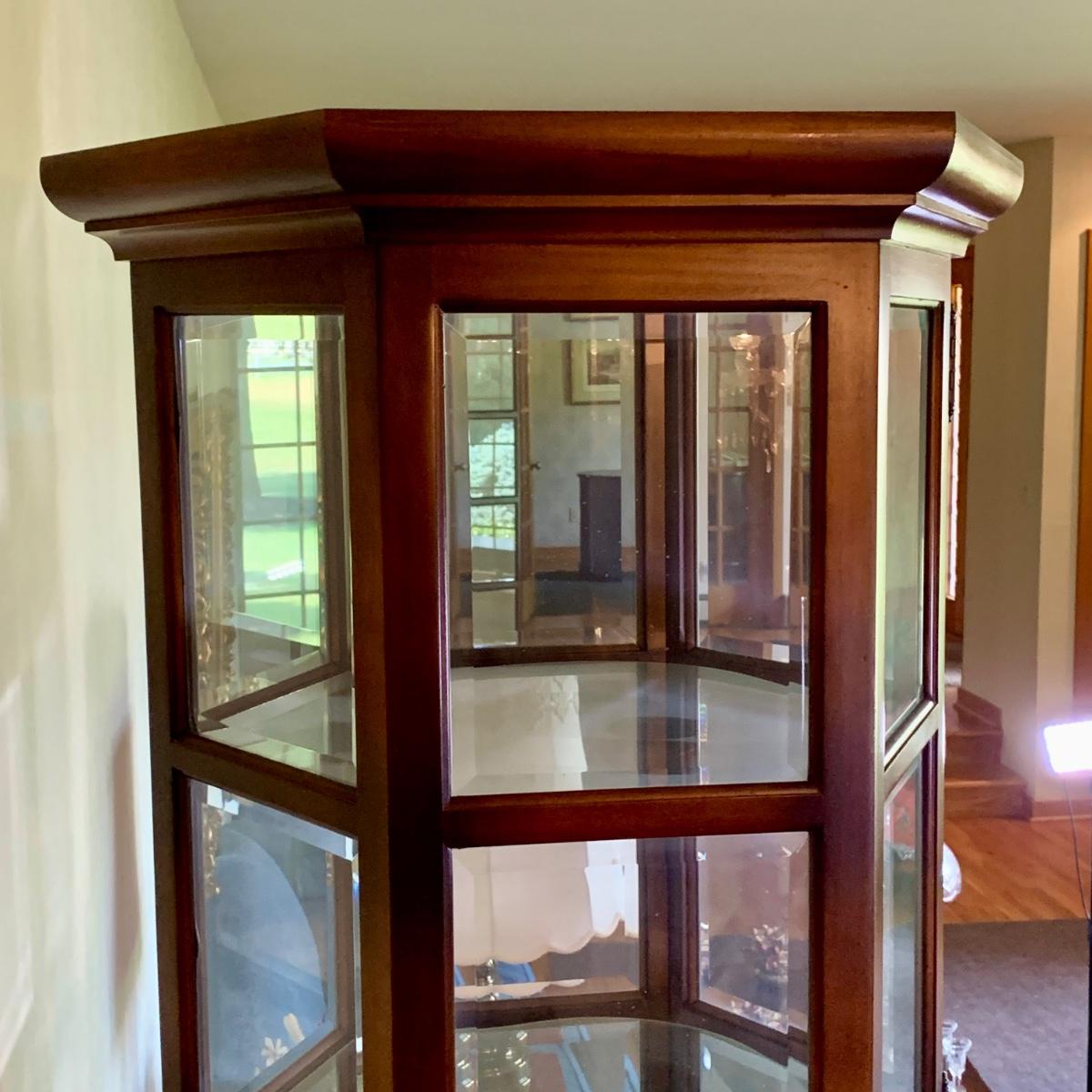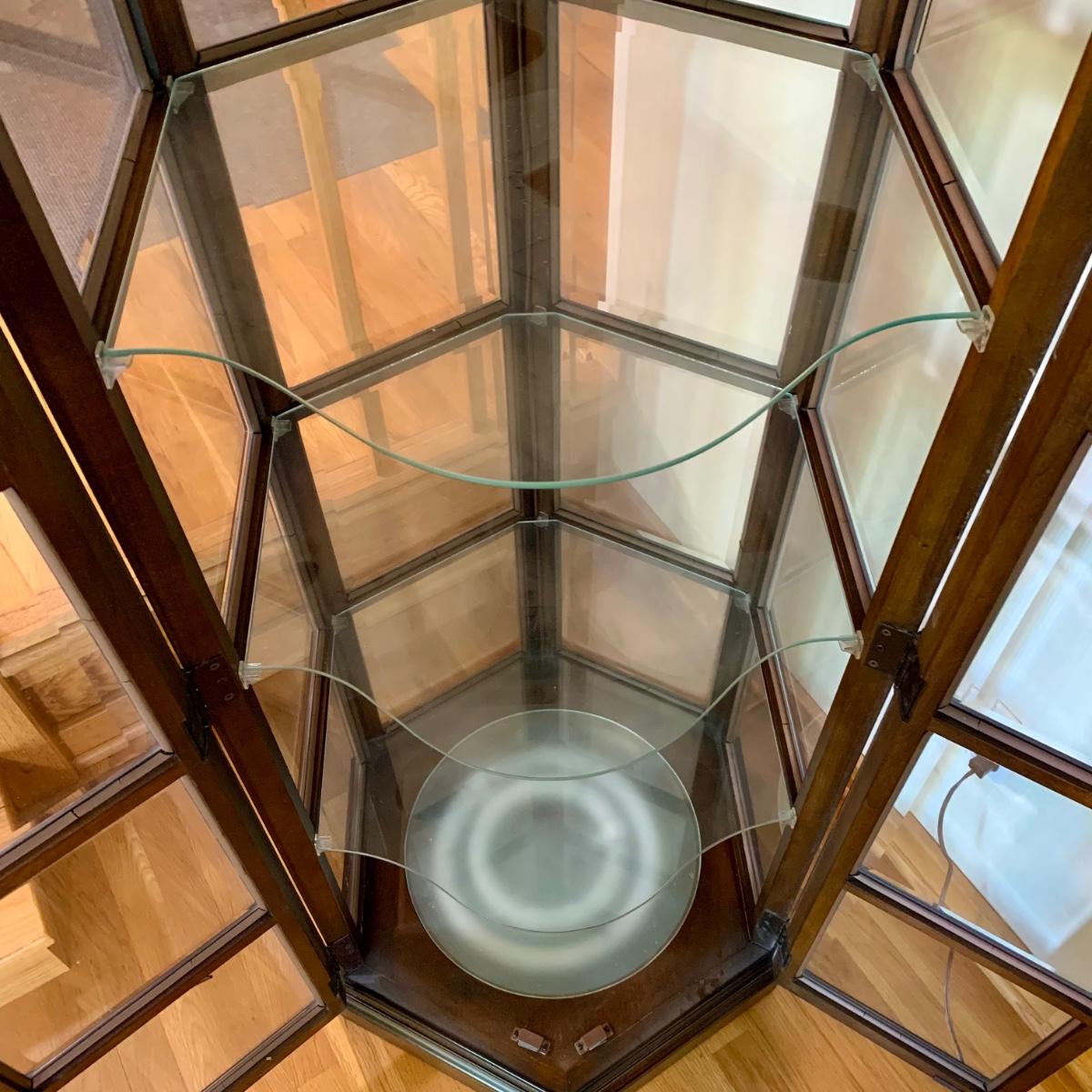 LOT 141 D: Vintage Illuminated Walnut Hexagonal Curio Cabinet