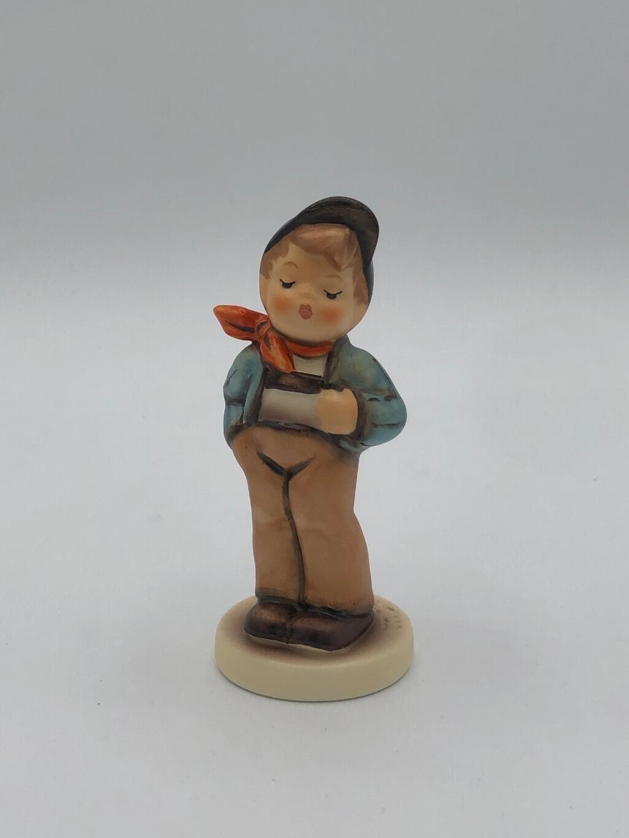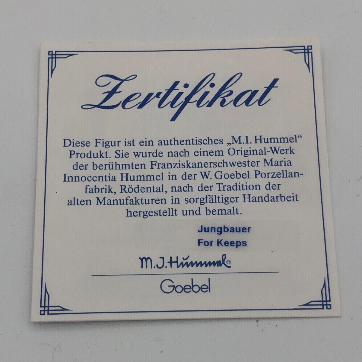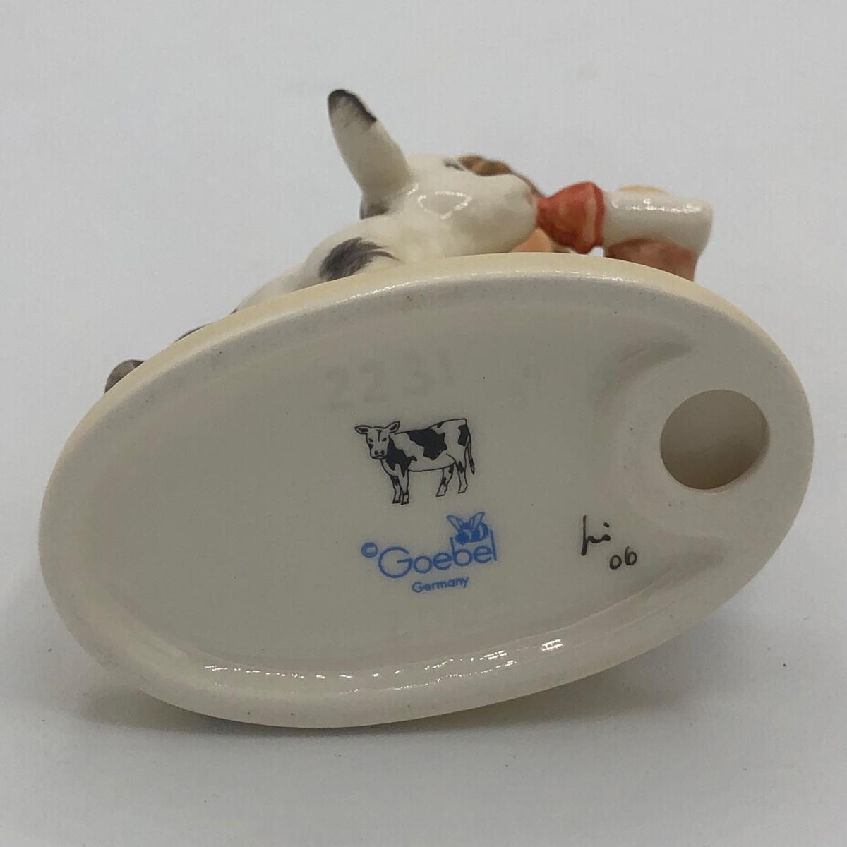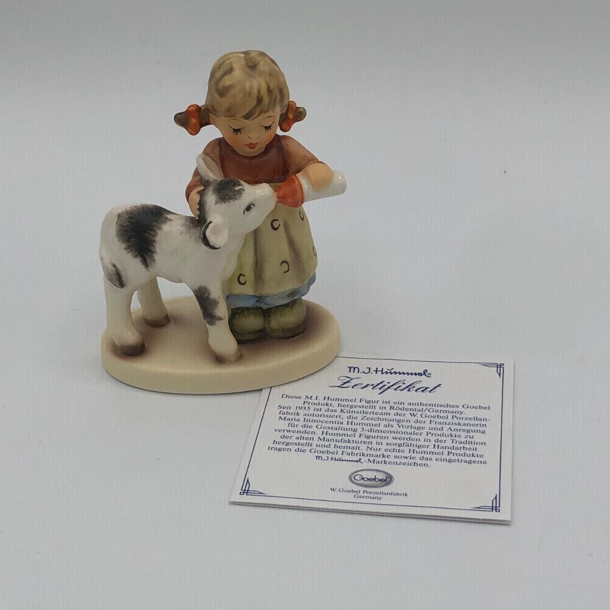 LOT 168K: 3.75" Goebel M.I. Hummel Figurines - 2006 "Friendly Feeding" 2231, M.I. Hummel Club - 1994/95 "For Keeps" 630, 1999/2000 "Pigtails" 2052 & 1992/93 "Lucky Fellow" 560