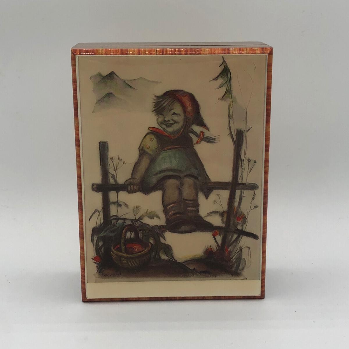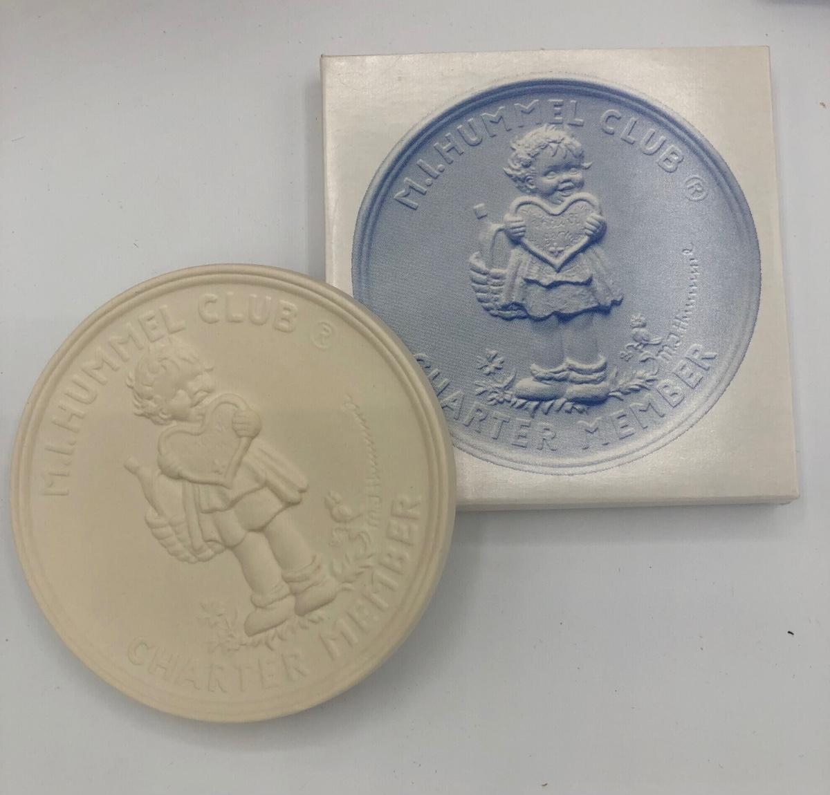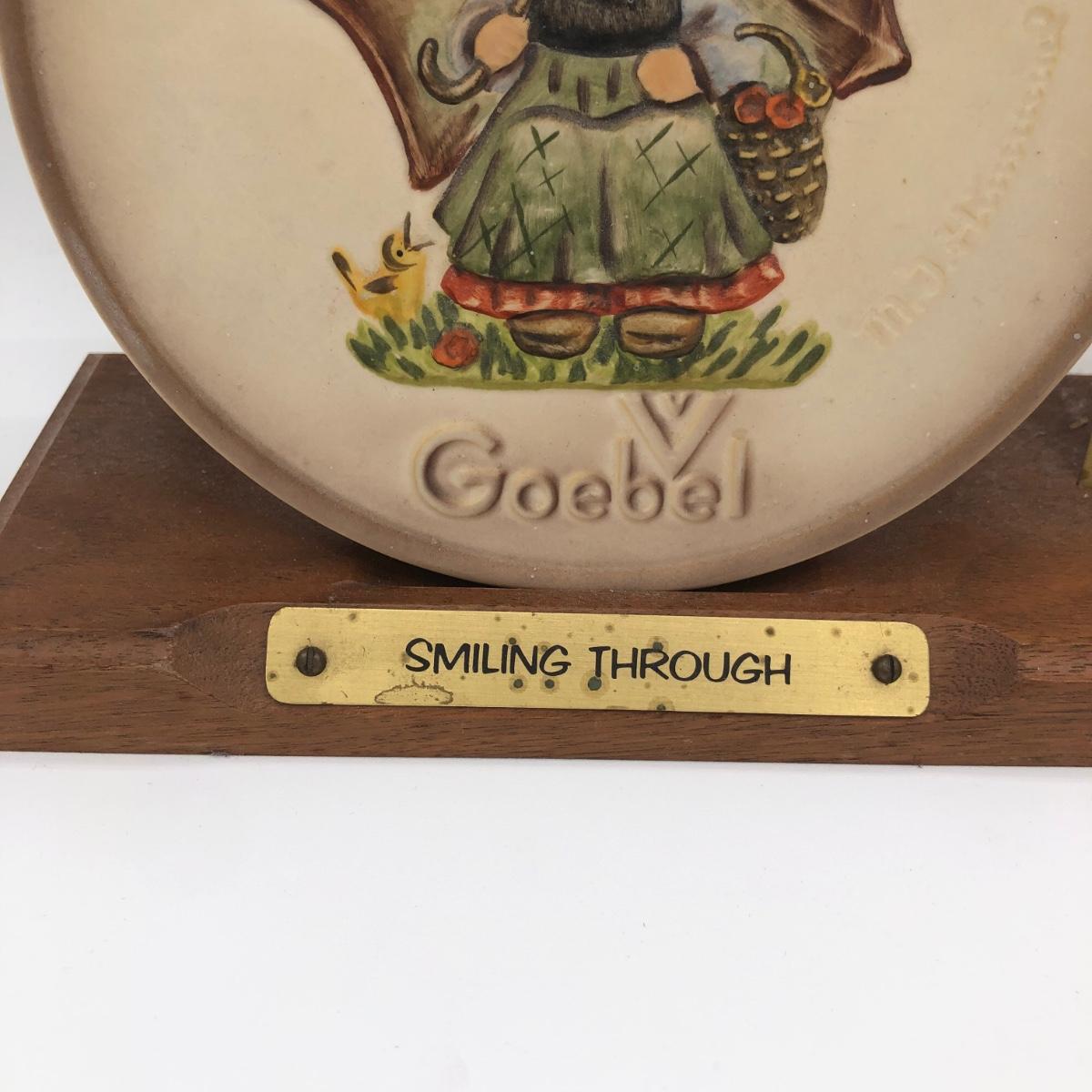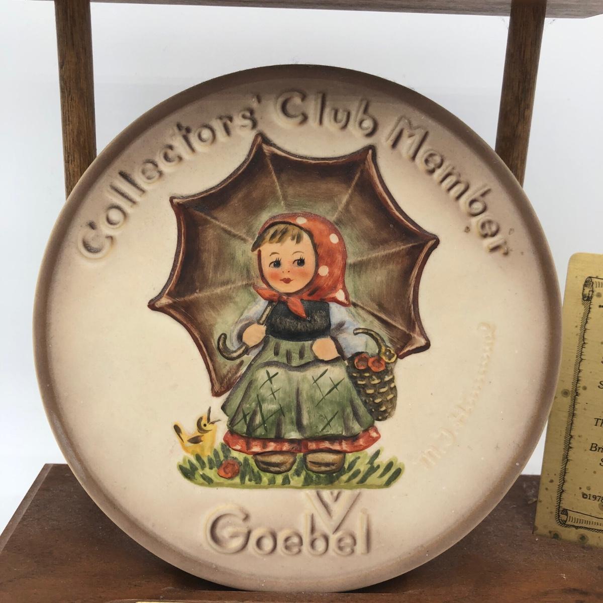 LOT 177K: Vintage Reuge Hummel Music Box w/ Collector's Club Merchandise - Charter Member Heart Ornament, Porcelain Member Coins w/ Box & 1978 "Smiling Through" Plate w/ Liberty Gifts Stand & Plaque
