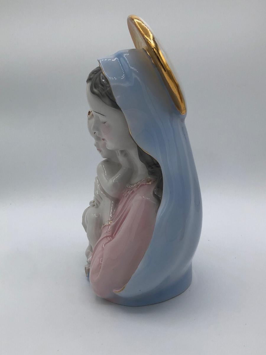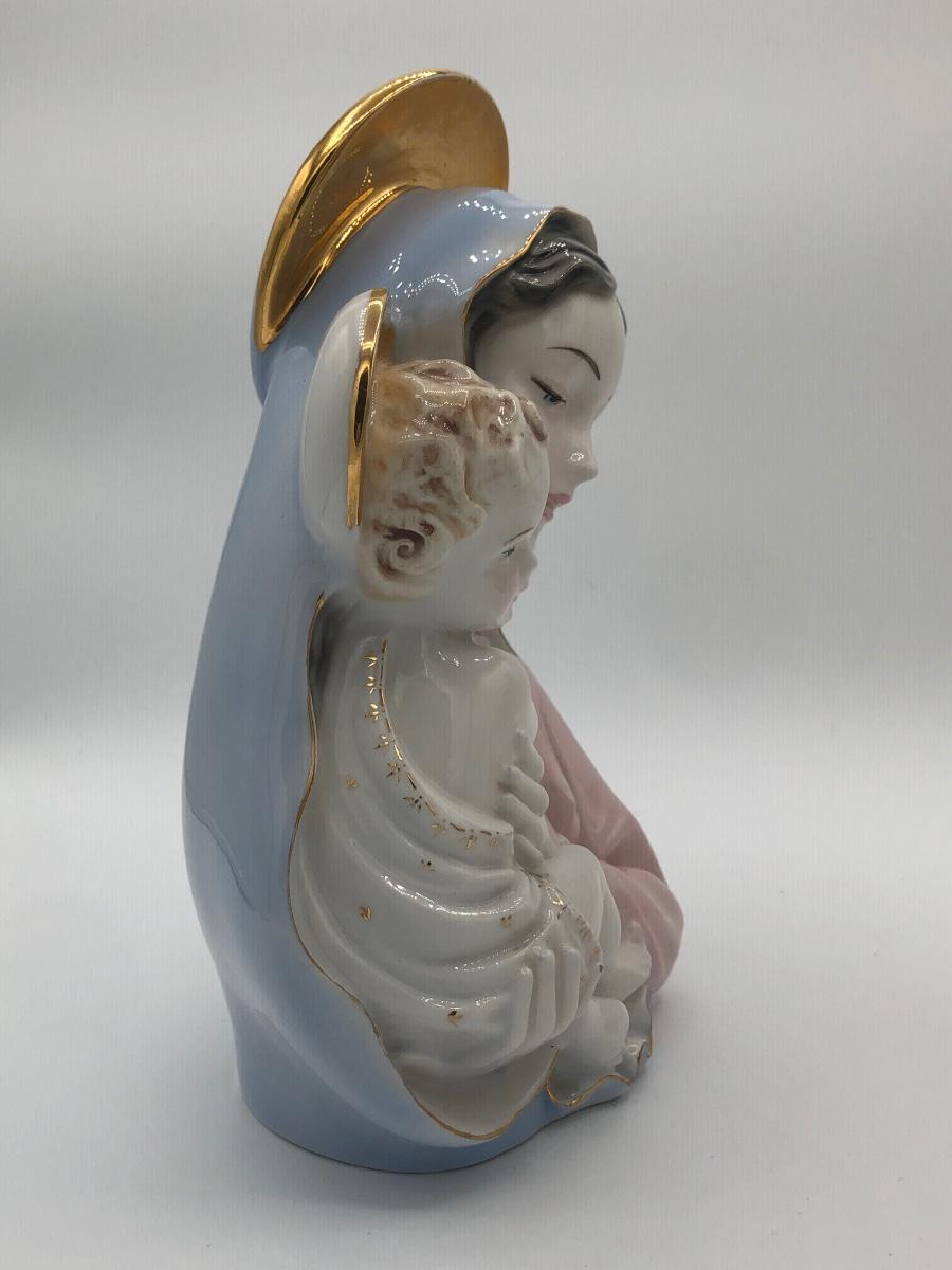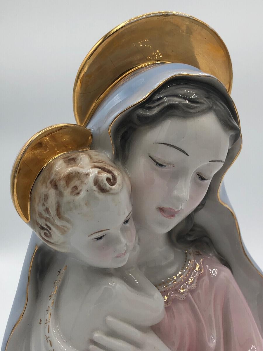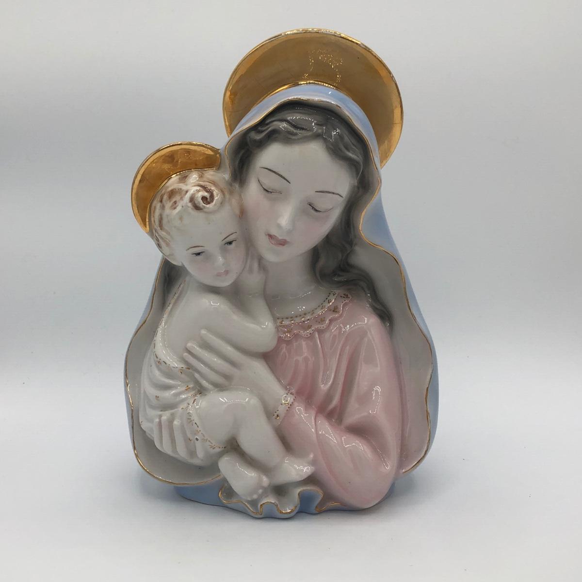 LOT 184K: Vintage Religious Decor - Italian Madonna and Child Bust Statue, Wooden Full body Madonna & Small Vial of Holy Water
