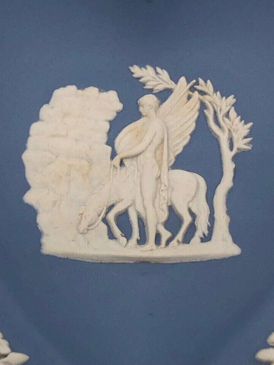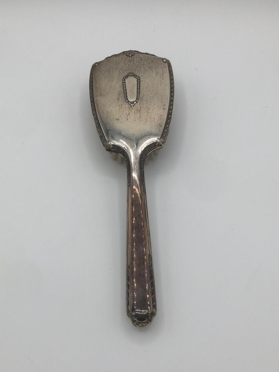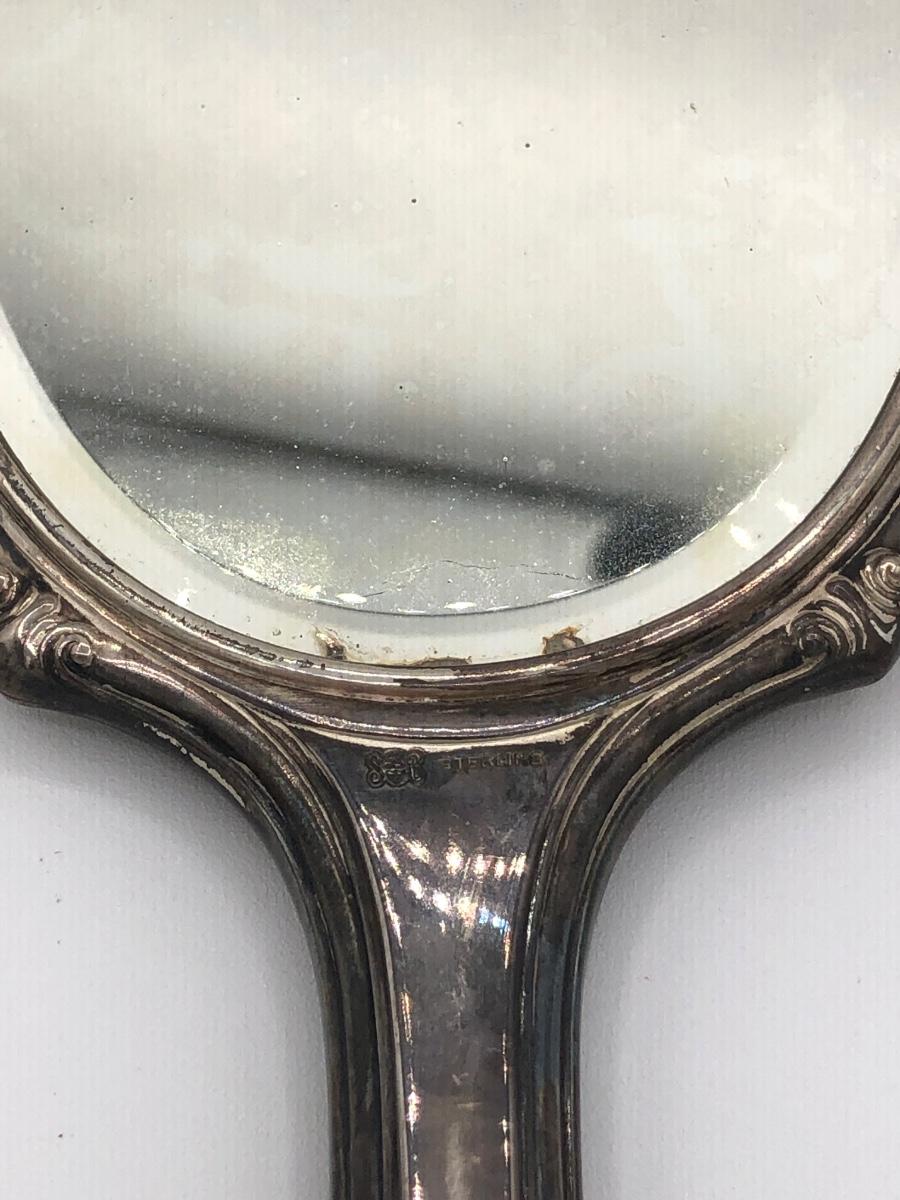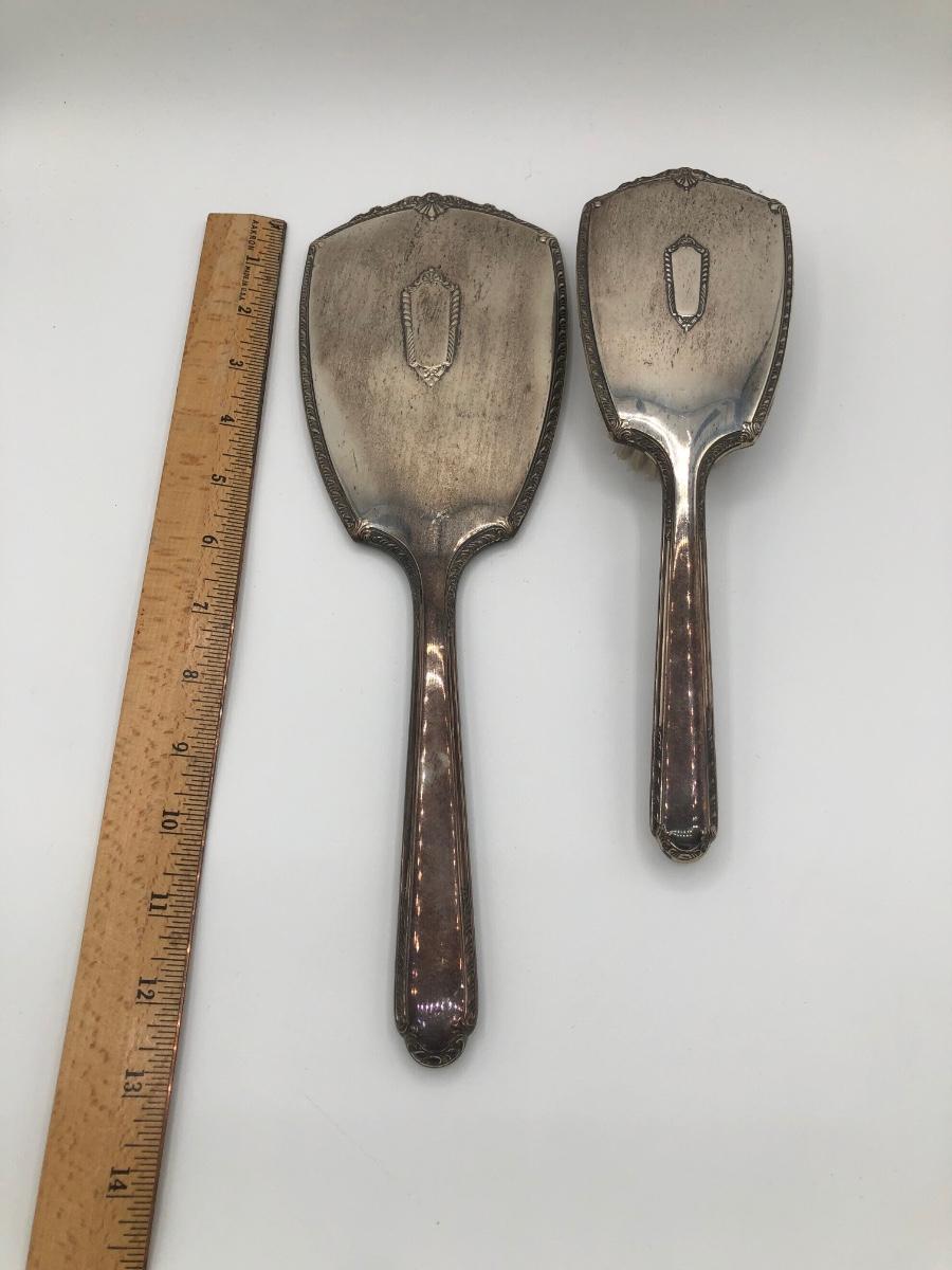 LOT 187K: Antique / Vintage S&B Sterling Silver 2 Piece Vanity Set w/ Vintage Blue Wedgewood Heart Trinket Dish