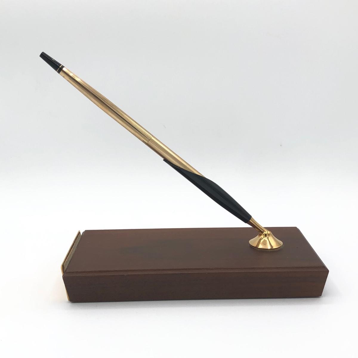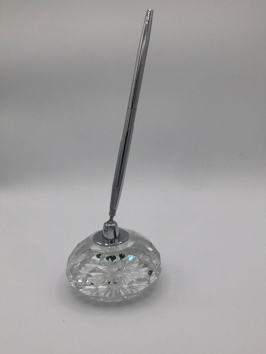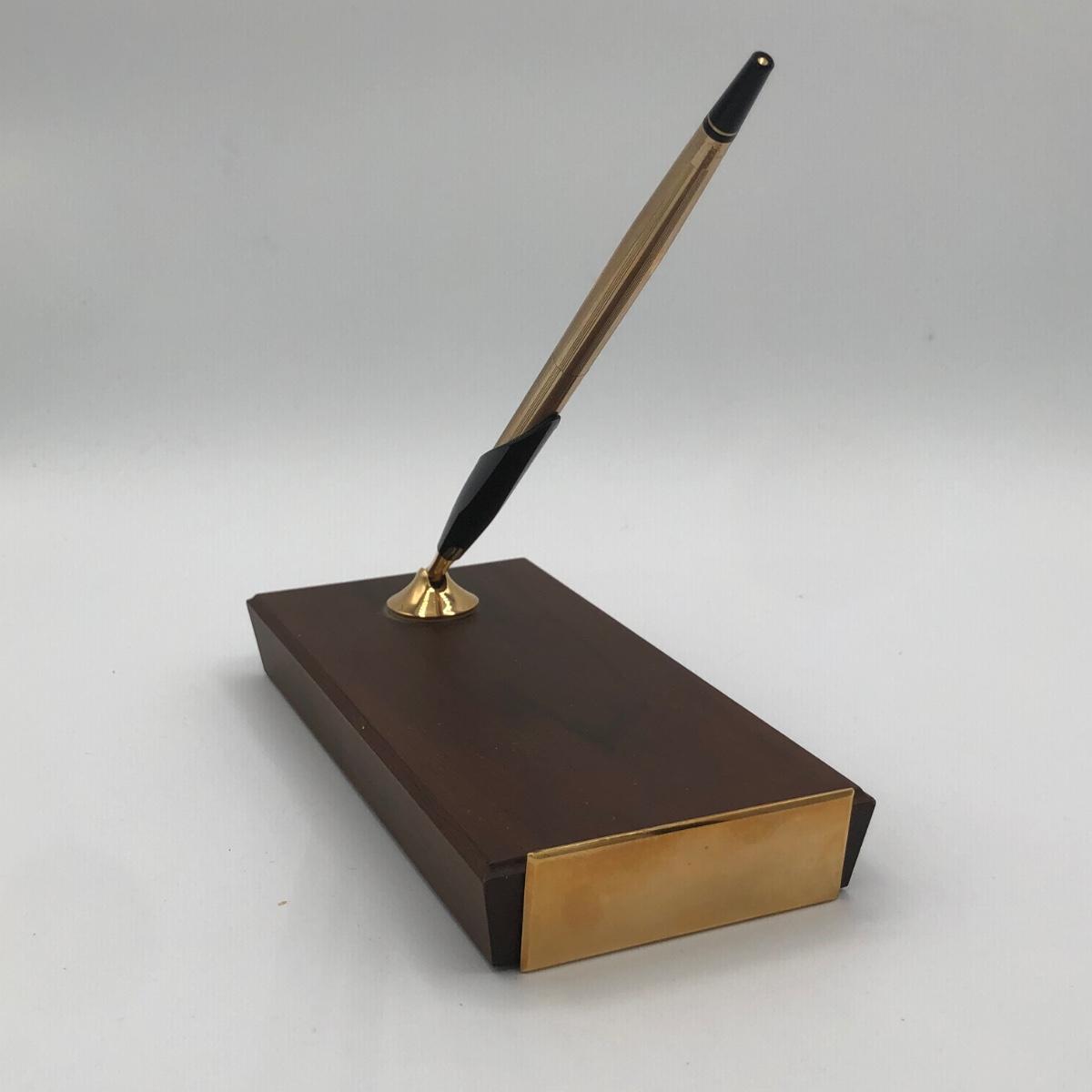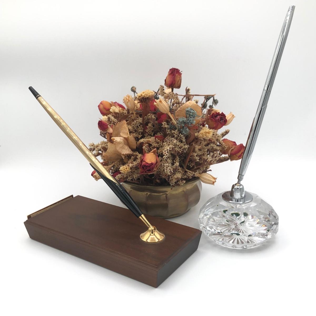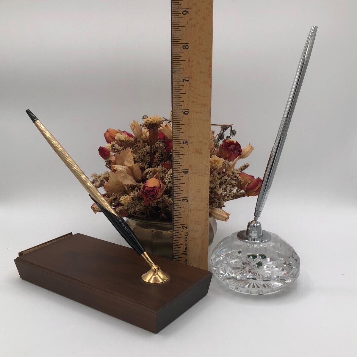 LOT 188K: Fancy Desk Decor - Waterford Crystal Pen Holder, Small Brass Vase & Sleek Wooden Pen Holder