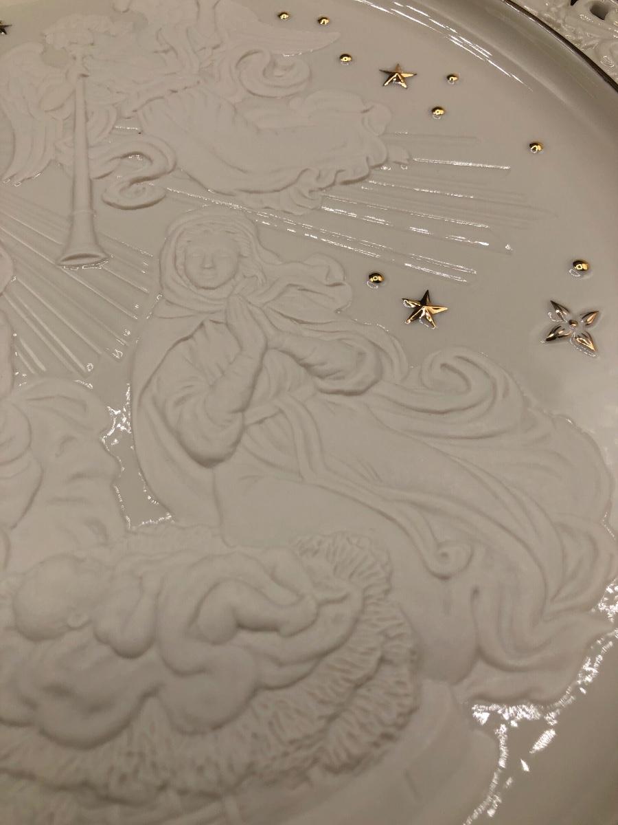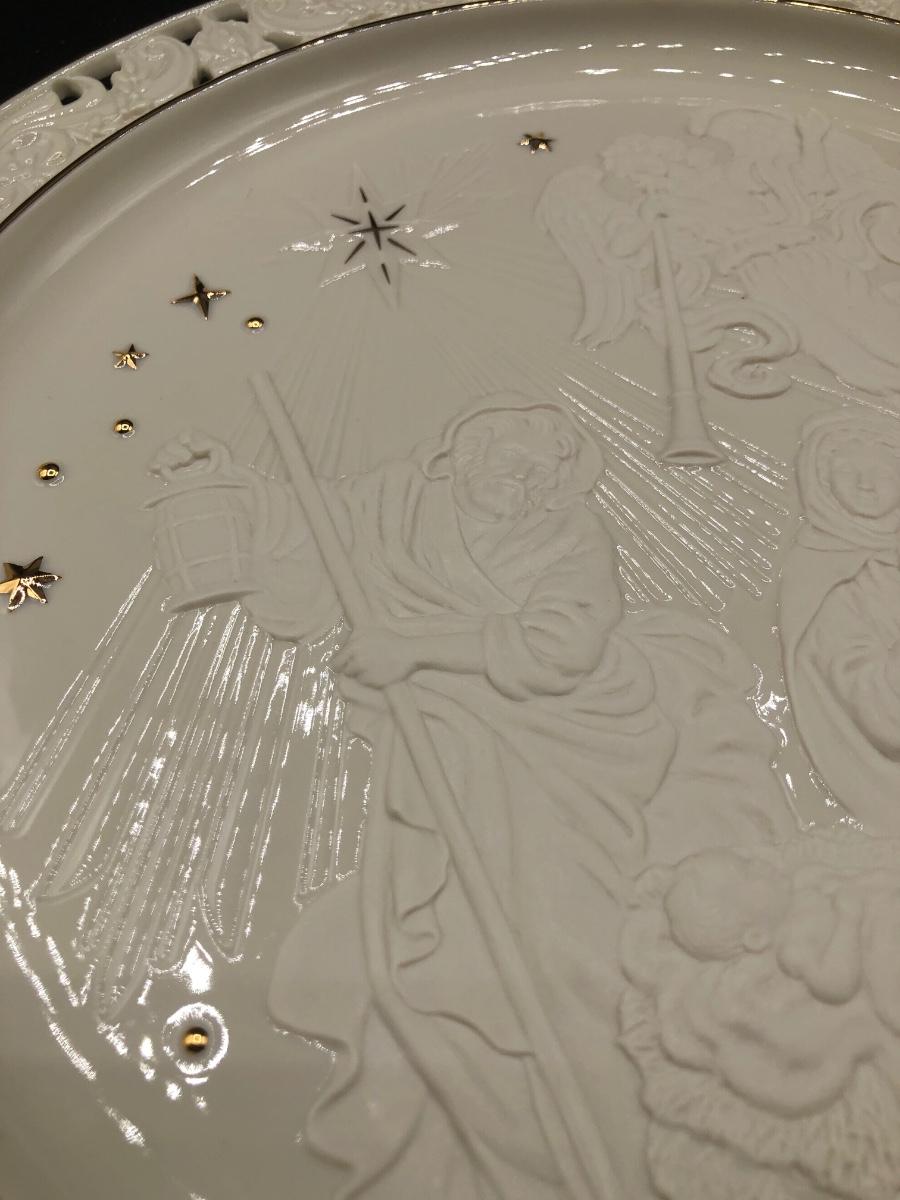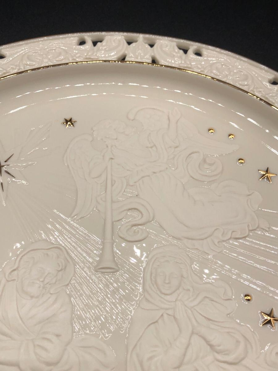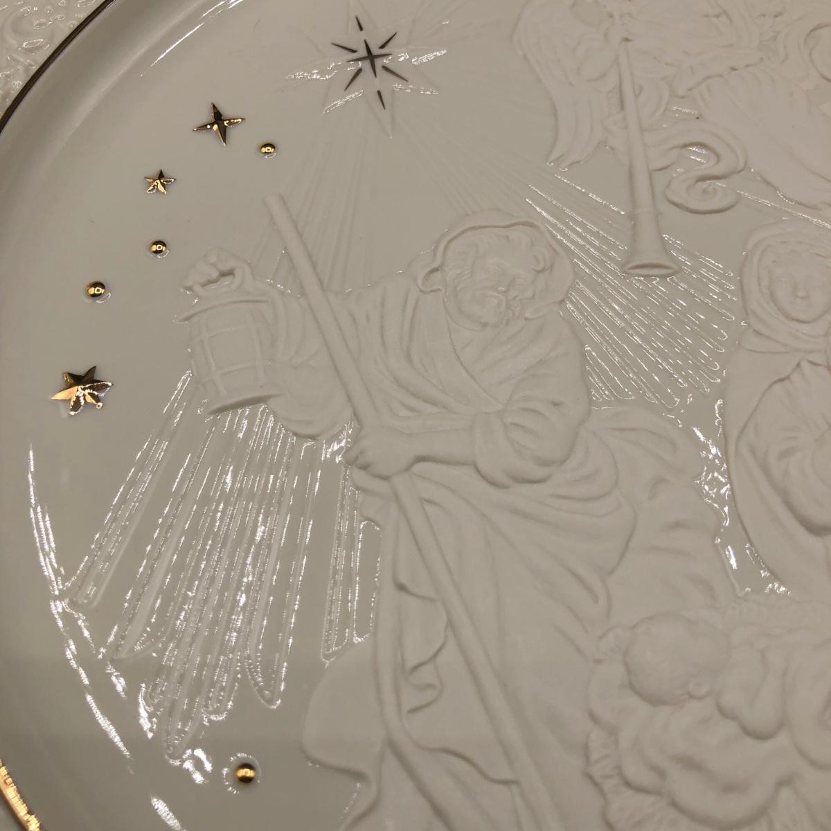 LOT 191K: Reed & Barton Sterling Silver 1998 Annual Cross Ornament, Lenox 15th Century Madonna and Child Ornament in Box, Lenox Nativity Story Birth of Jesus Plate w/ Box & More