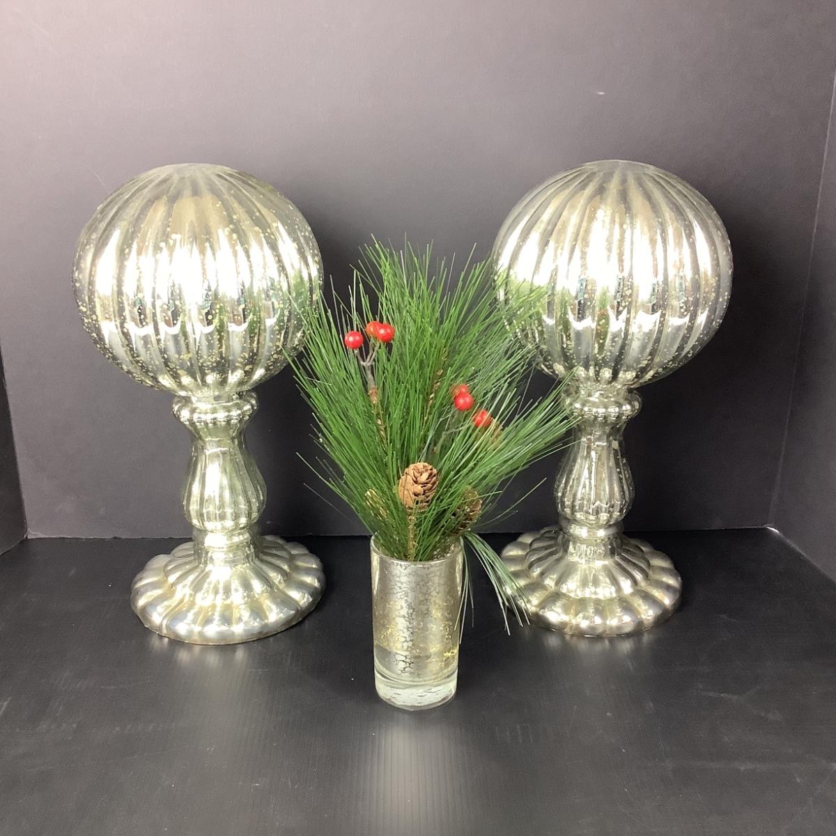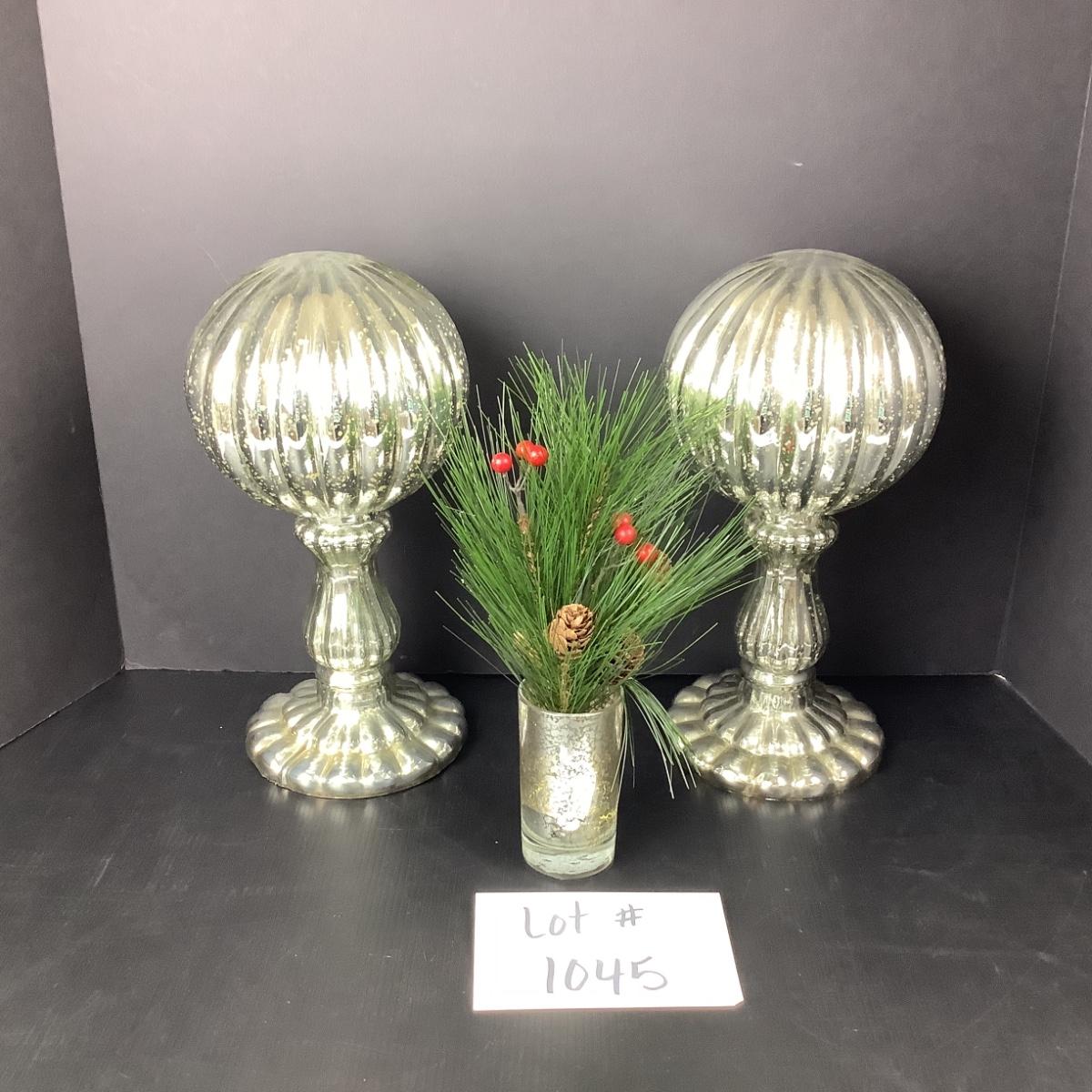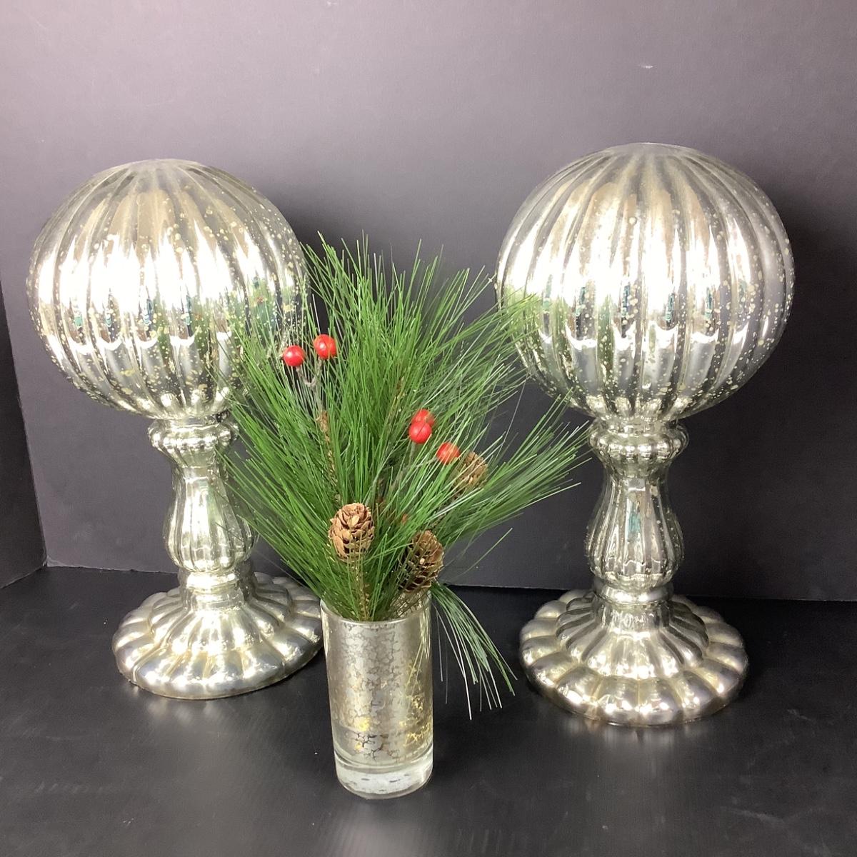 Lot # 1045 Pair of Mercury Glass Mantel Decor & Mercury Glass, Glass Decor