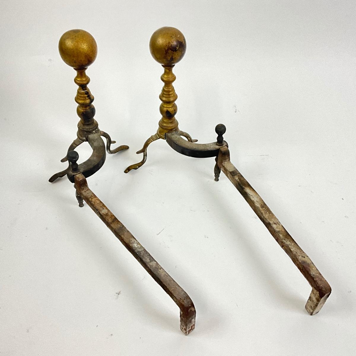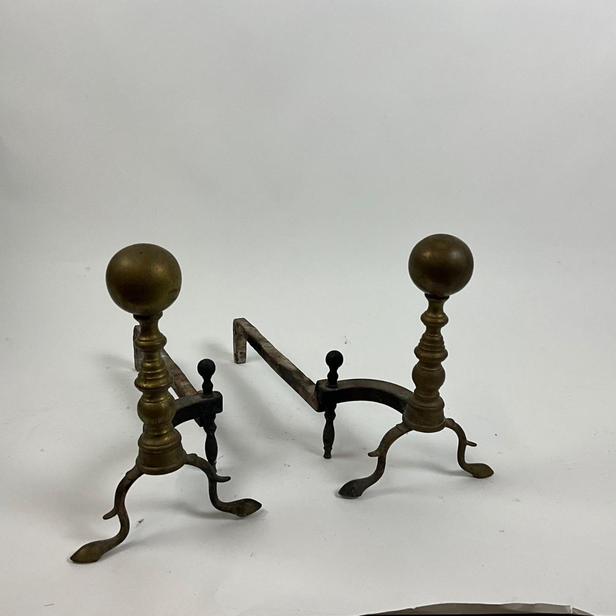Lot 1045 Pair of Vintage Cast Iron Footed Ball Andirons