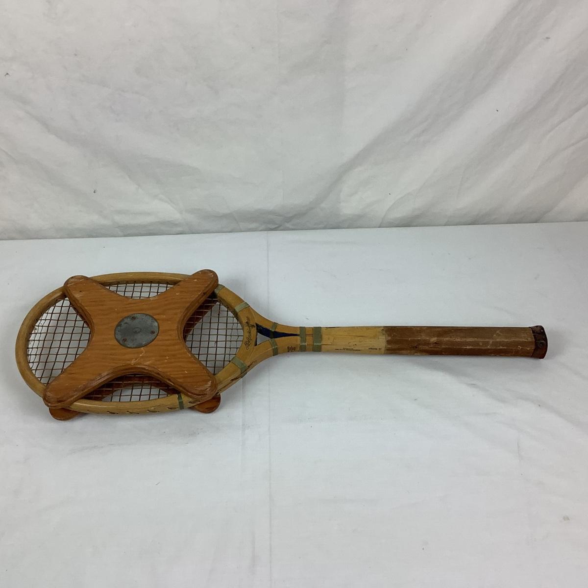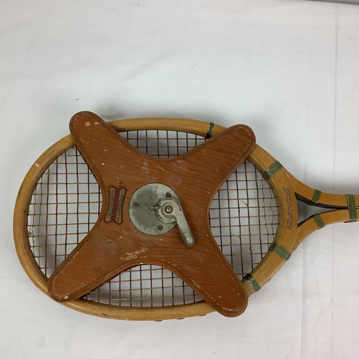 Lot 1045  Pair of Vintage Wooden Game Sets & Vintage J. Hunter Smith Aristocrat Tennis Racket
