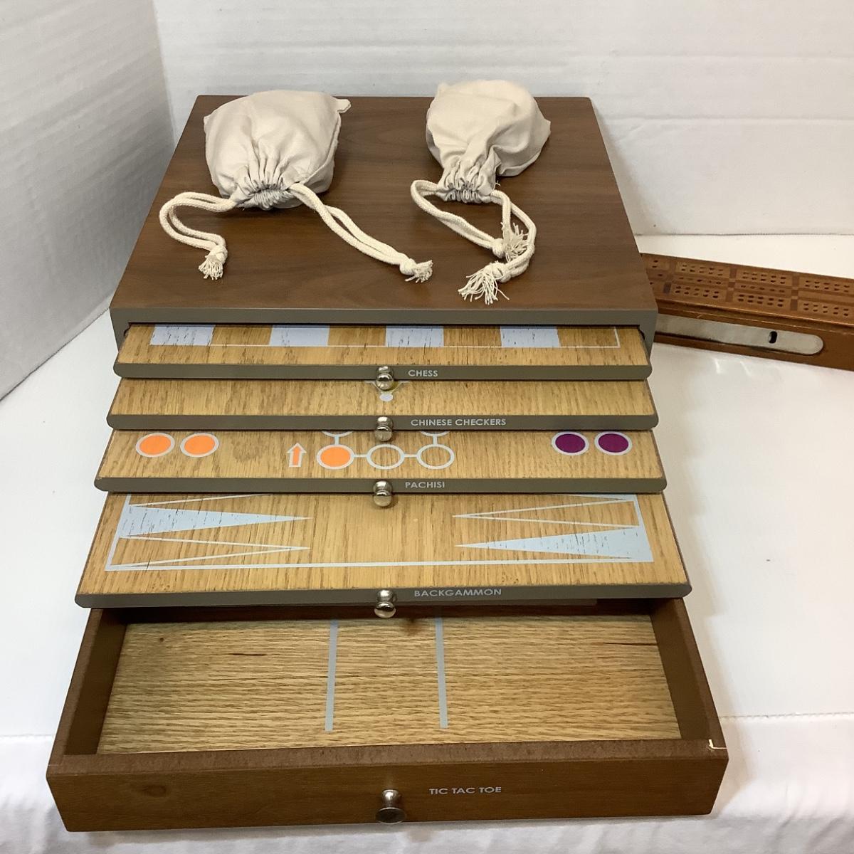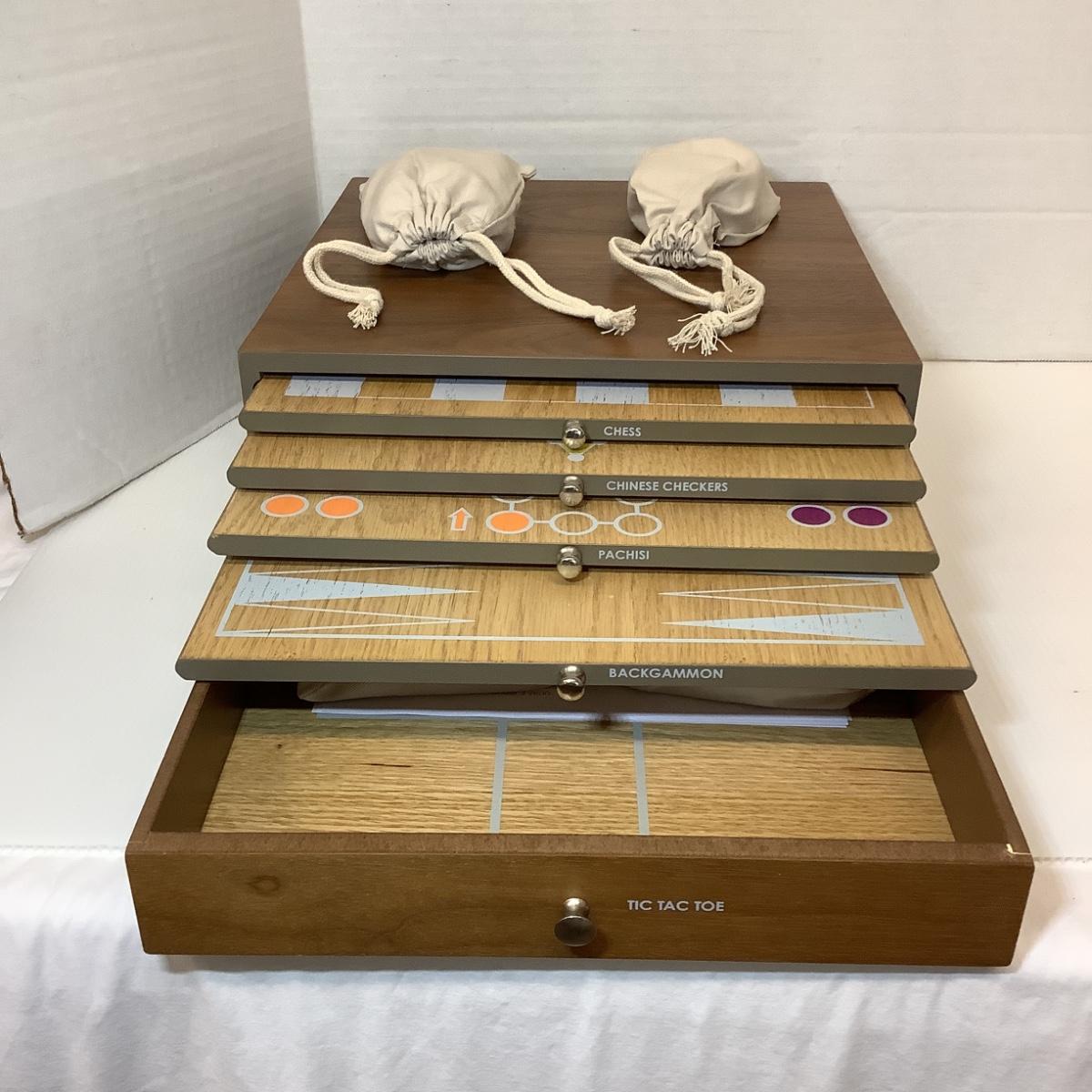 1 ) Pull out Boards includes Chess, Chinese Checkers, Pachisi, Backgammon, Tic Tac Toe