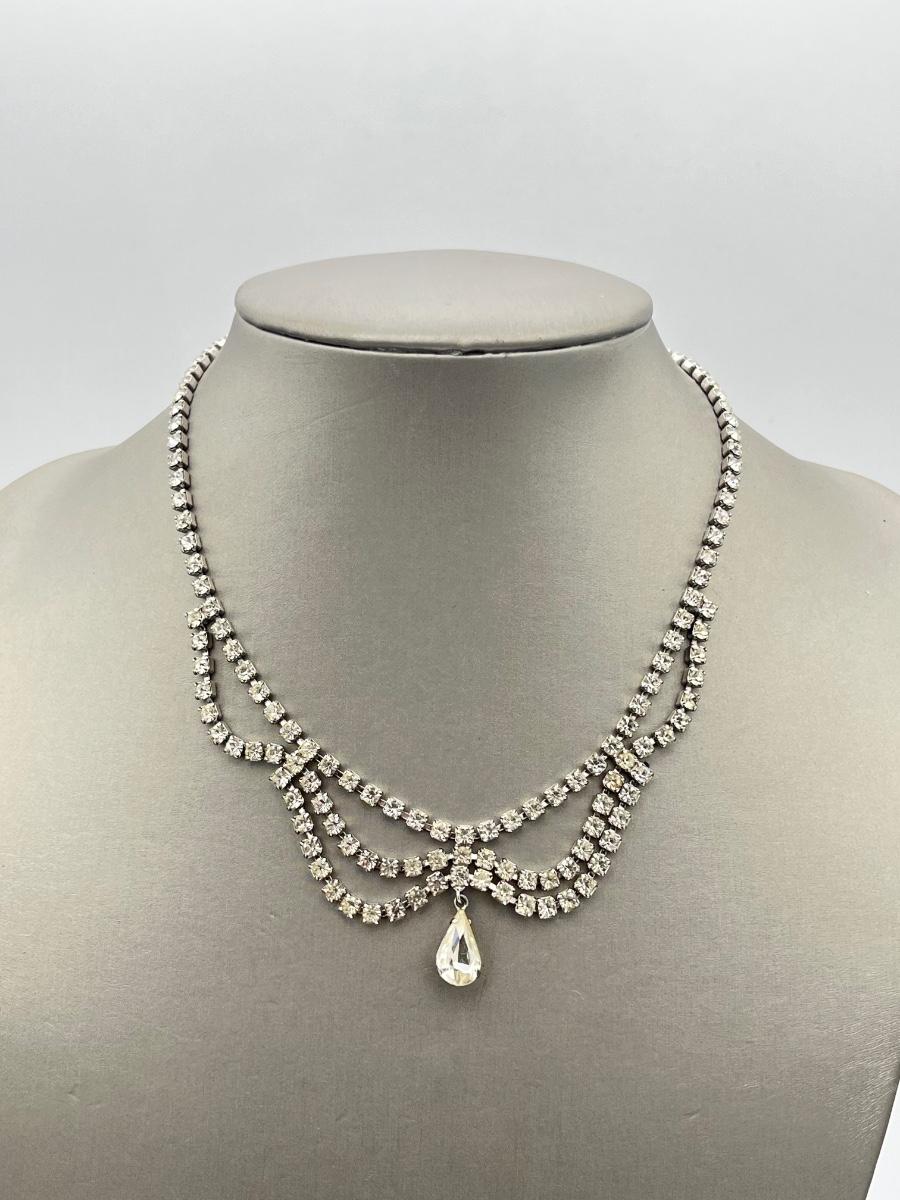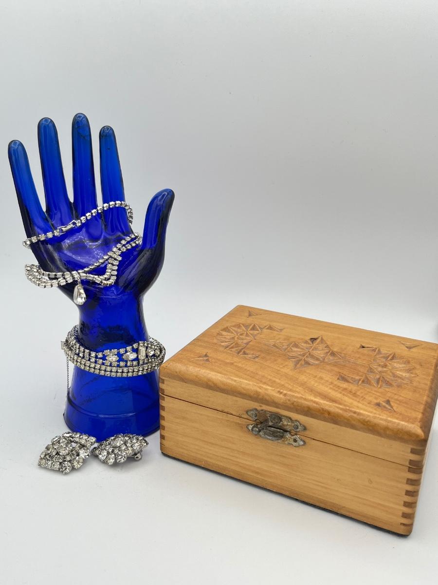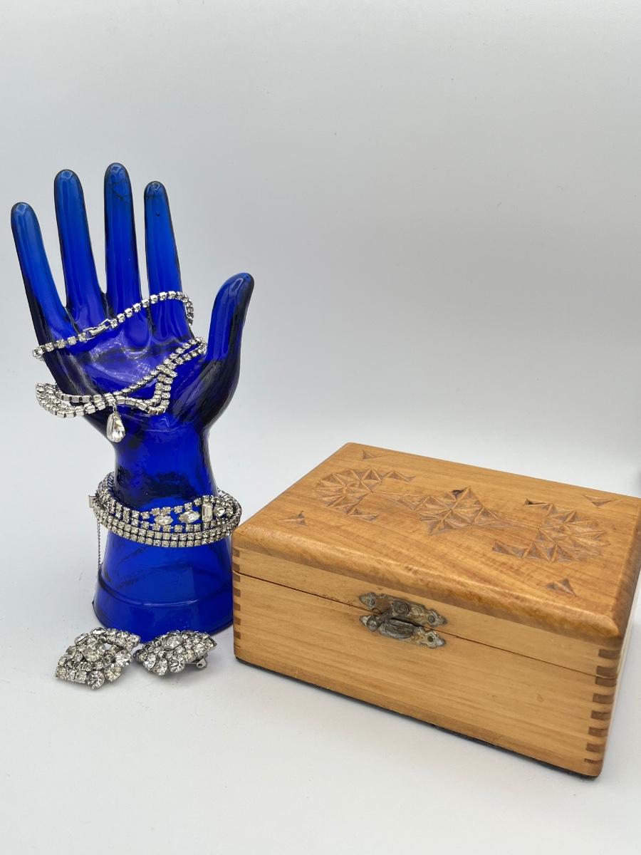 LOT 8: Vintage Rhinestone Lot in Felt Lined Box - Necklace 15” & Bracelet 7”