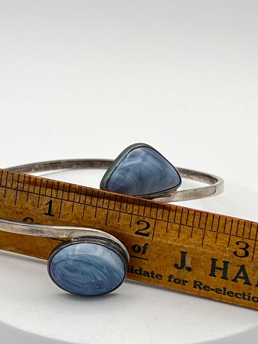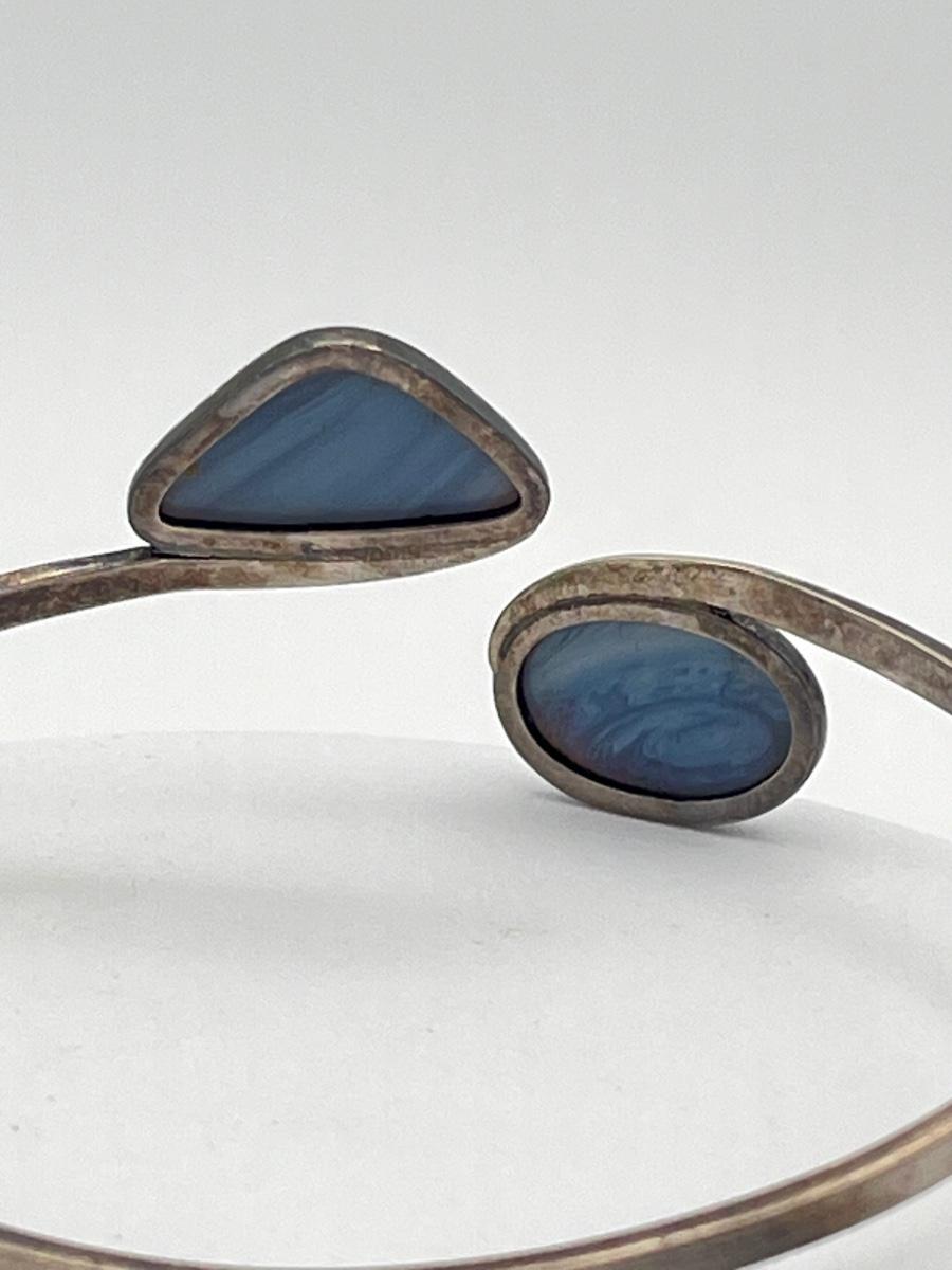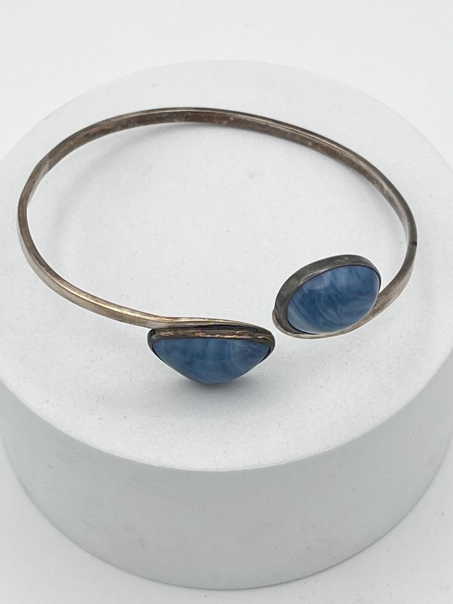 LOT 13: Vintage Silver Cuff Bracelet w/ Blue Gemstones