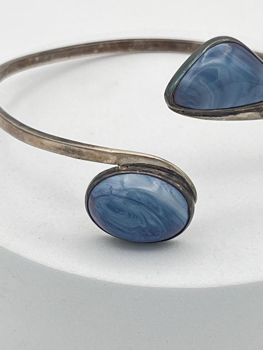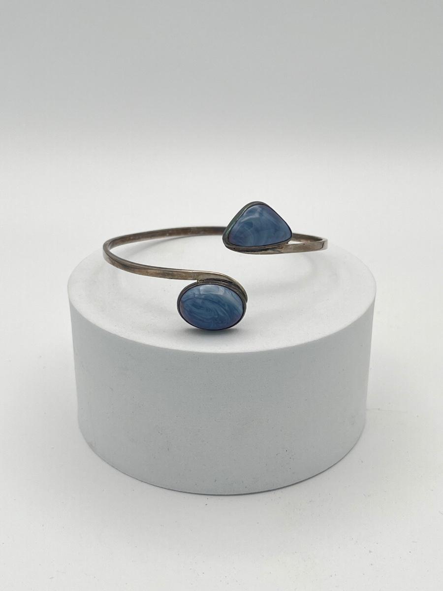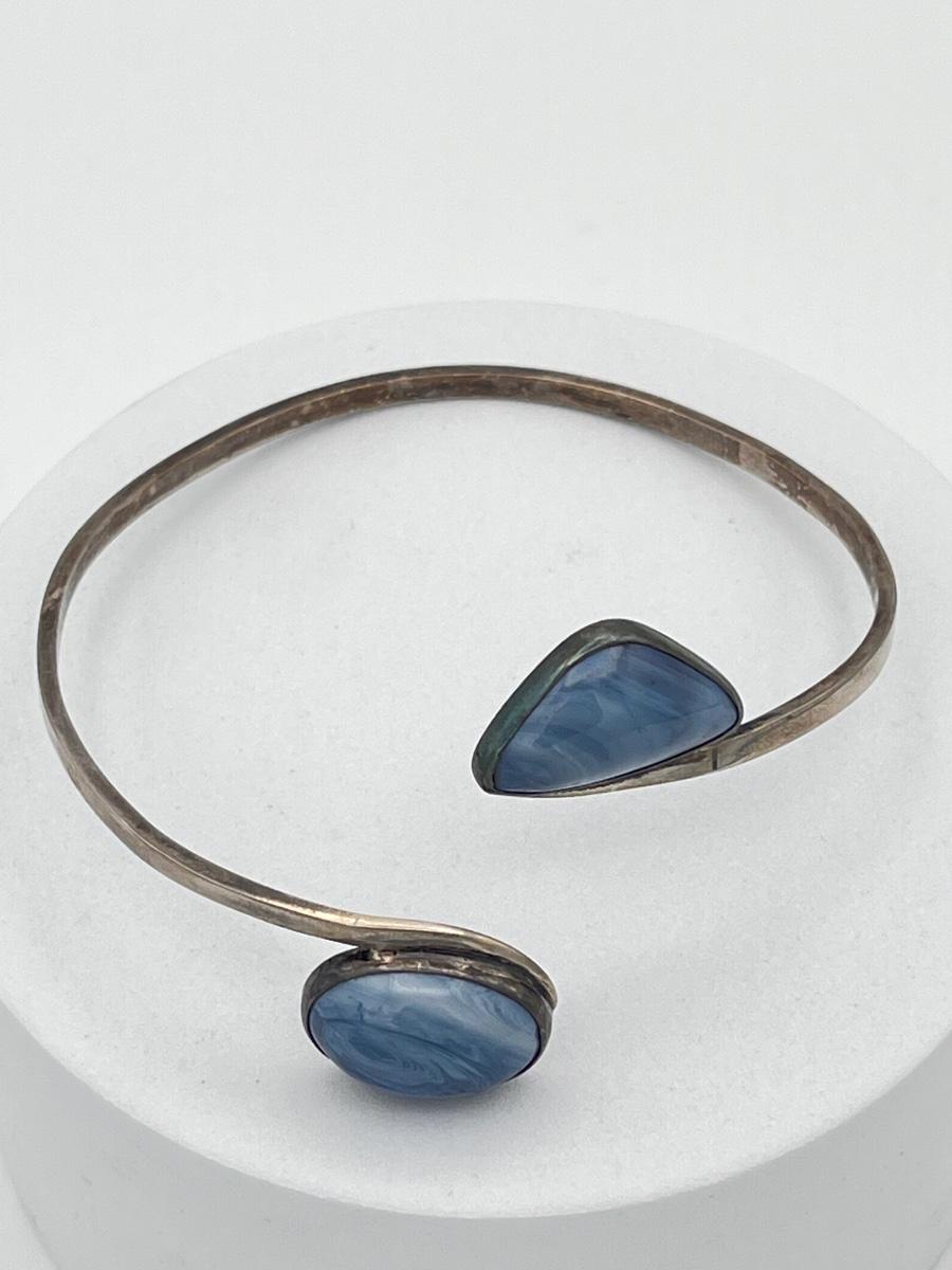 LOT 13: Vintage Silver Cuff Bracelet w/ Blue Gemstones