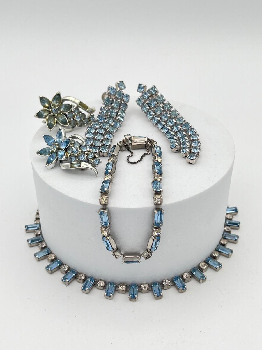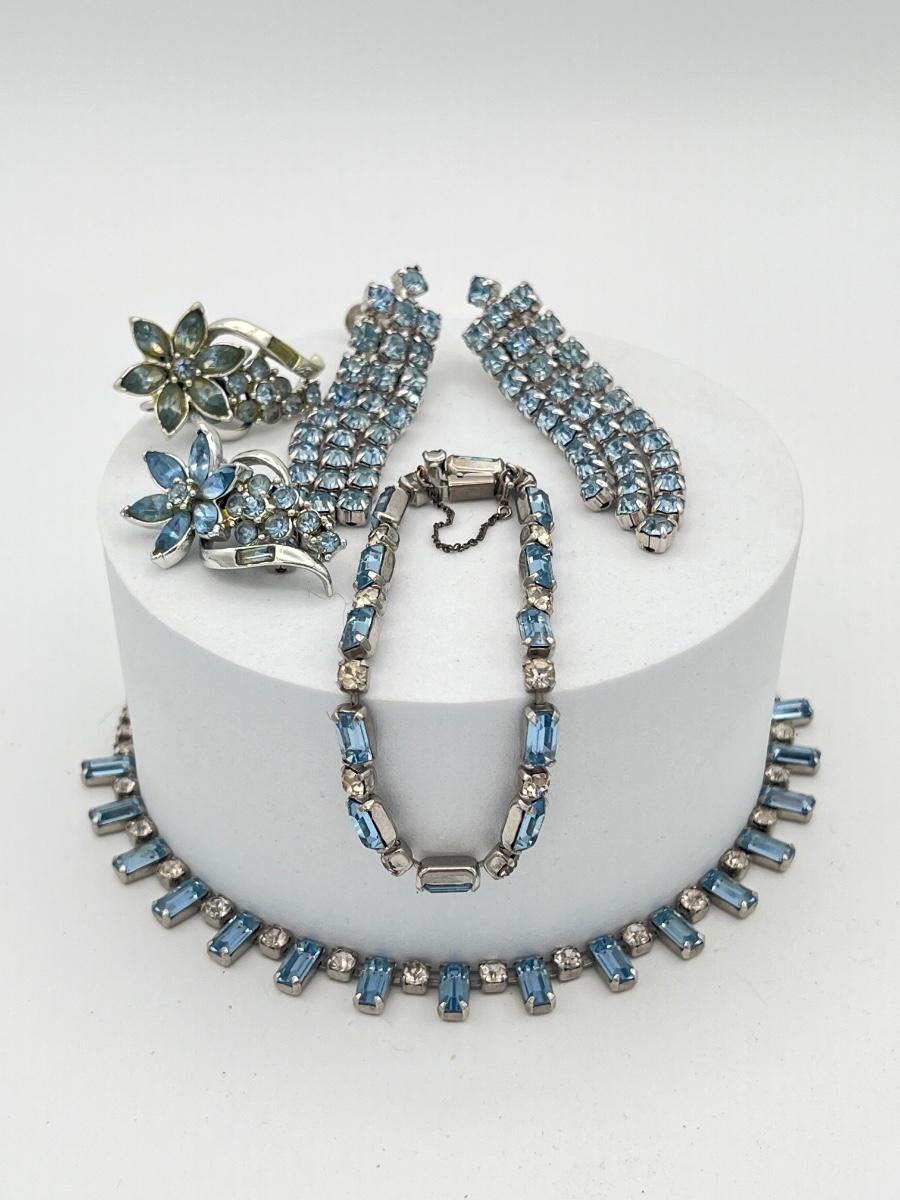 LOT 20: Two marked Coro Blue Rhinestone Jewelry lot - 14” Necklace & 7” Bracelet
