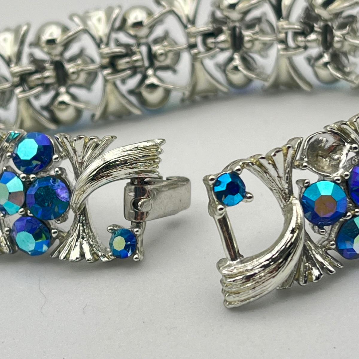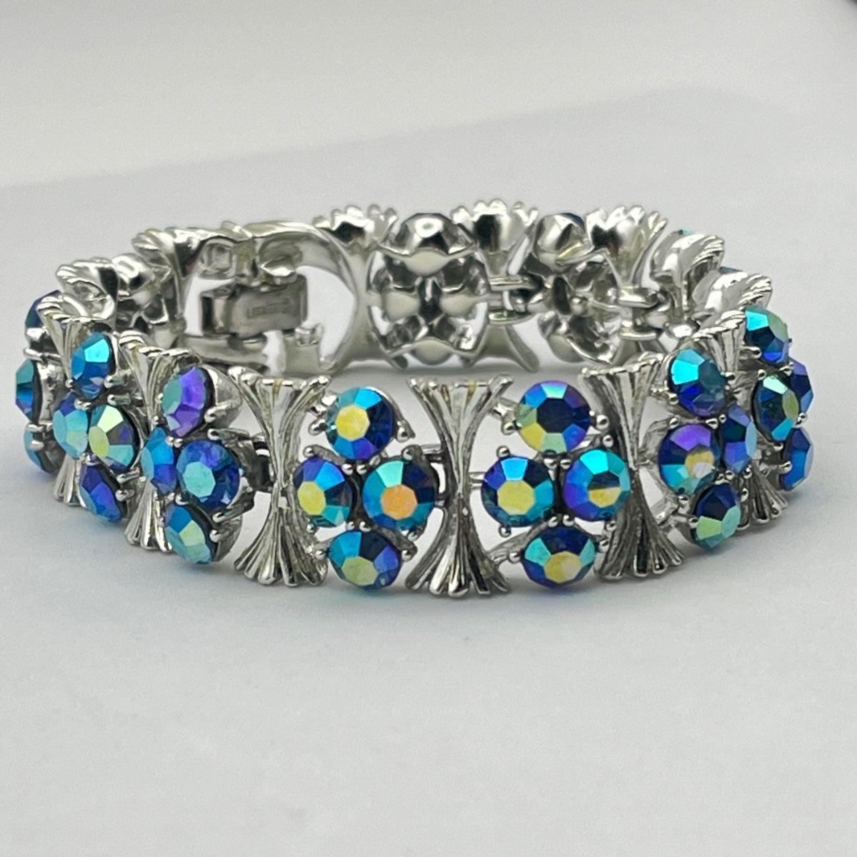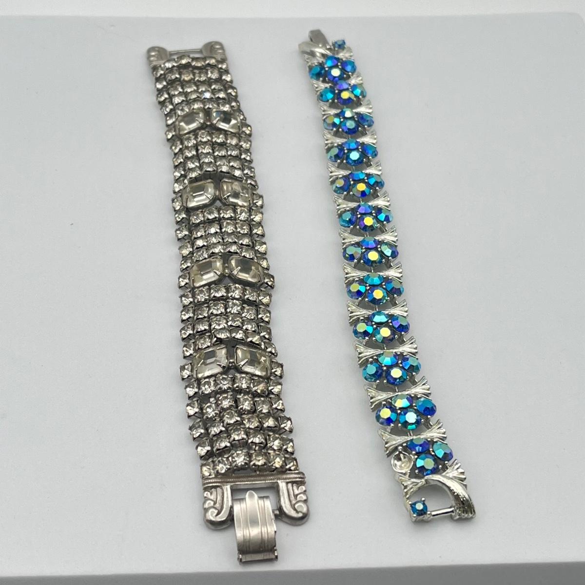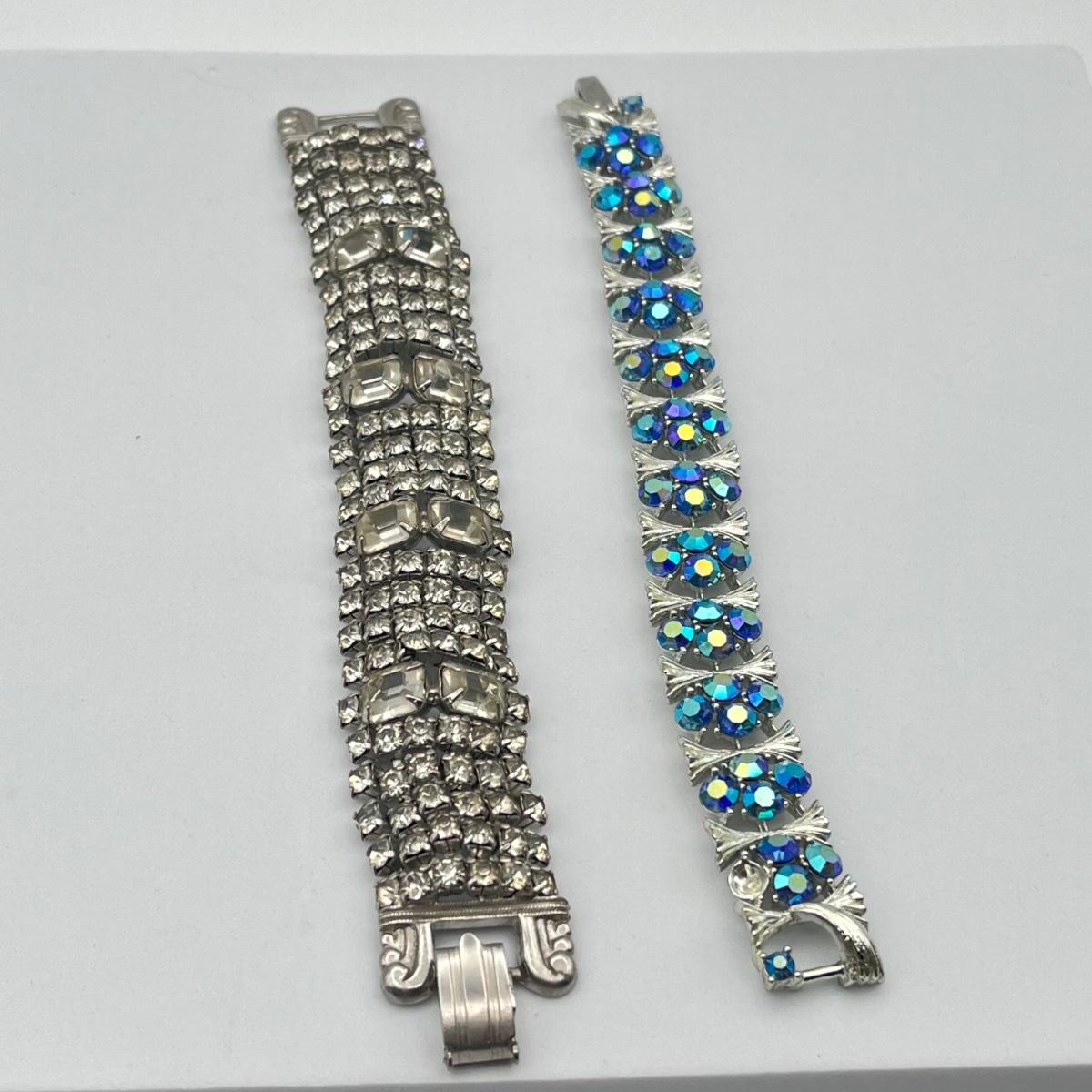 LOT 40: Two Vintage 7" Bracelets - Lisner Blue Aurora Borealis and Unsigned Clear Rhinestone