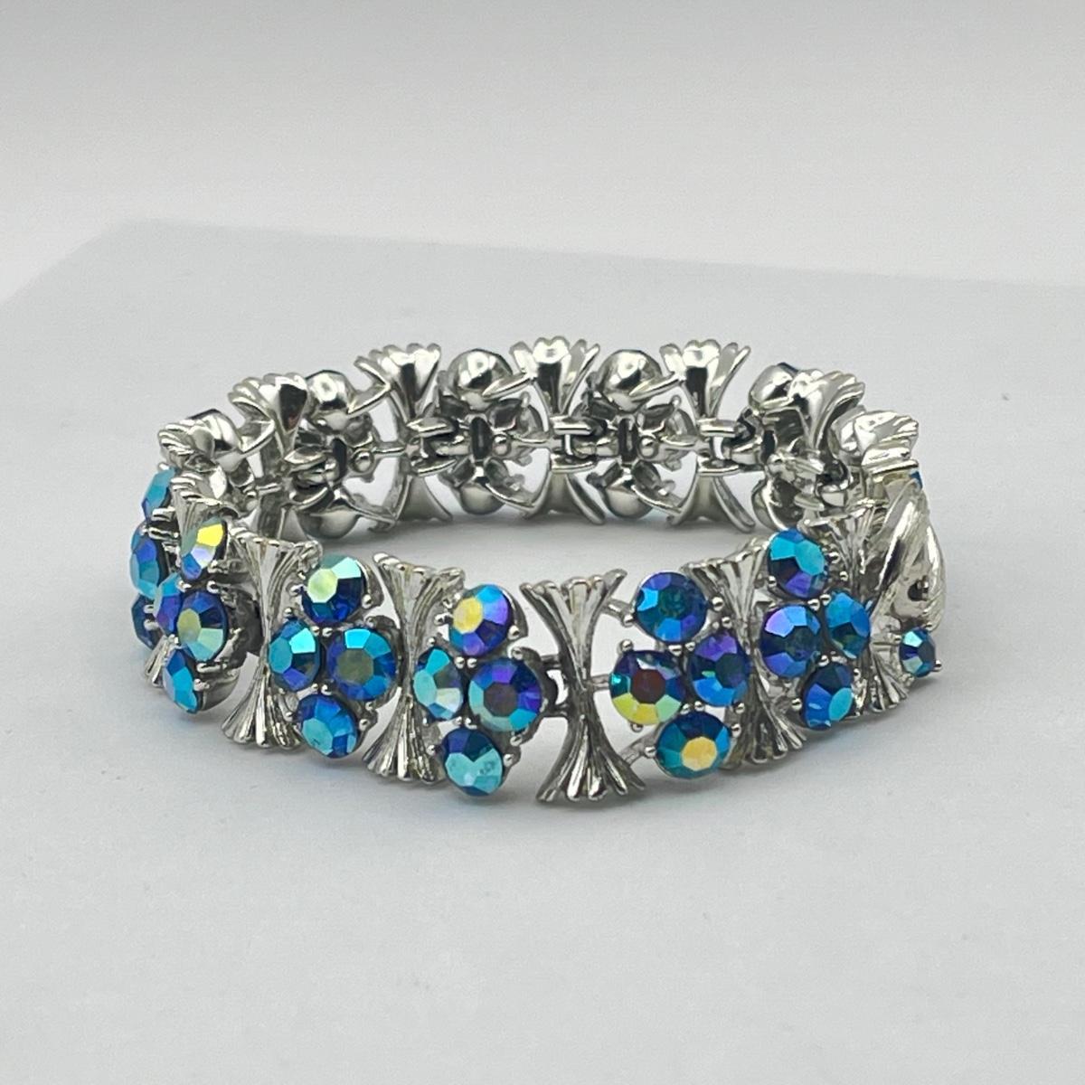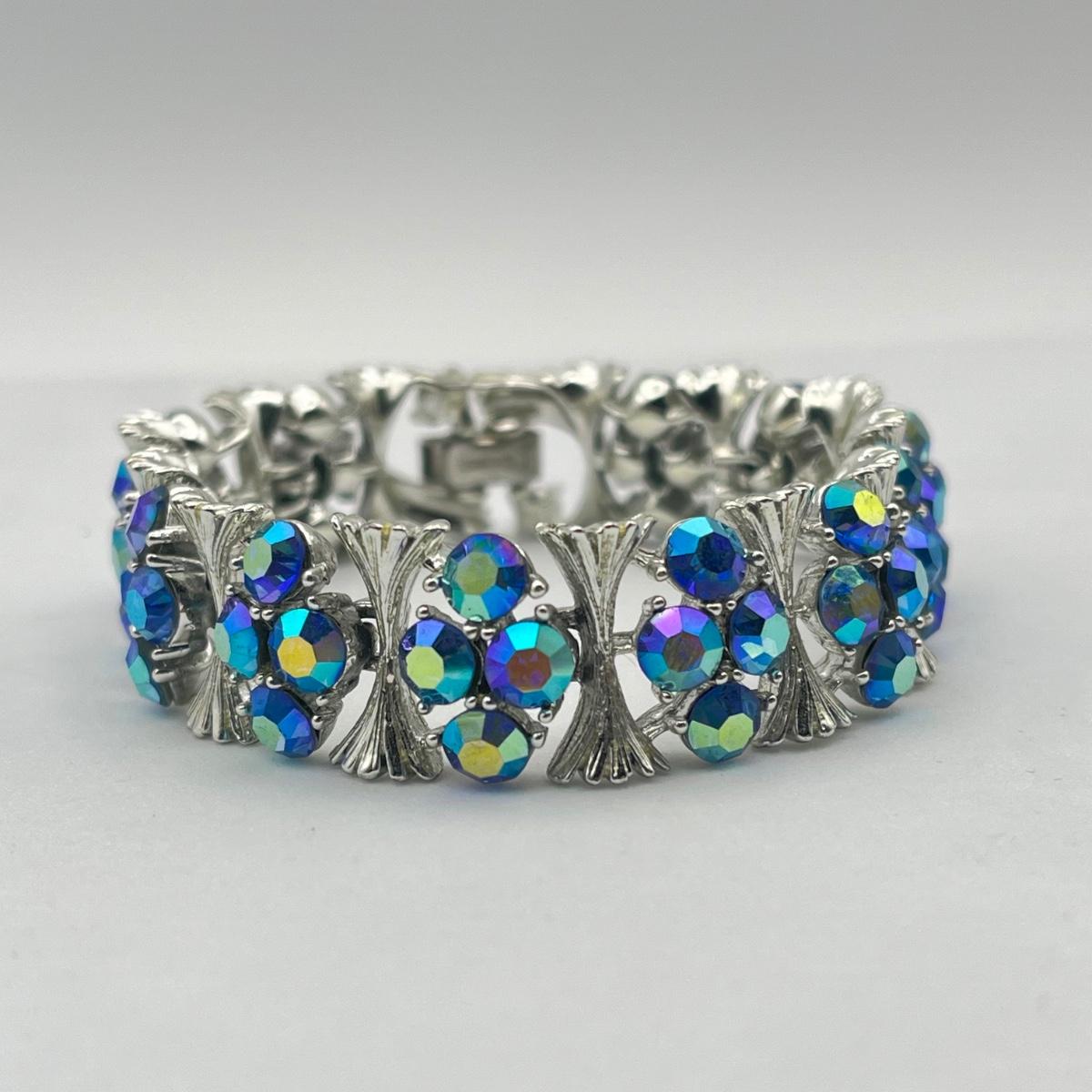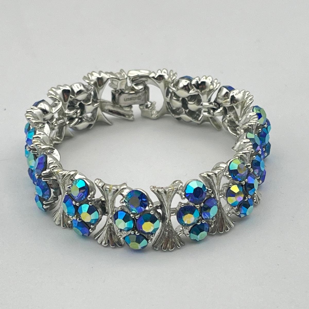 LOT 40: Two Vintage 7" Bracelets - Lisner Blue Aurora Borealis and Unsigned Clear Rhinestone