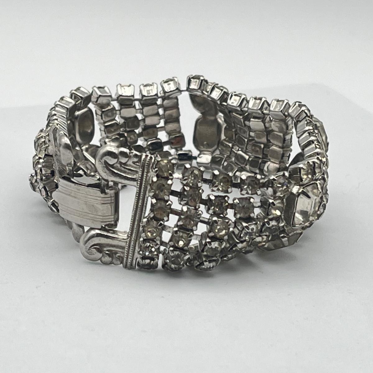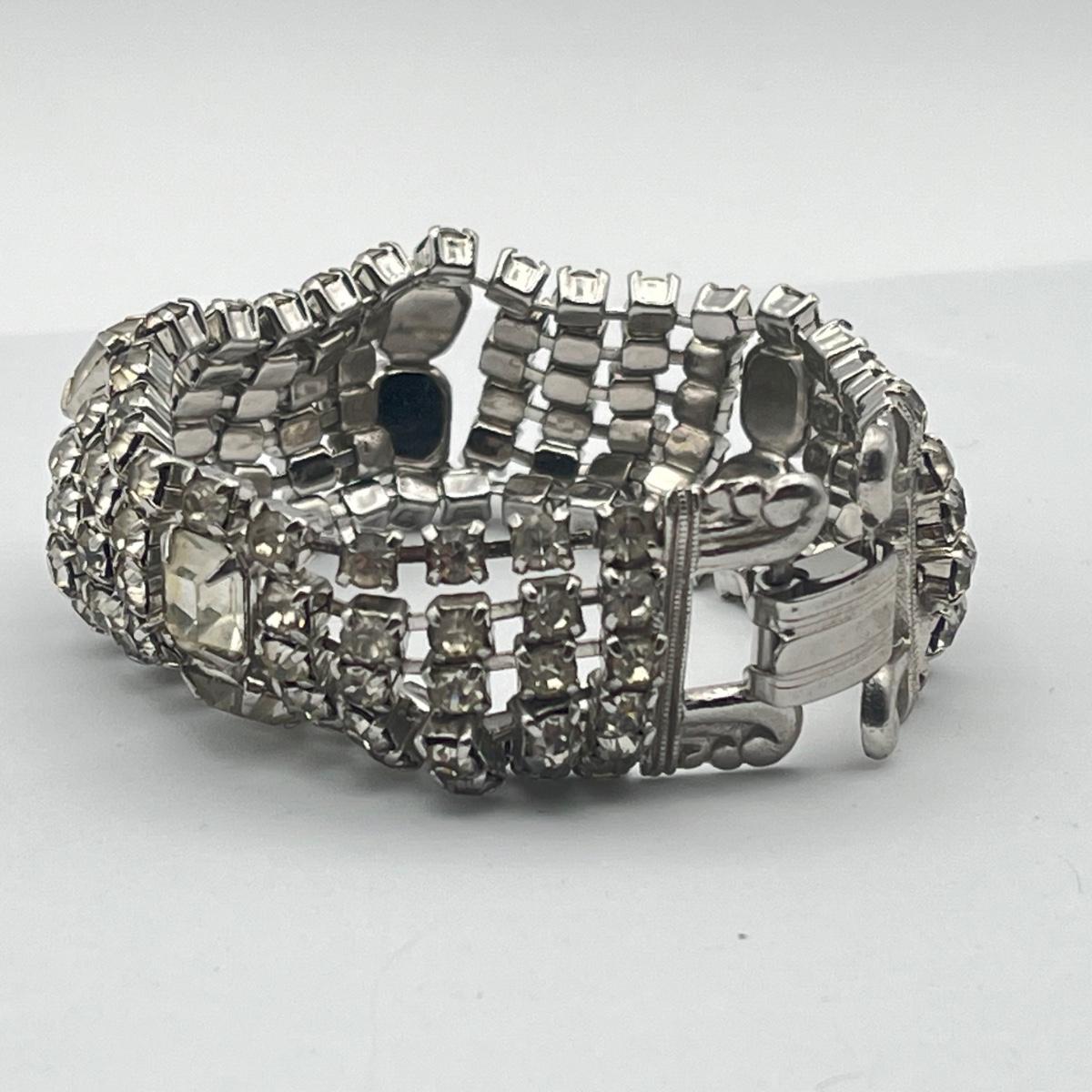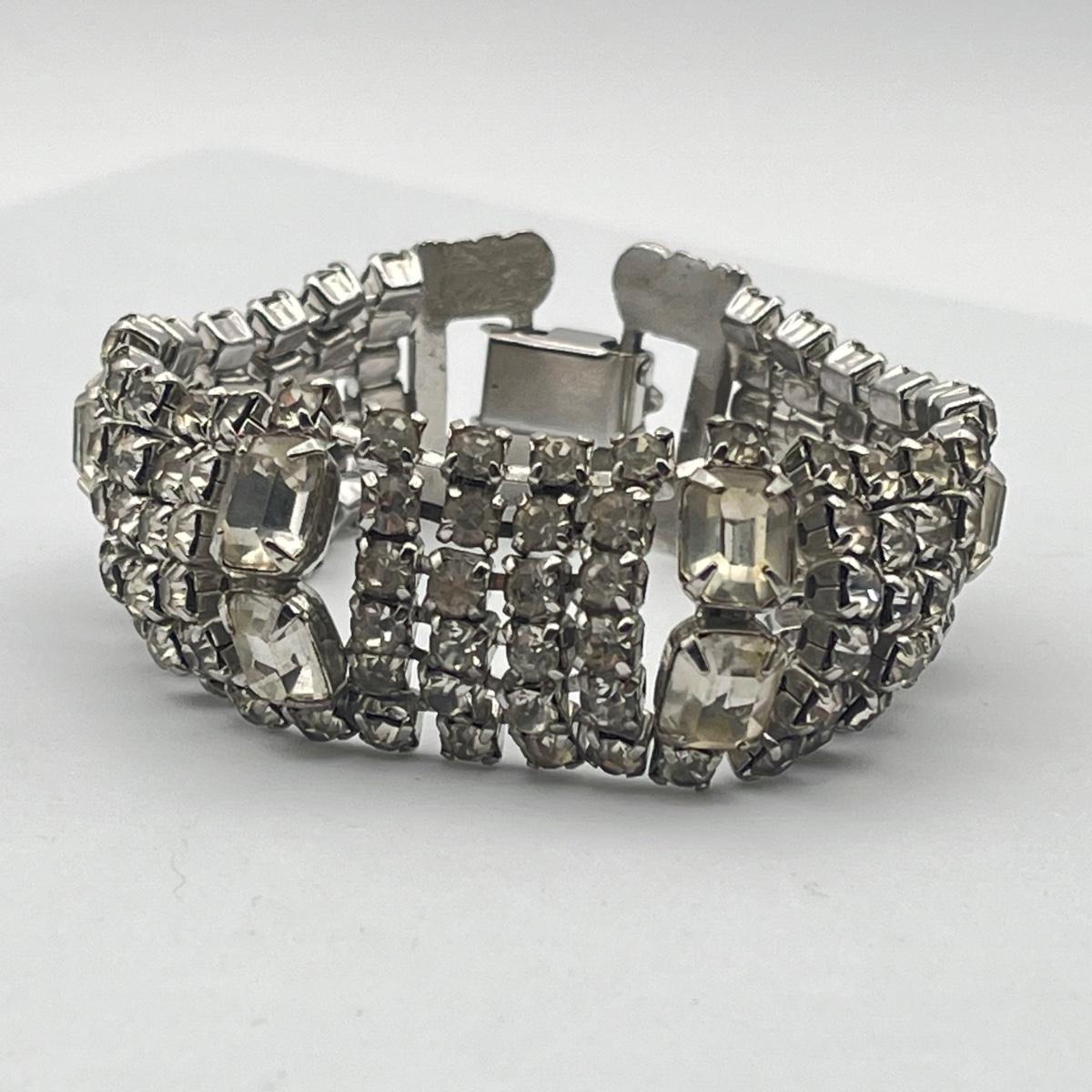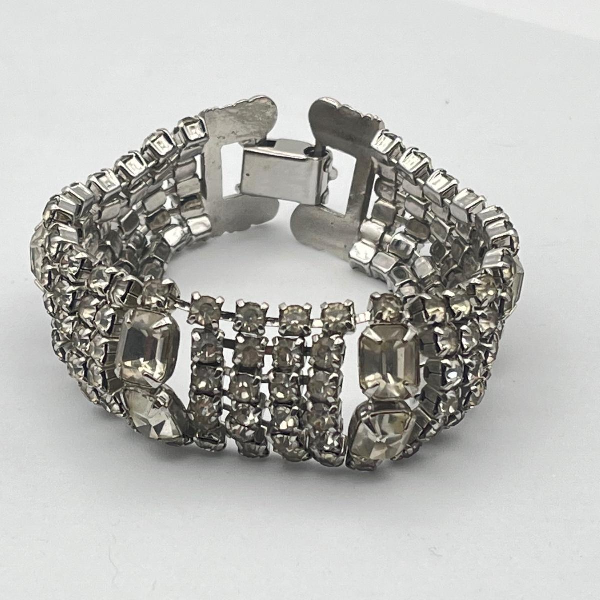 LOT 40: Two Vintage 7" Bracelets - Lisner Blue Aurora Borealis and Unsigned Clear Rhinestone