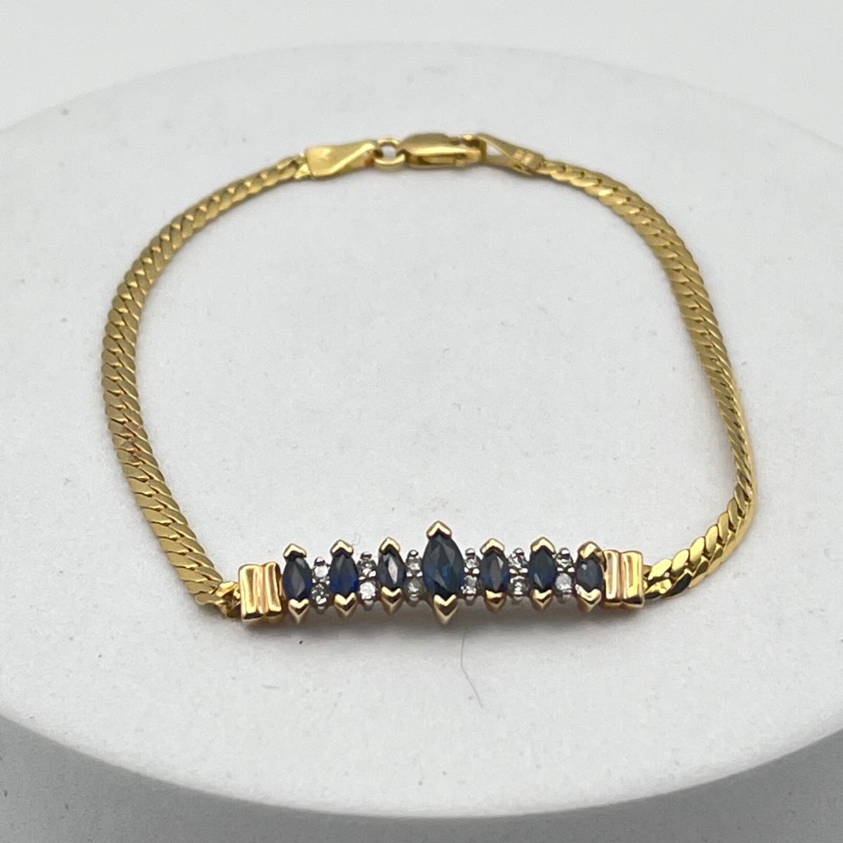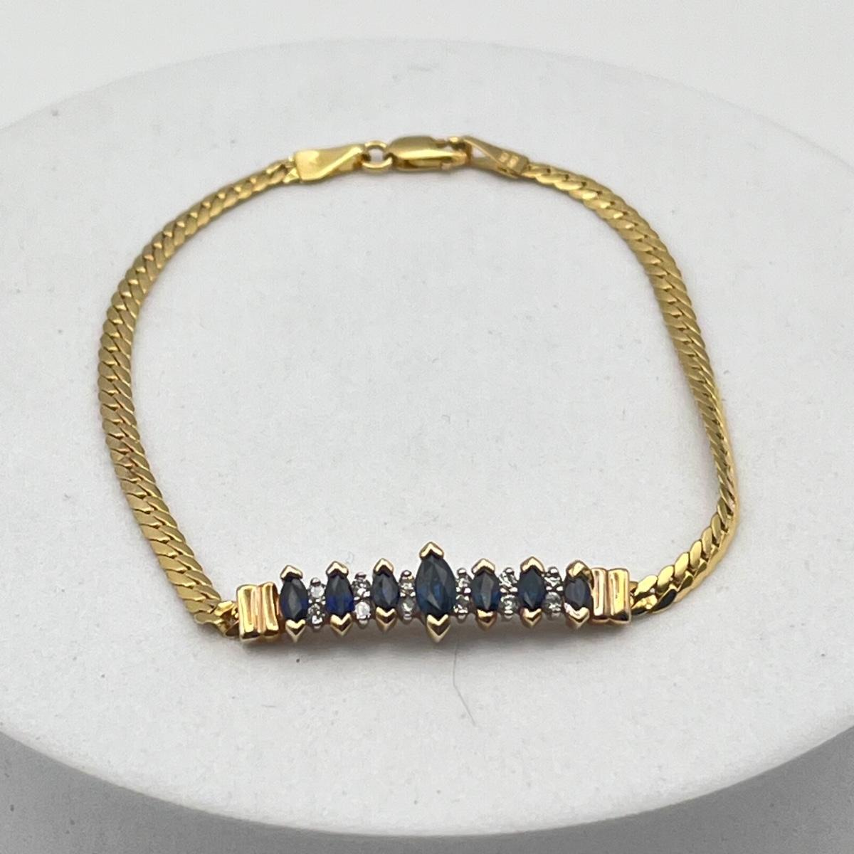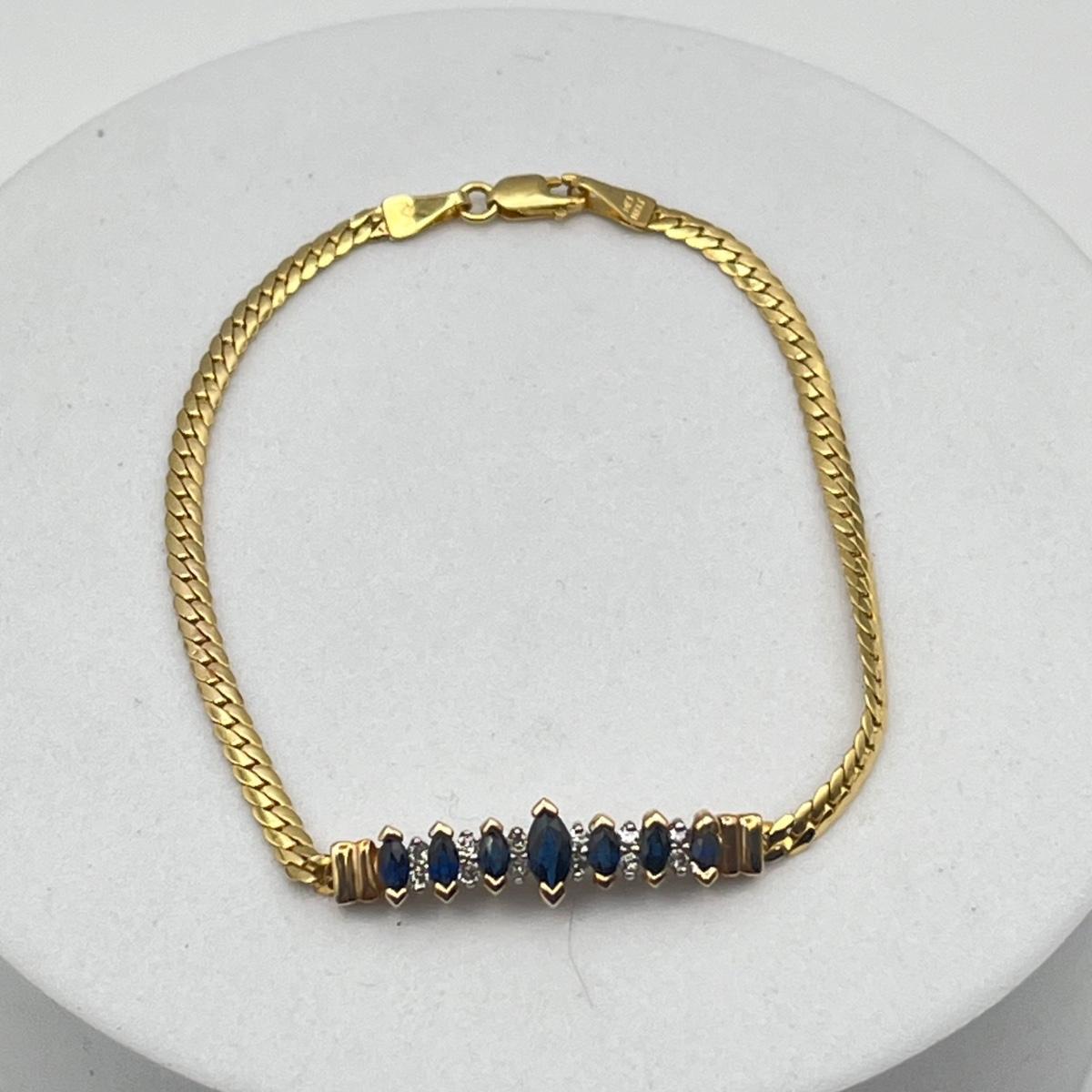 LOT 41: 14K Gold 7" Bracelet with Diamonds and Sapphires - 3.8 grams total weight