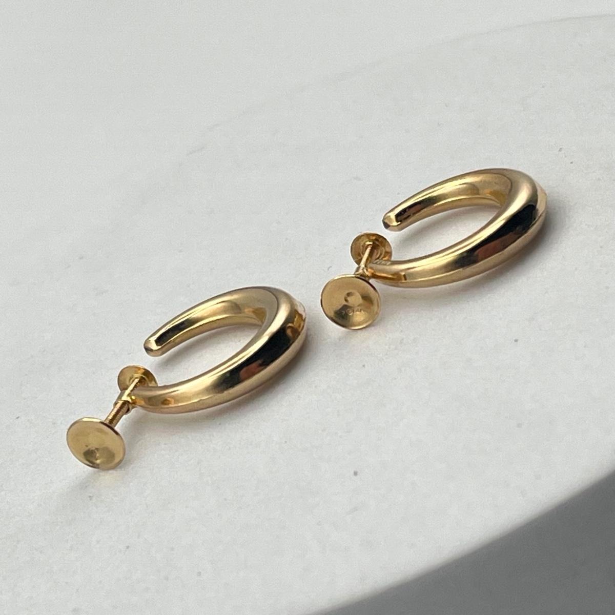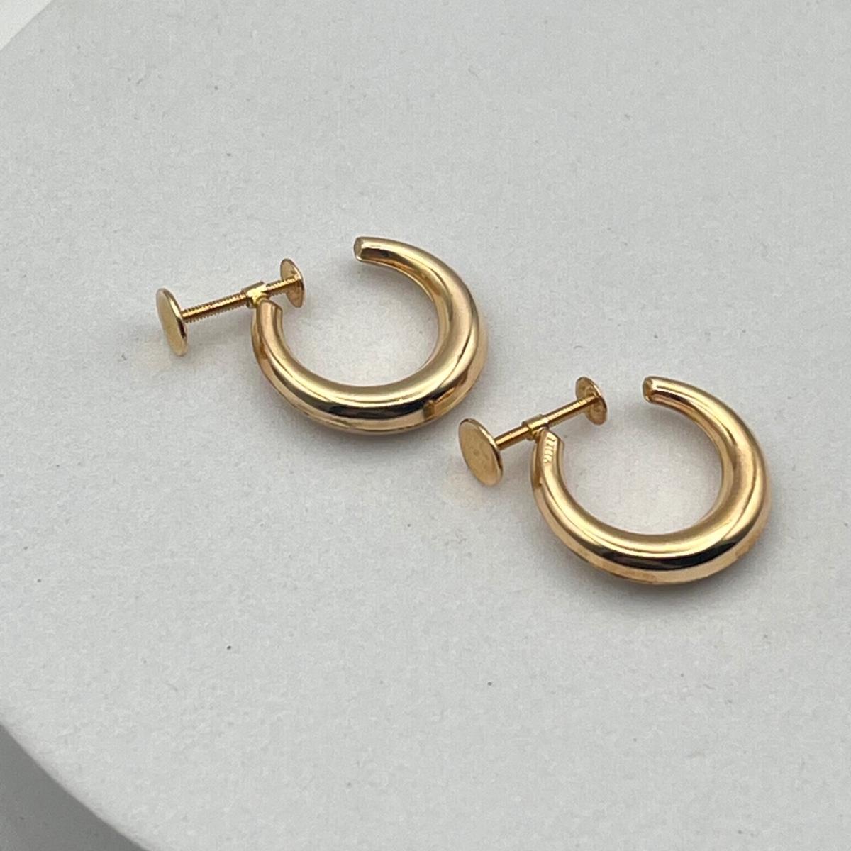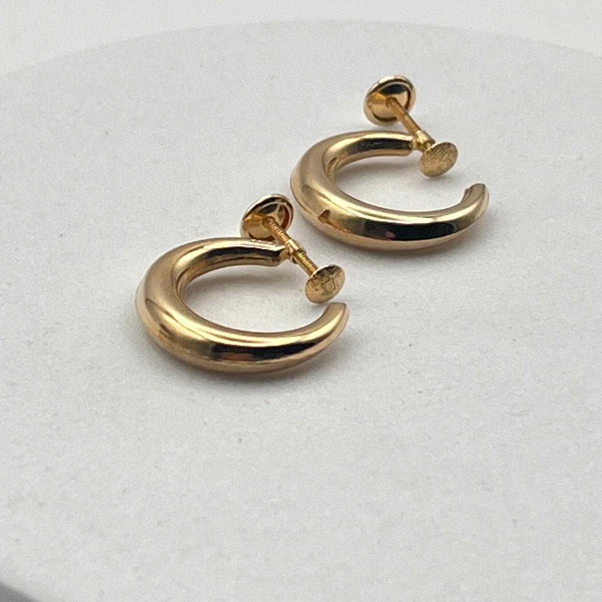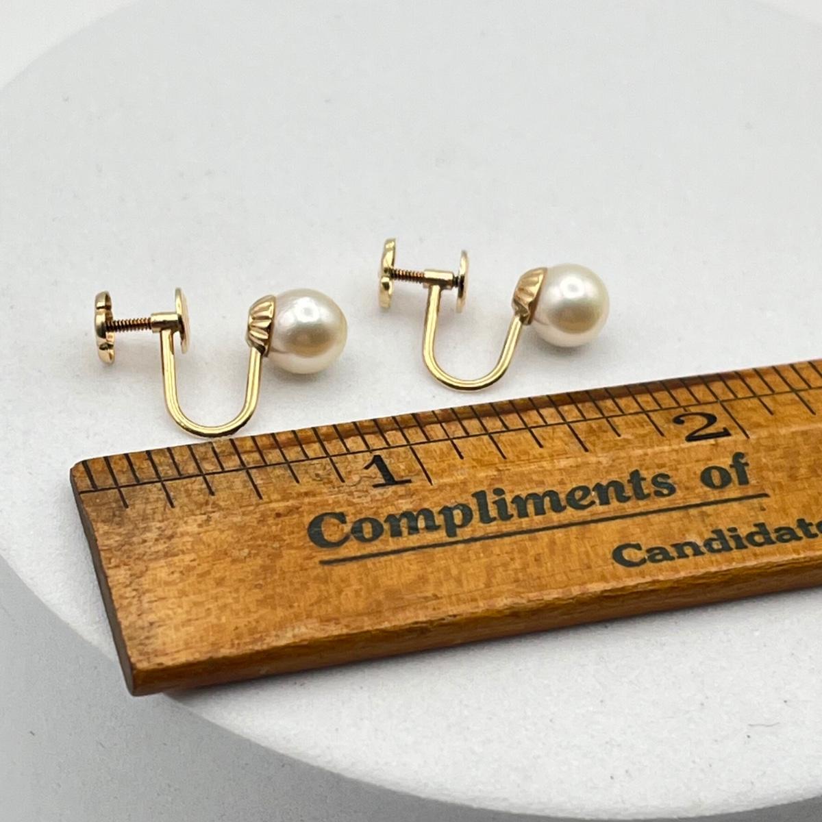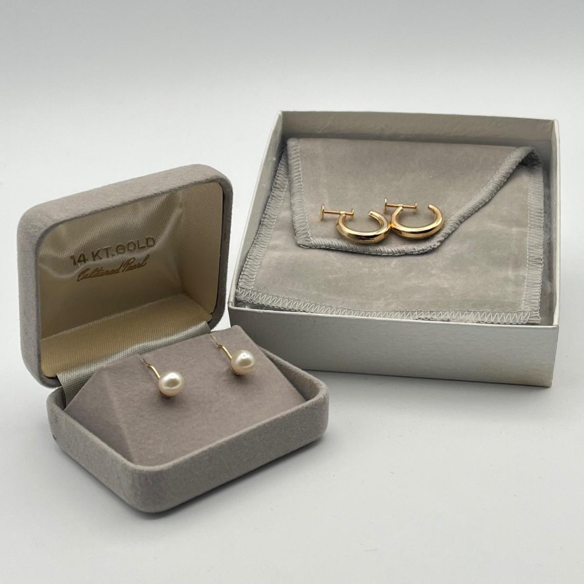 LOT 43: Two Pairs 14K Gold Screwback Earrings - Gold Hoops and Cultured Pearl - 3.3 grams total weight