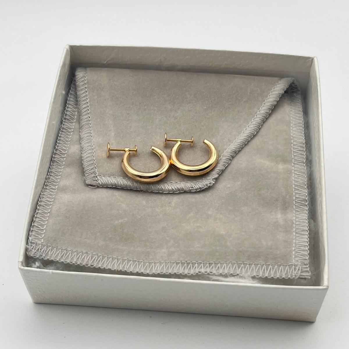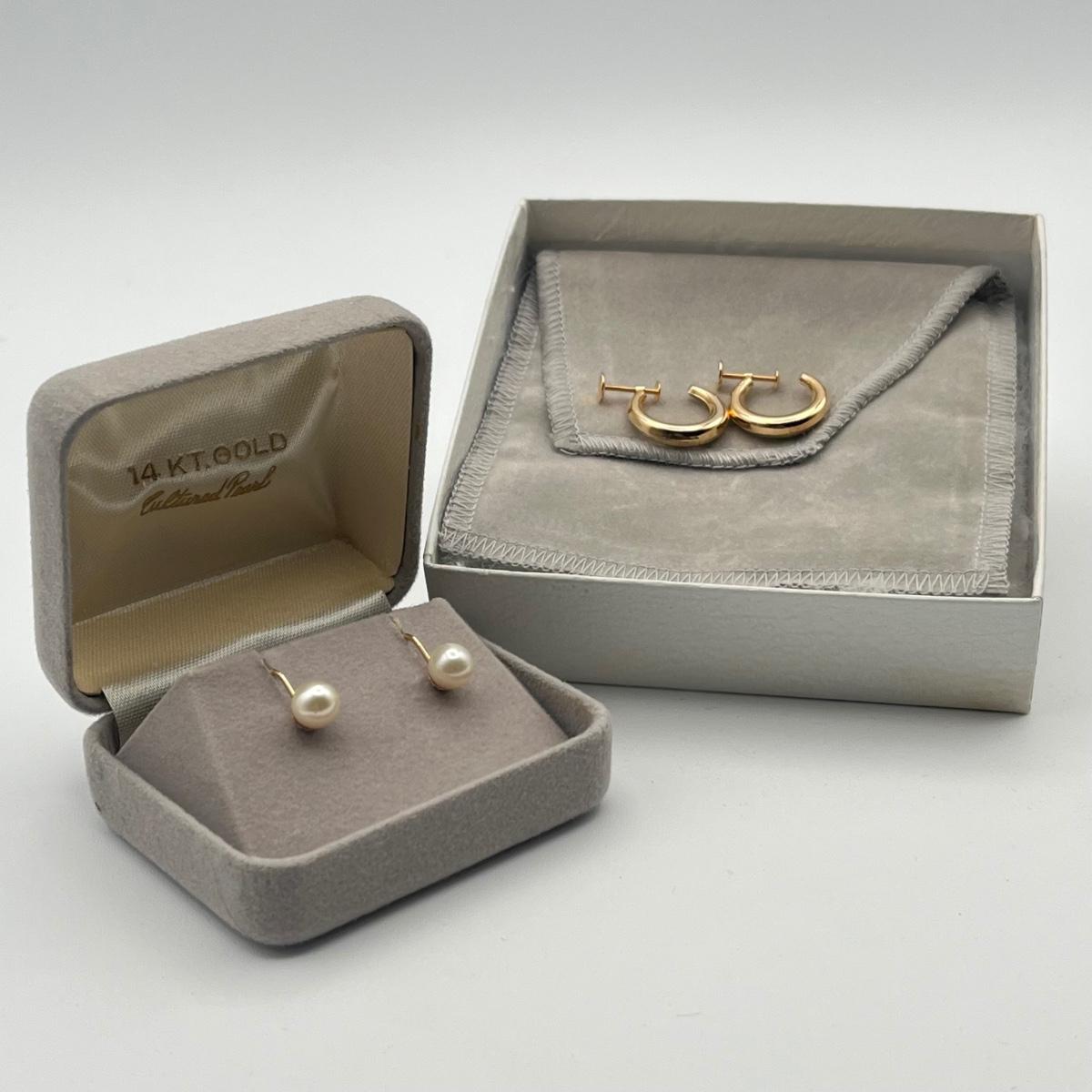 Hoops are 1.5 grams. Pearl earrings are 1.8 grams.