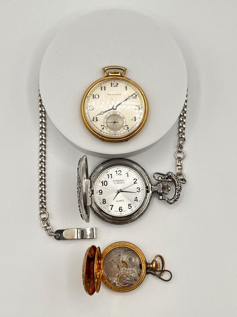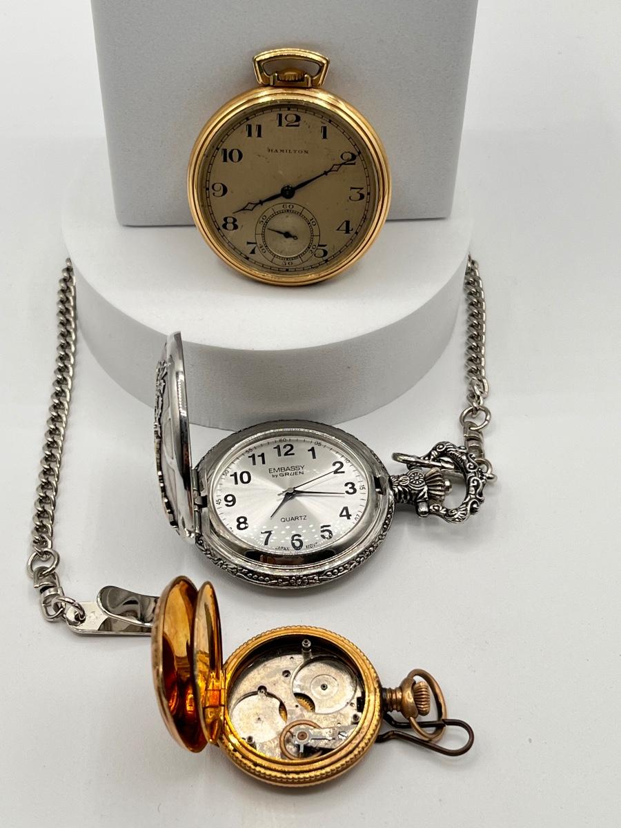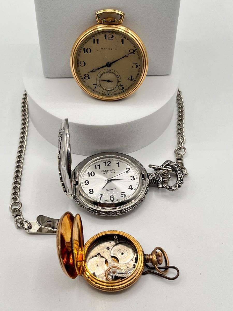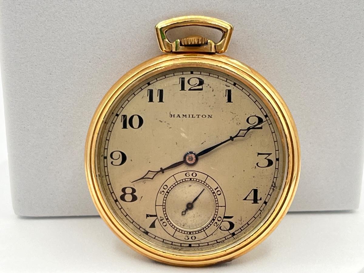 LOT 47: 14K Gold Filled Vintage Hamilton Pocketwatch and More! Hamilton Watch Winds and Ticks!